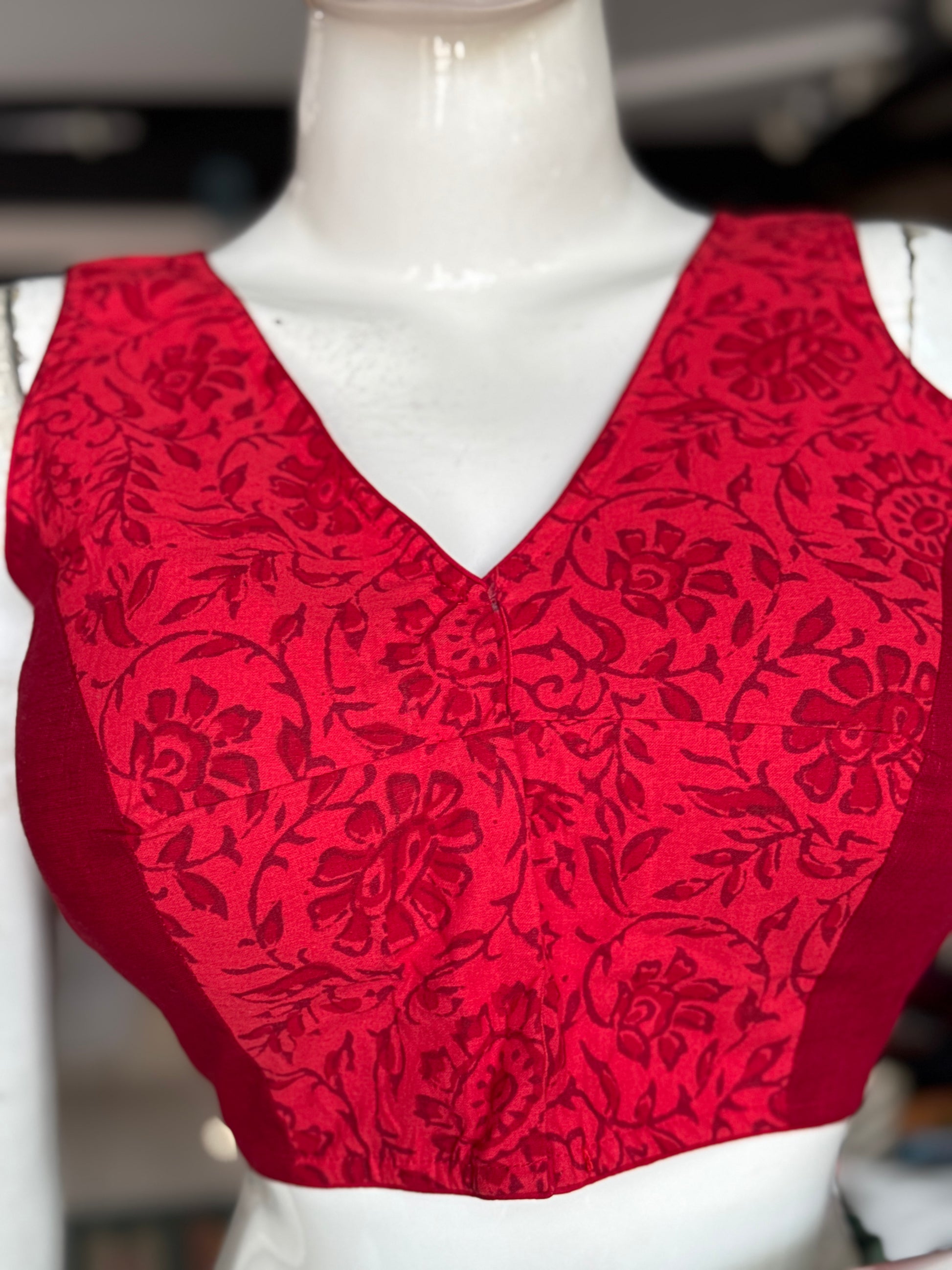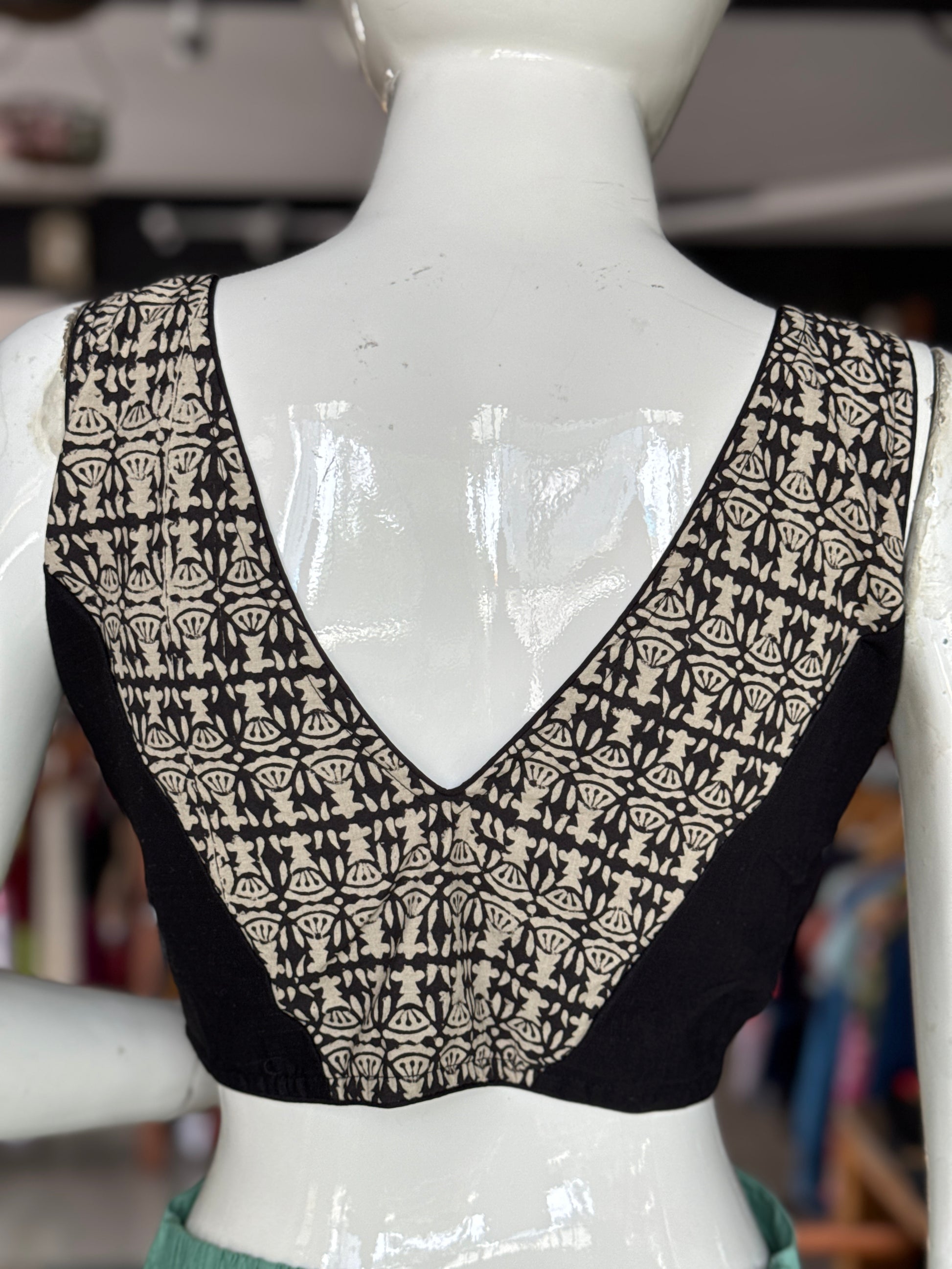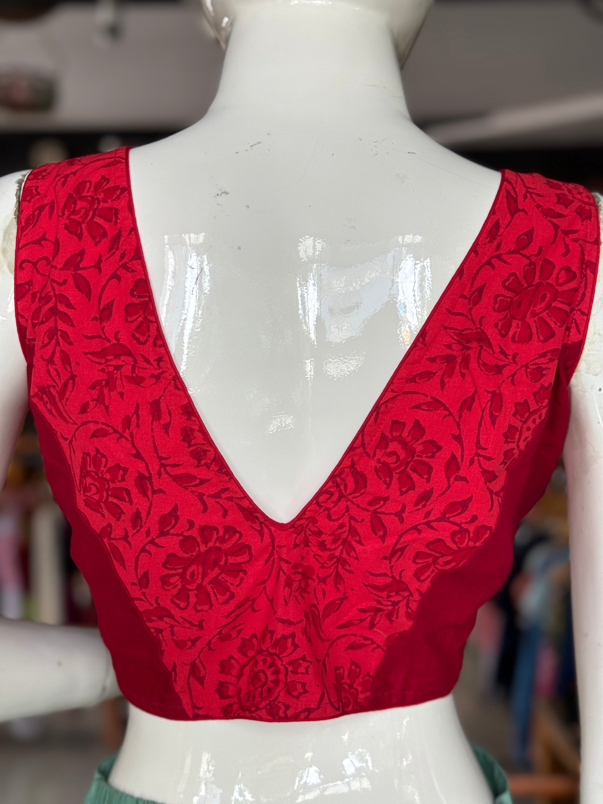 Princess cut cotton hand block printed sleeveless blouse - multiple designs available