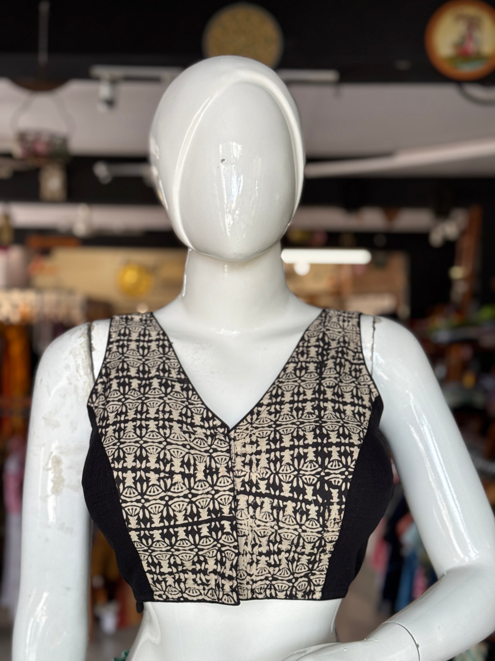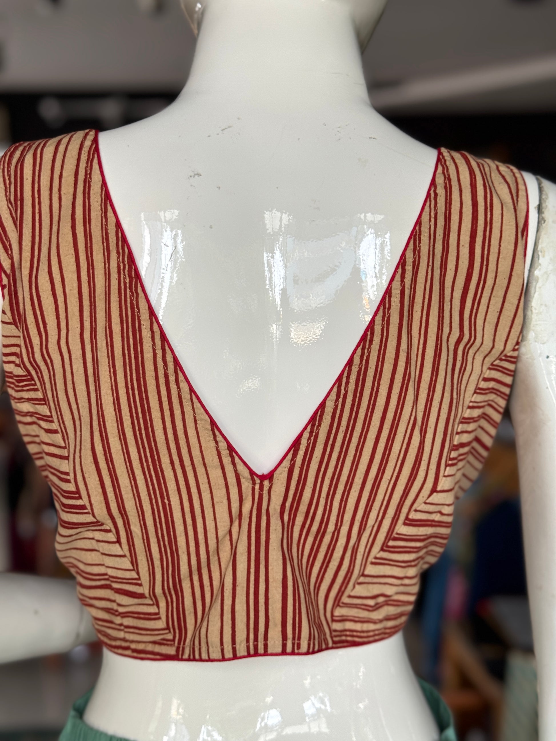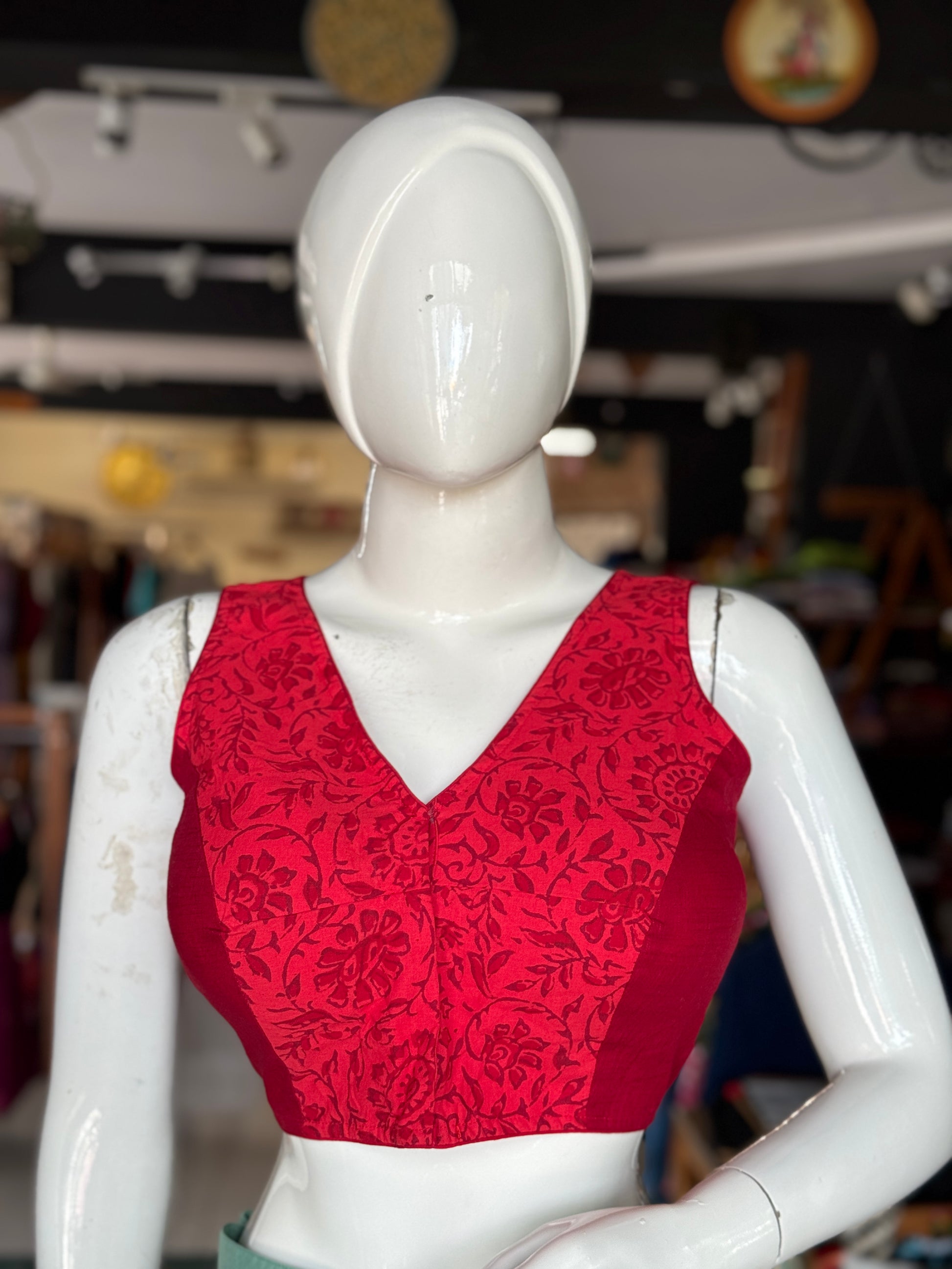 Princess cut cotton hand block printed sleeveless blouse - multiple designs available
