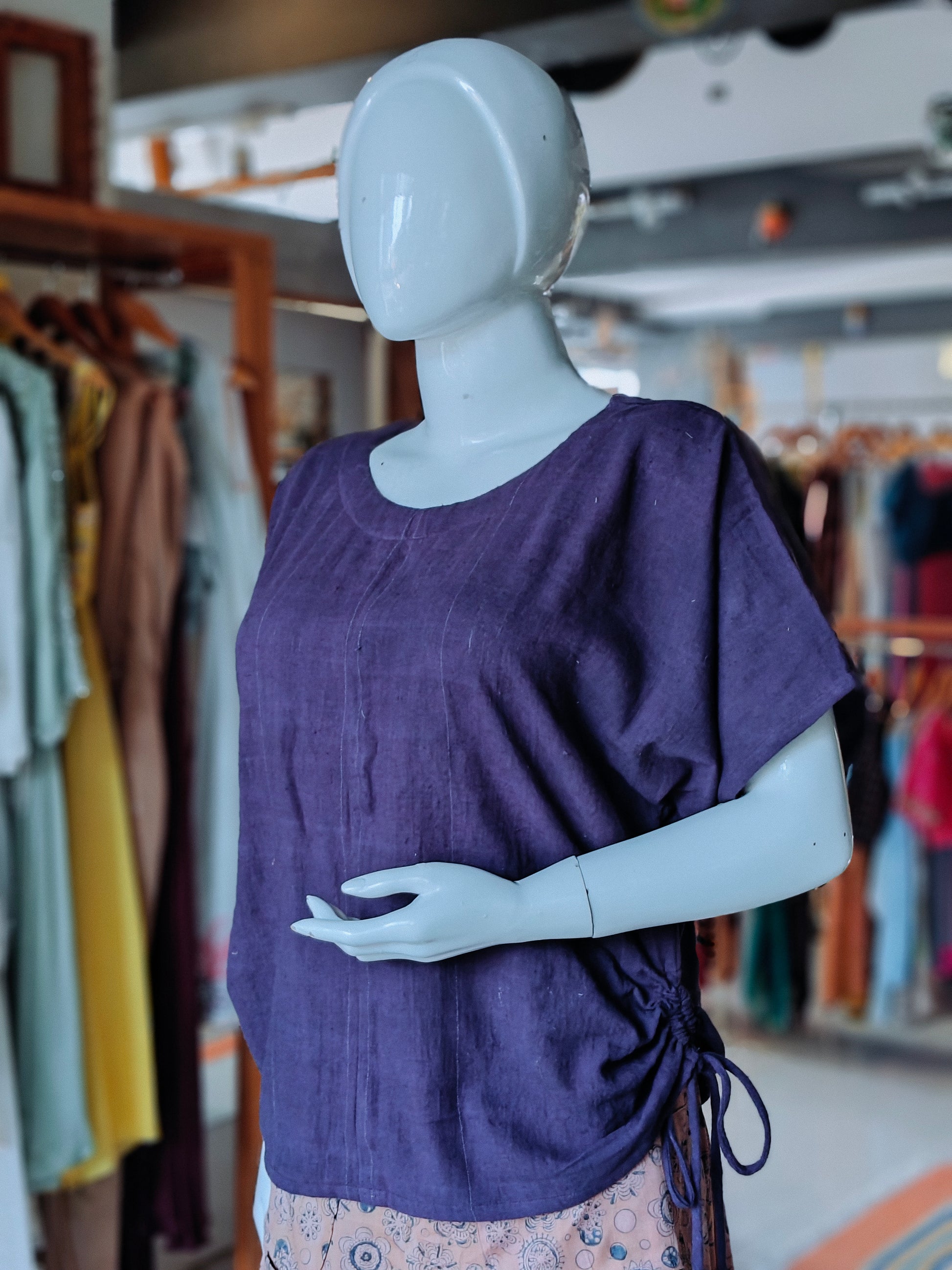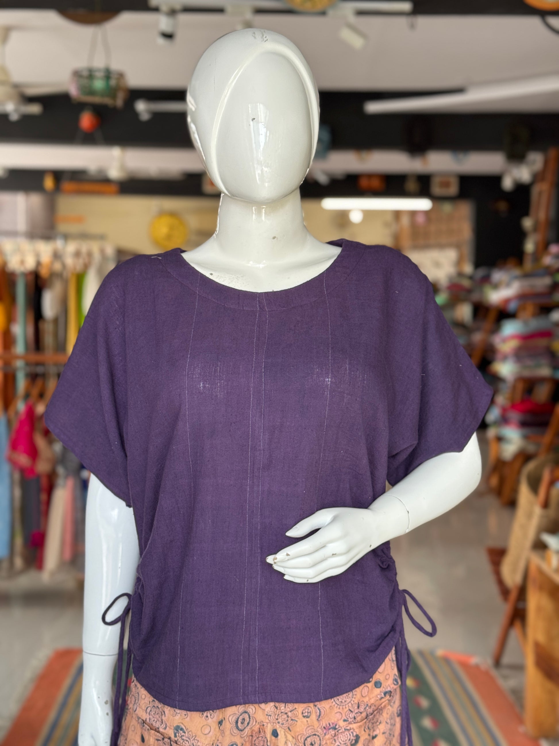 Violet kala cotton handloom top with side pull drawstrings