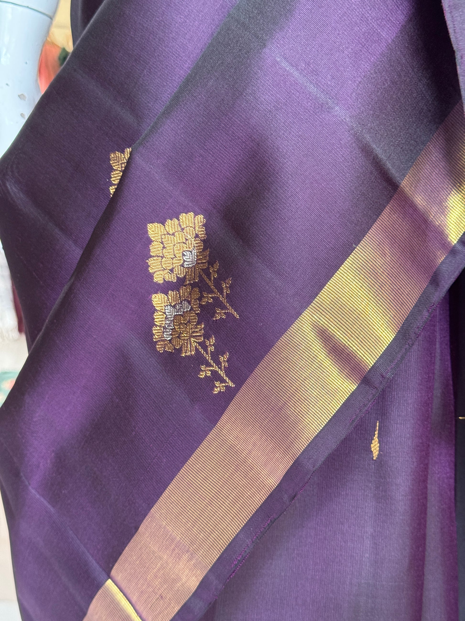 Purple gold n silver meena butis pure silk handloom Kumbakonam pattu saree