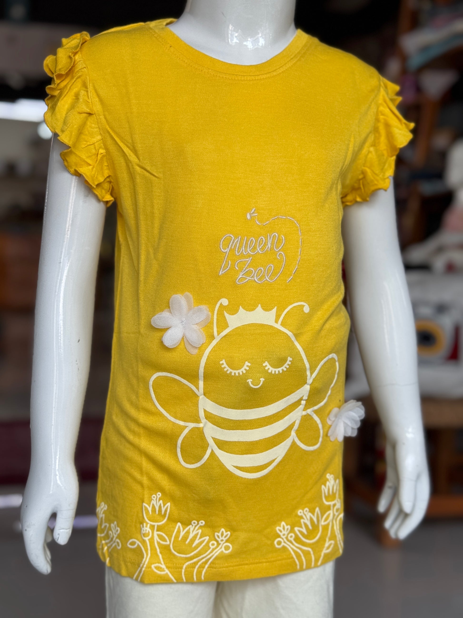 Queen bee yellow knit bamboo soft frilly t-shirt top