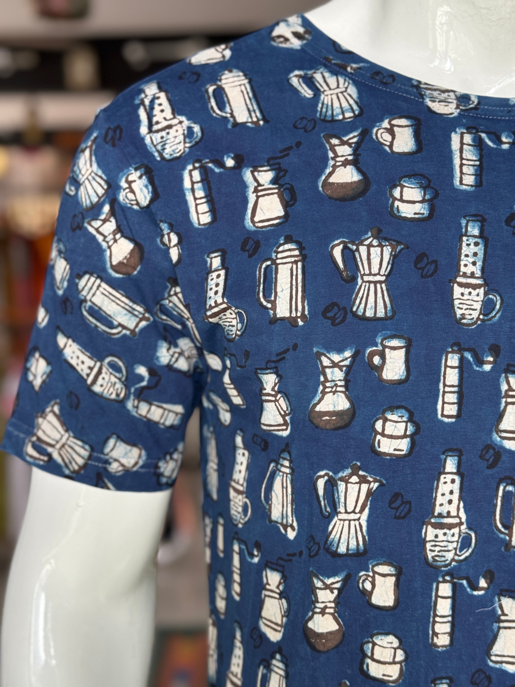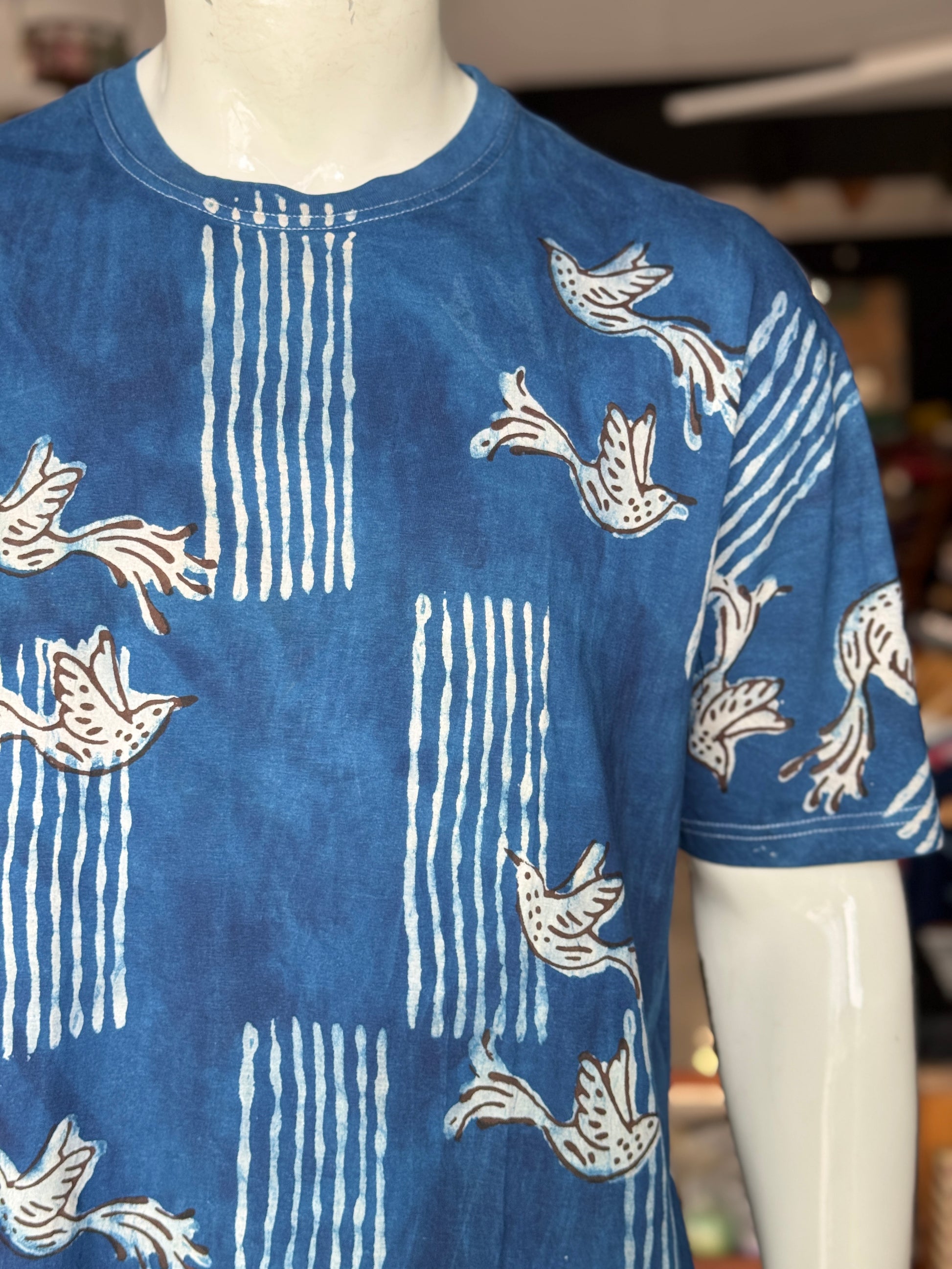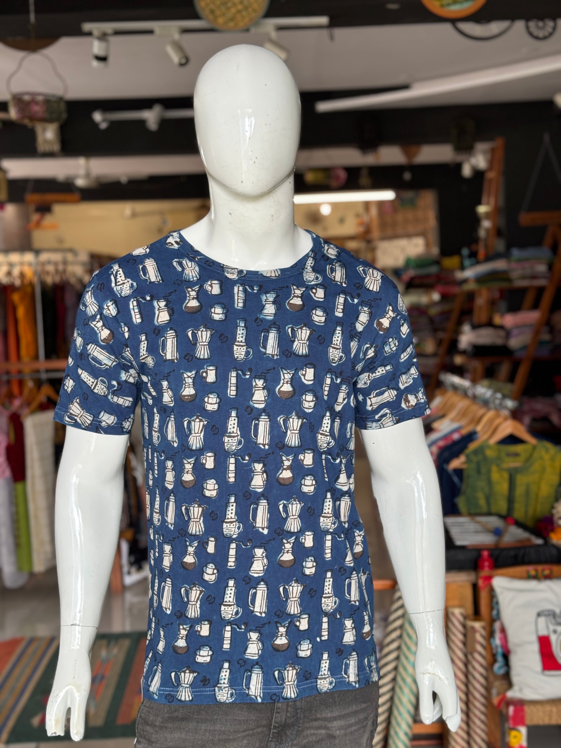 Quirky tees - hand block printed, natural dyed, mens cotton t-shirt