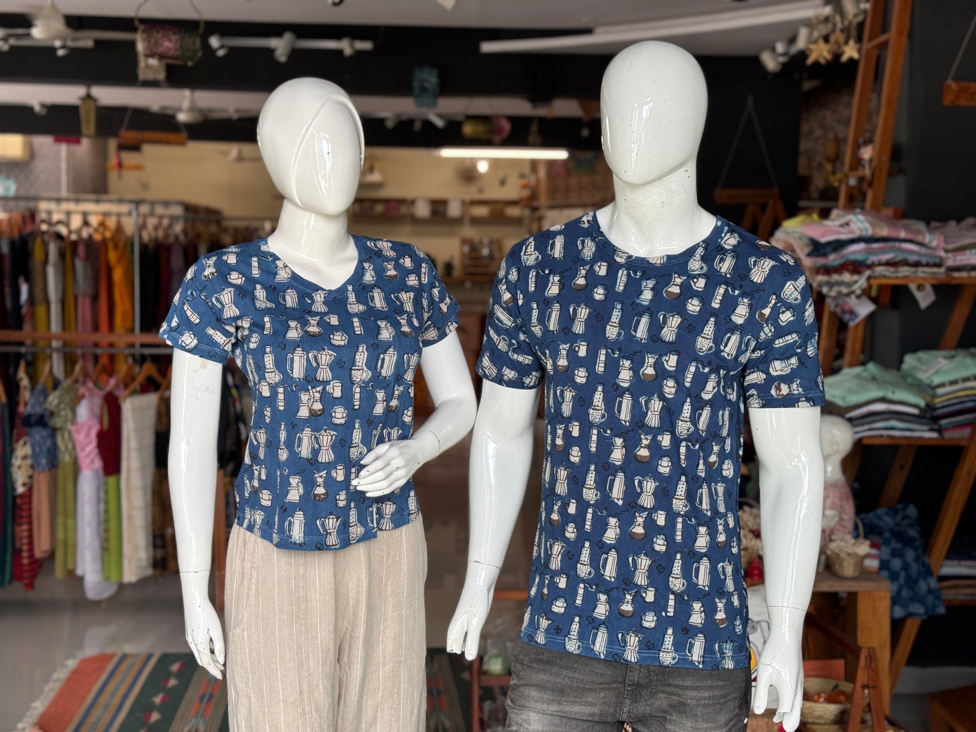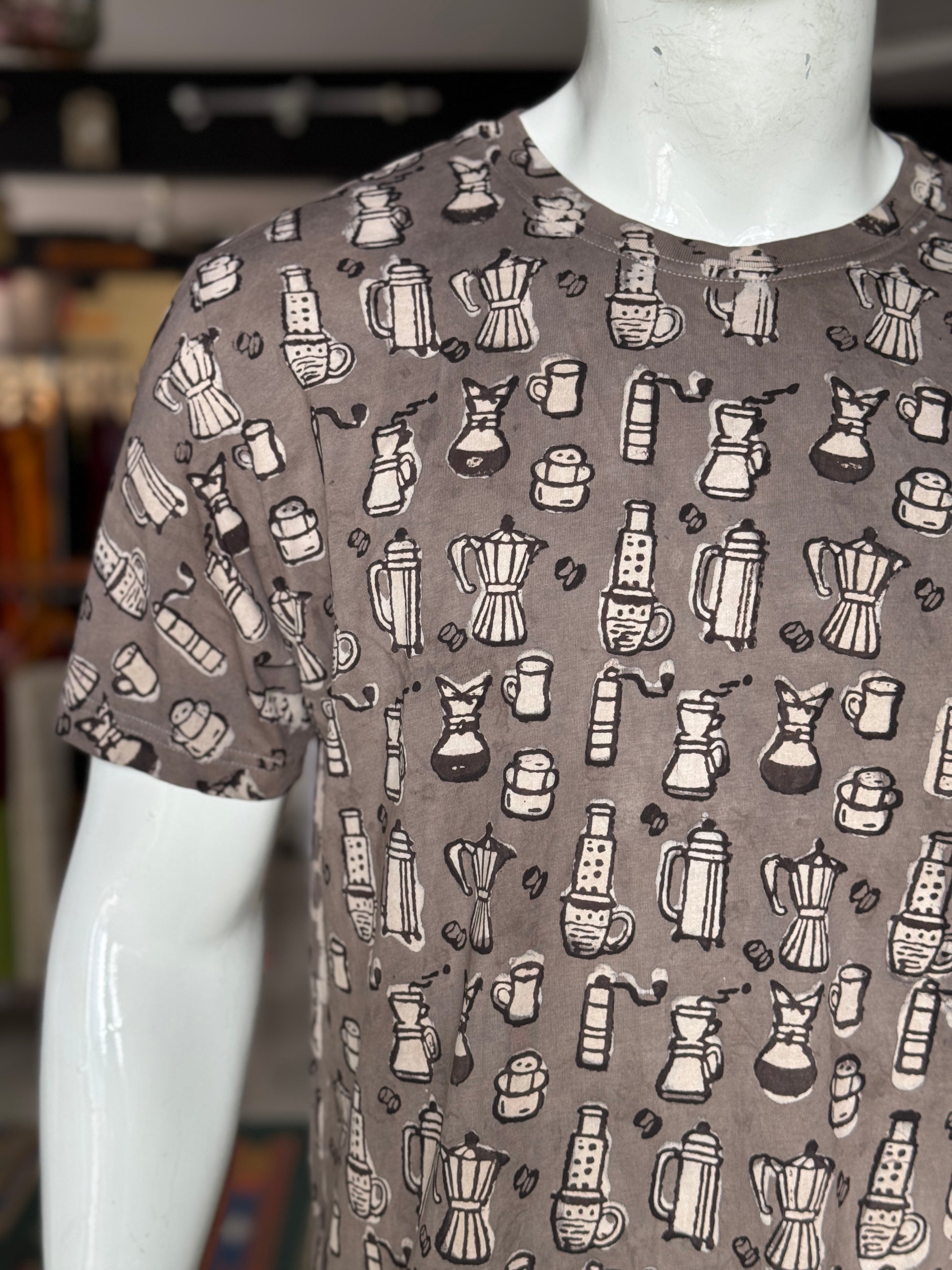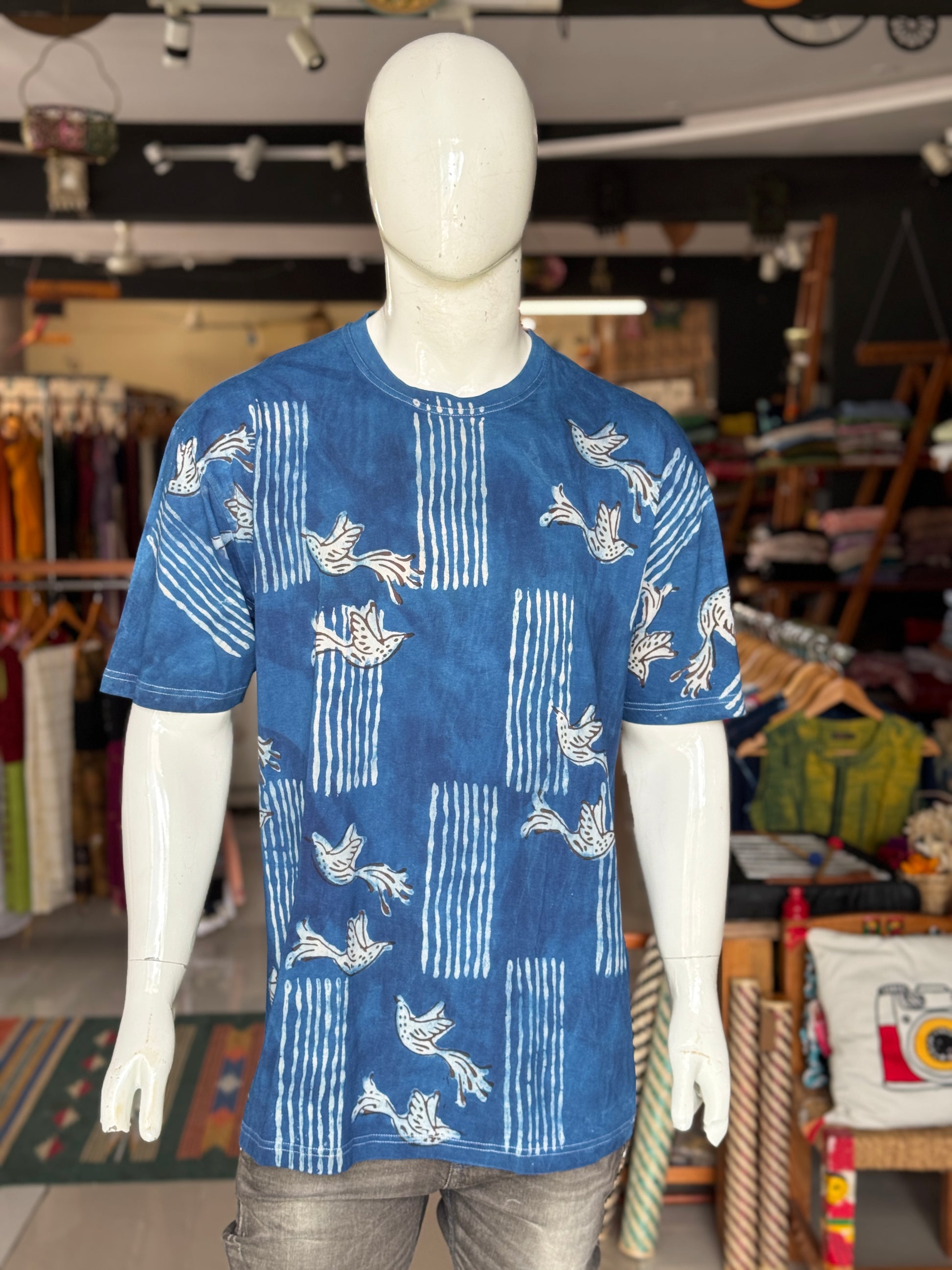 Quirky tees - hand block printed, natural dyed, mens cotton t-shirt