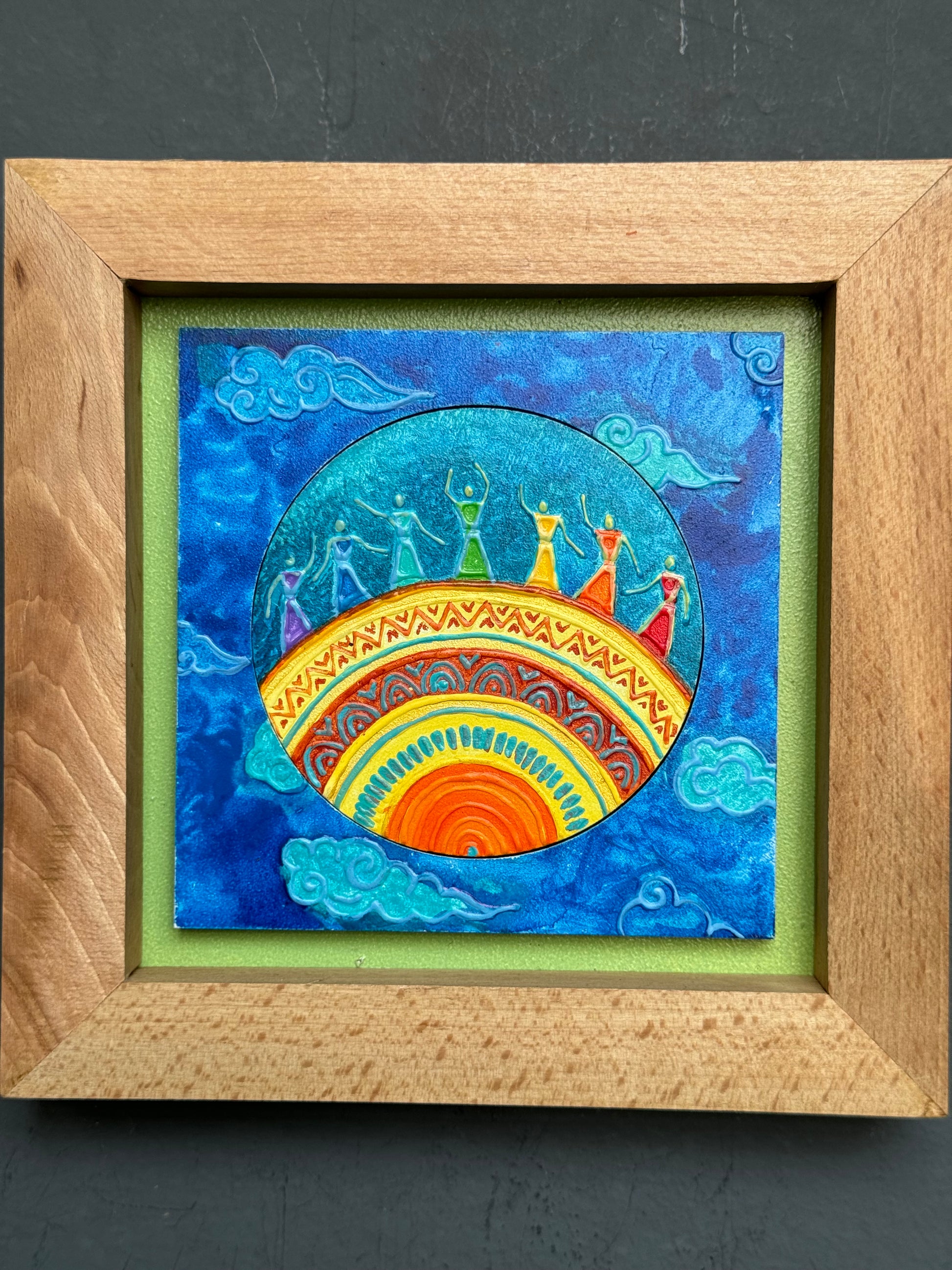 Rainbow women - hand crafted wall decor with wooden frame