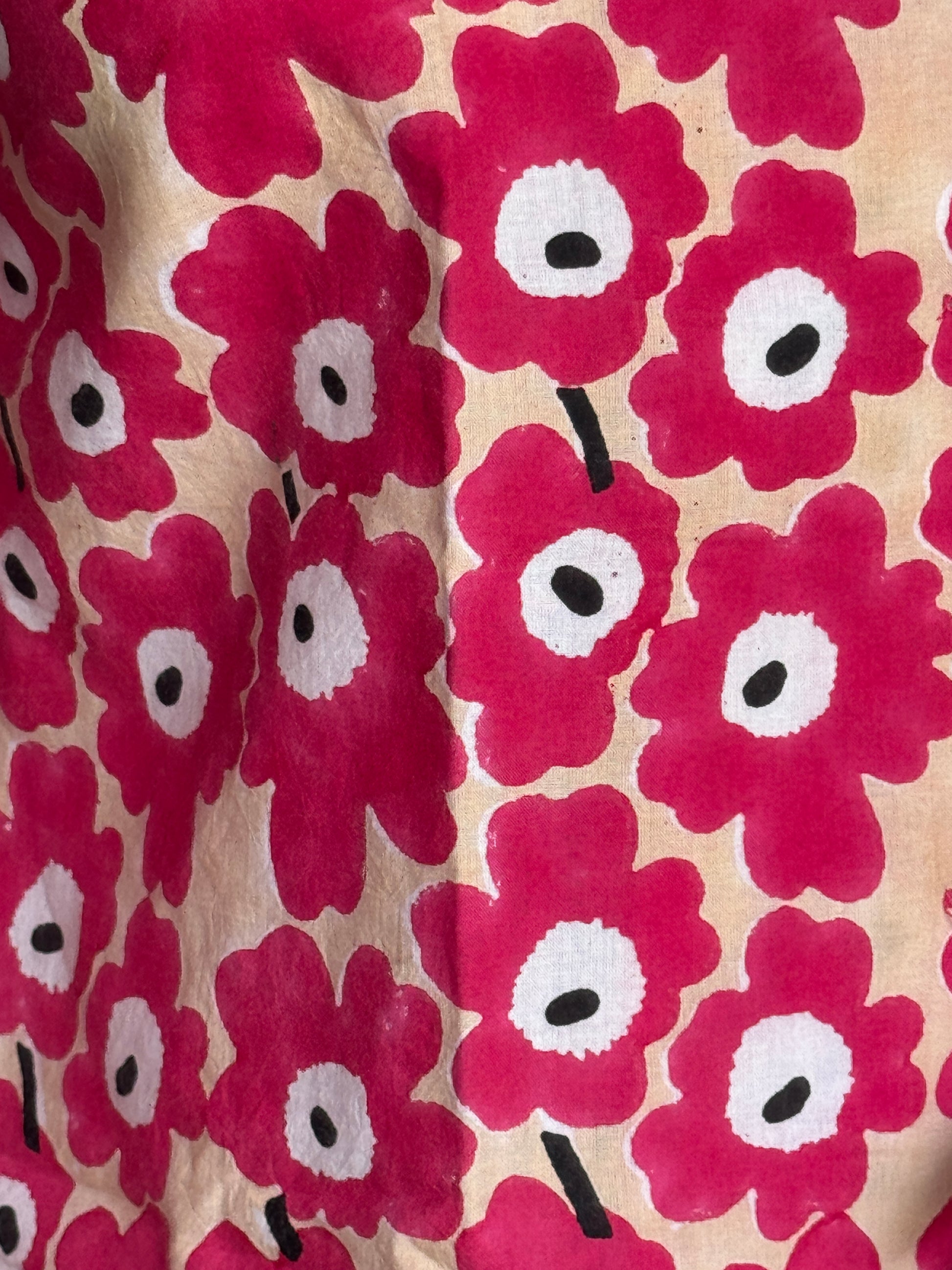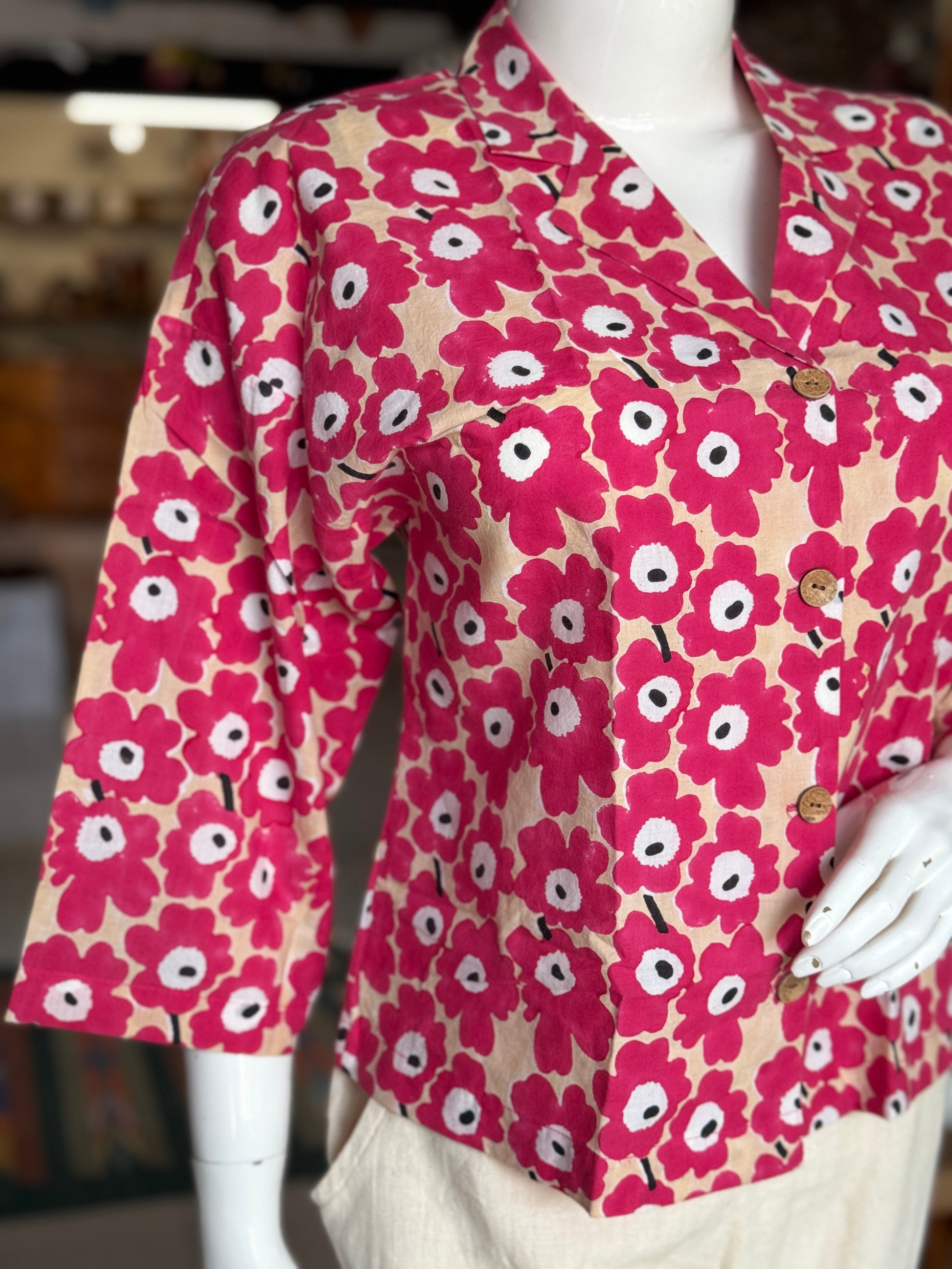 Red floral cotton hand block printed boxy shirt