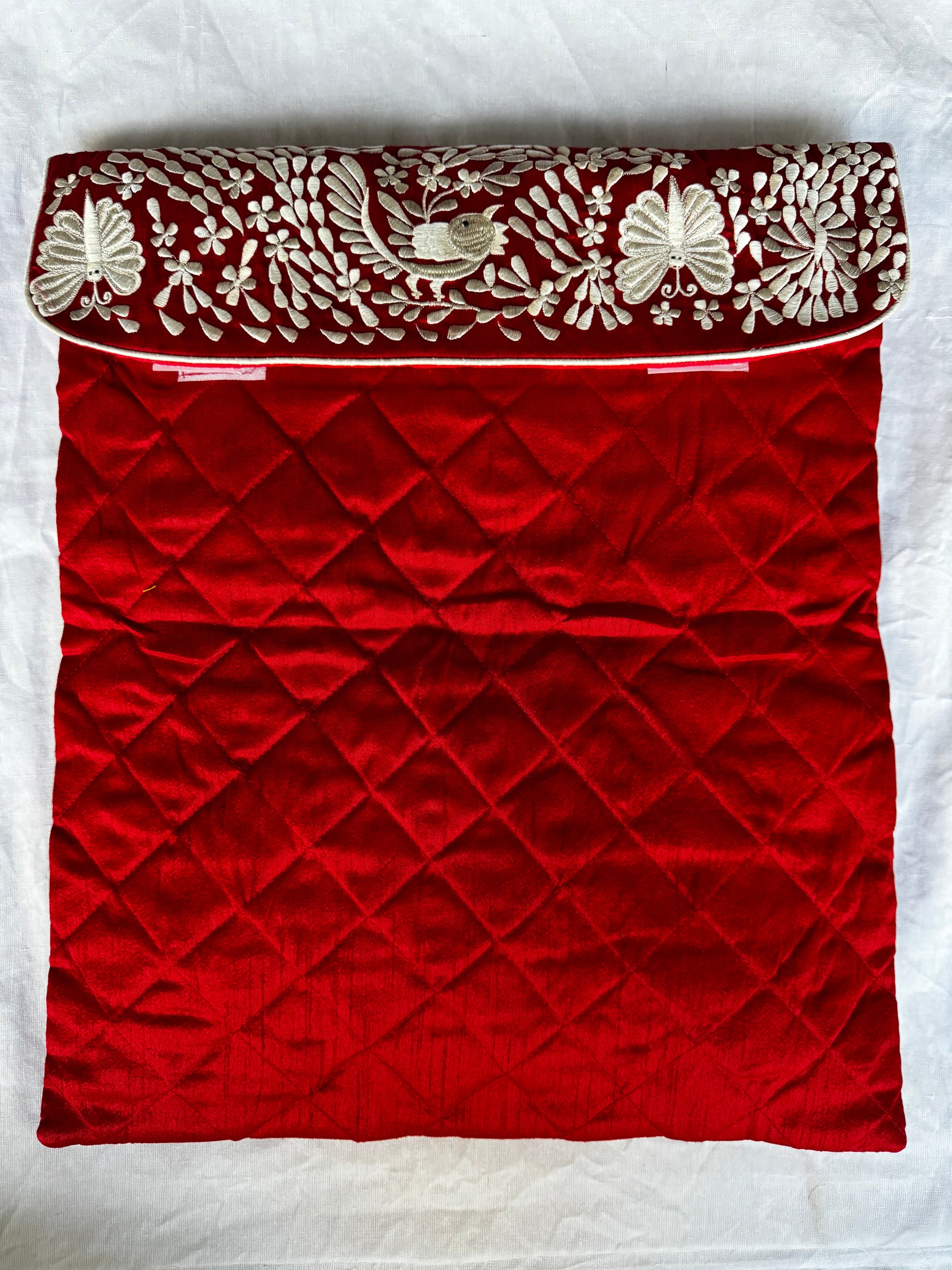 Red saree gift cum storage bag 14 x 17 inches - Embroidery on the flap