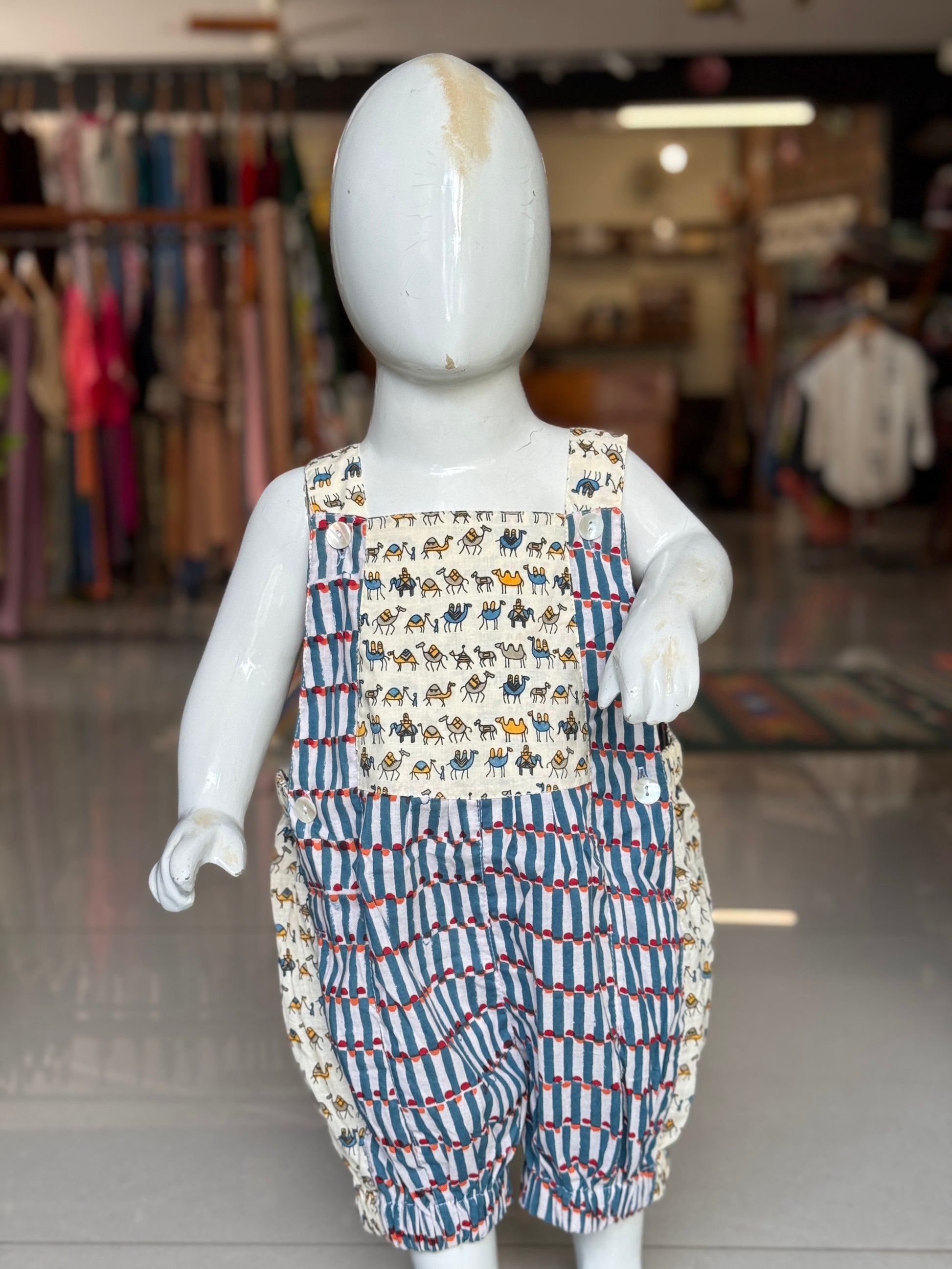 Rompers for babies - hand block printed upcycled soft cotton fabric scrap based unisex outfit for boys and girls