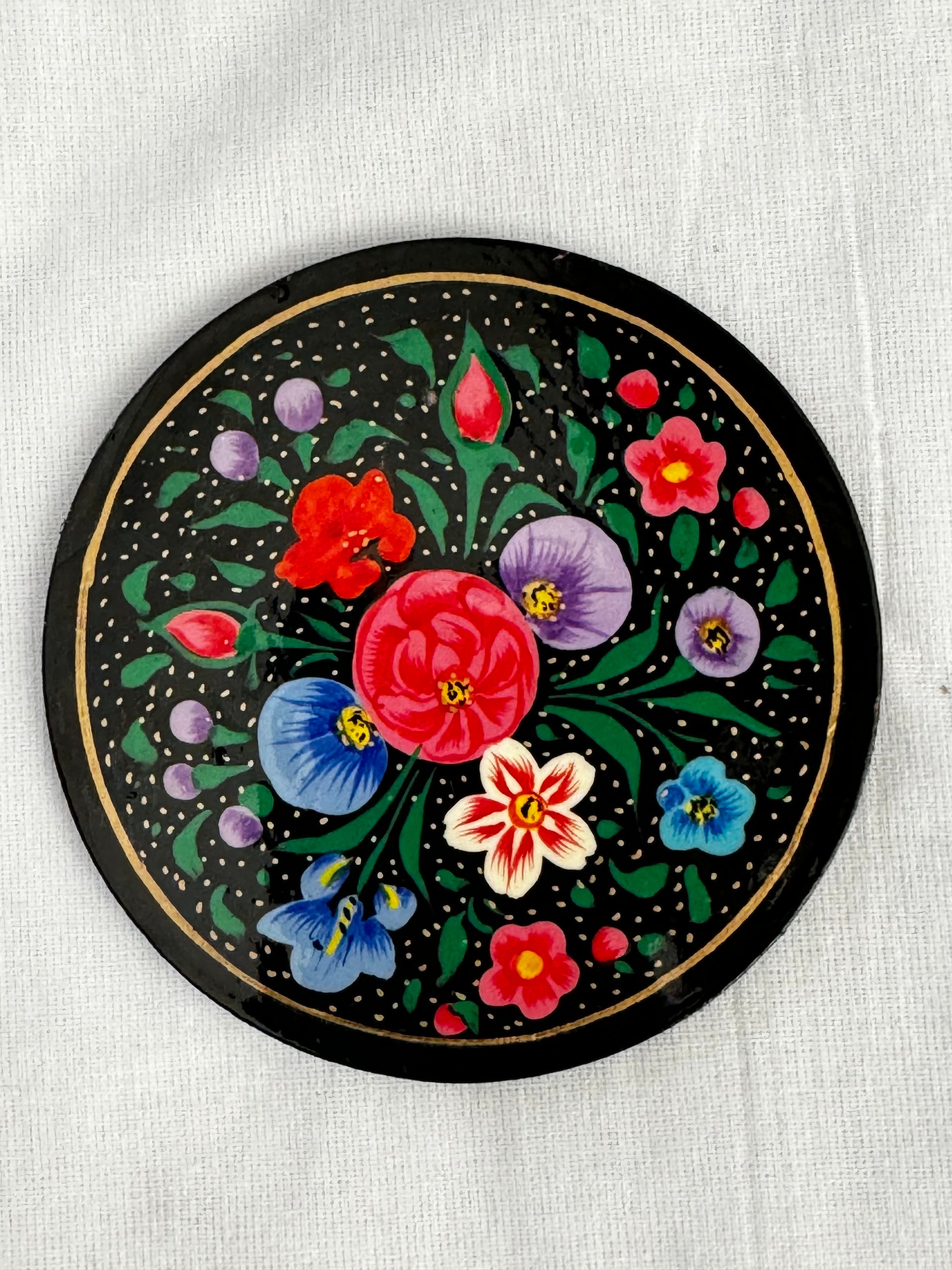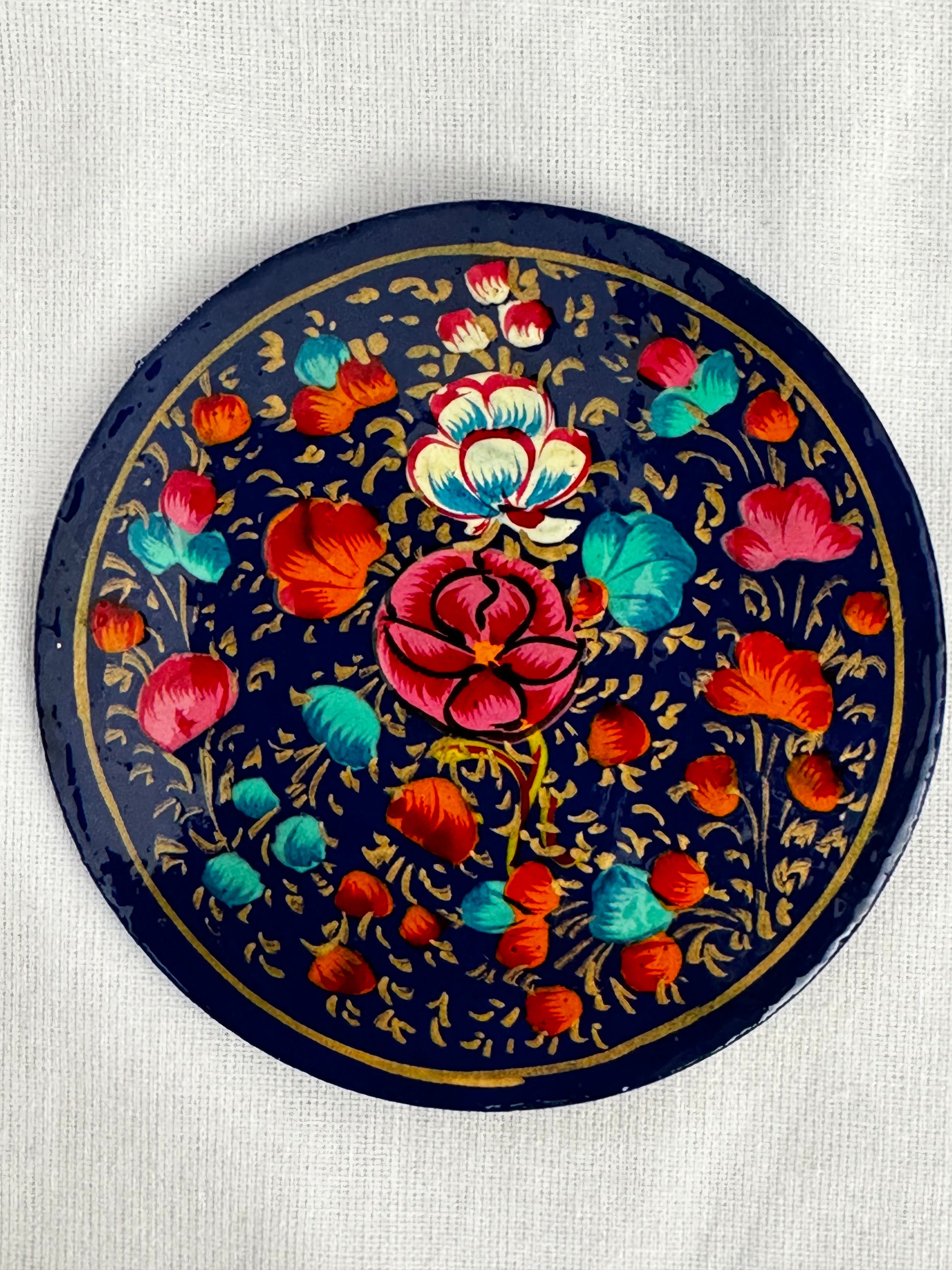 Round Coasters 6 piece set with container - Kashmiri Papier mache hand painted