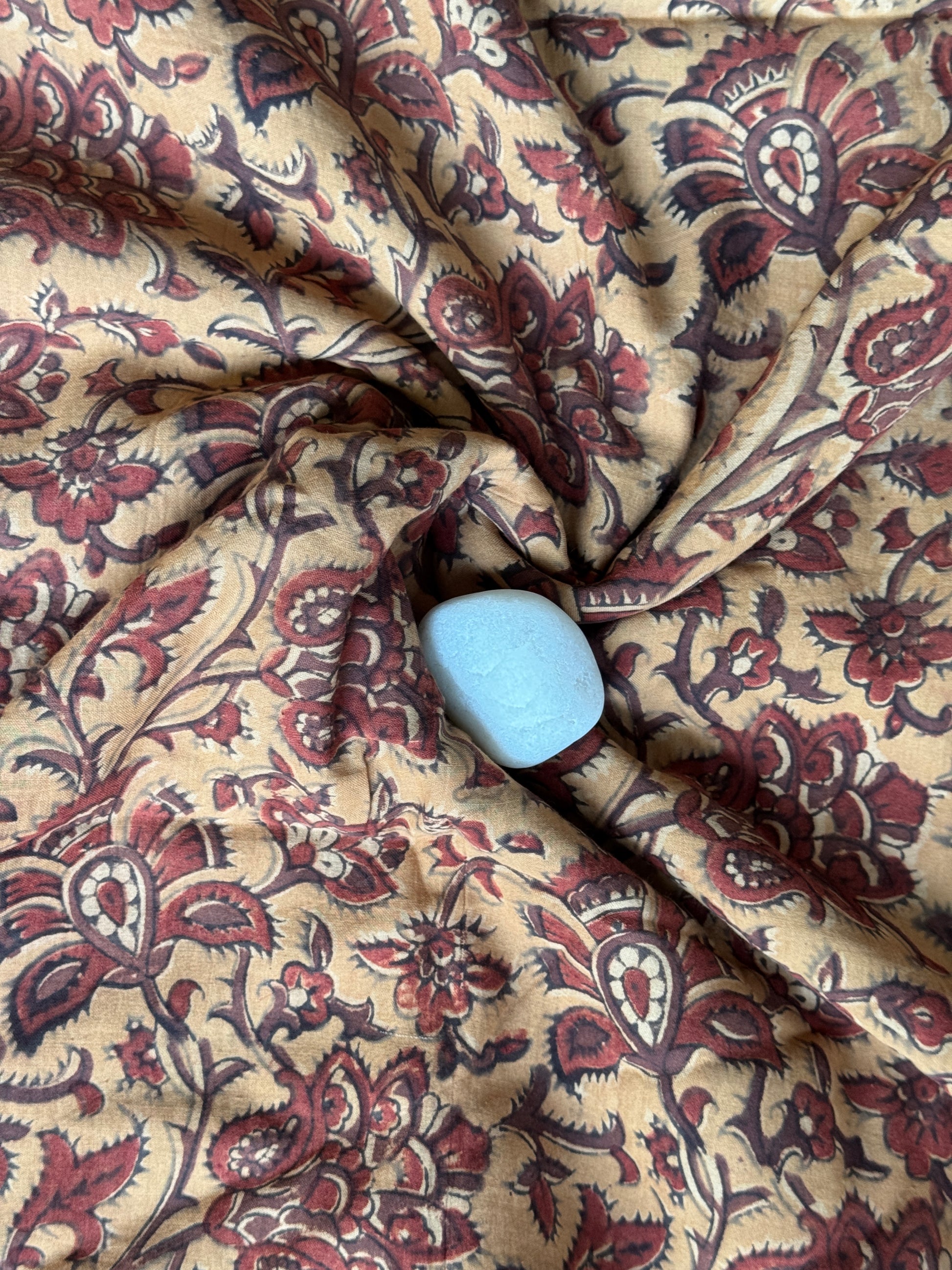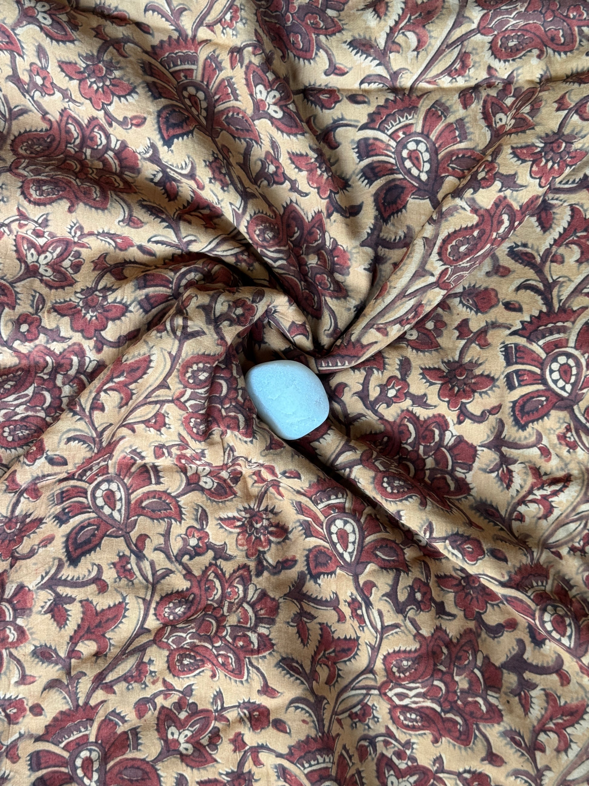 Sandal tone Kalamkari hand block printed natural dyed fabric - 45 inches wide panna