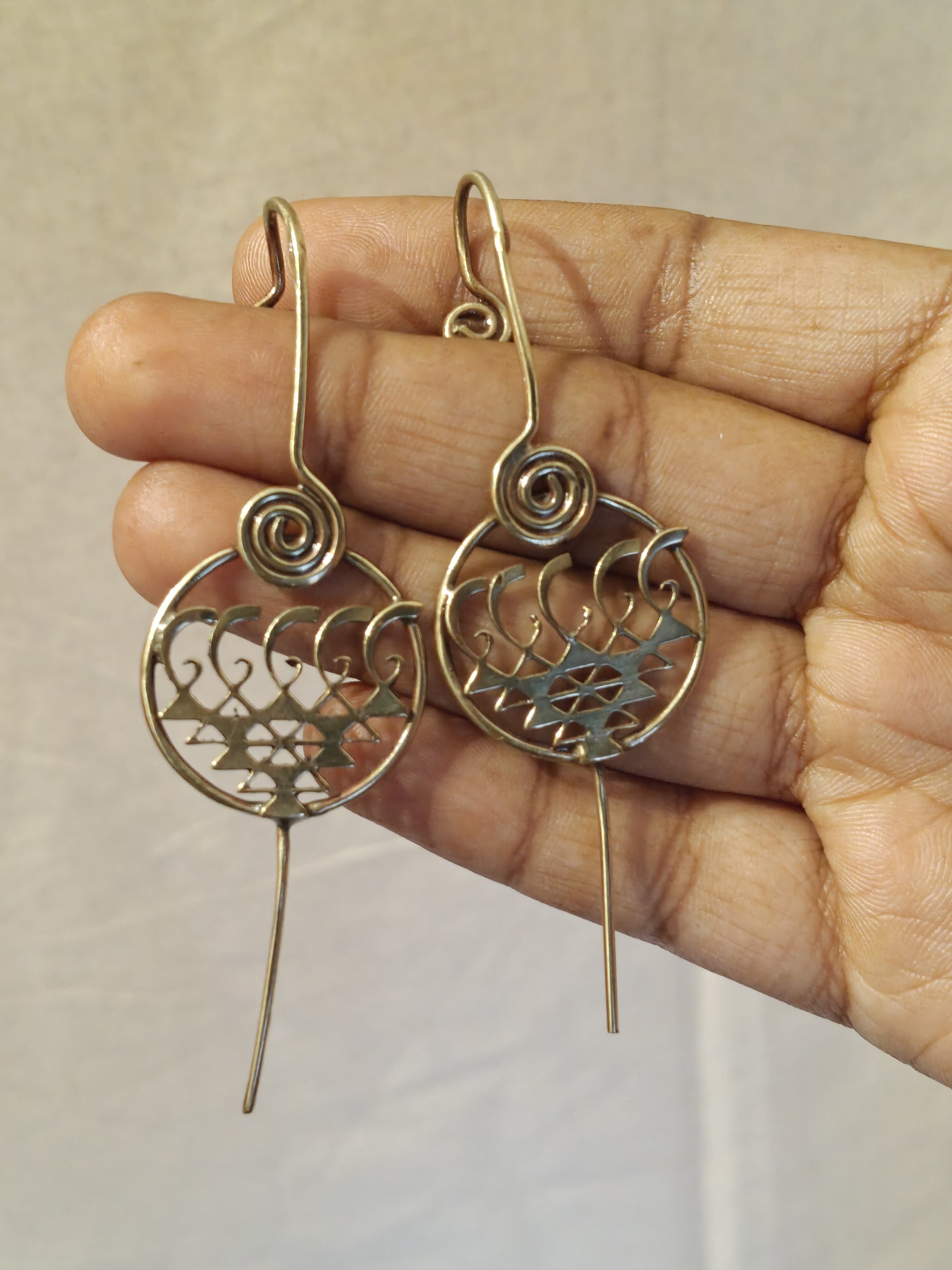 Saraswati yantra ear bugidi / clip ons - designer earrings made of copper and brass