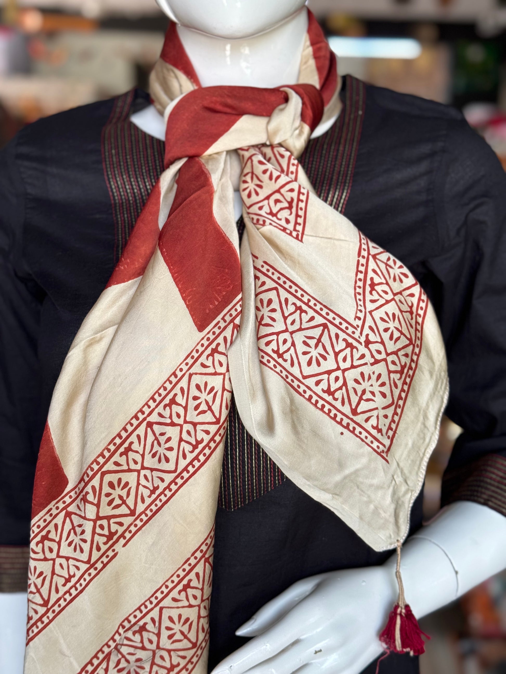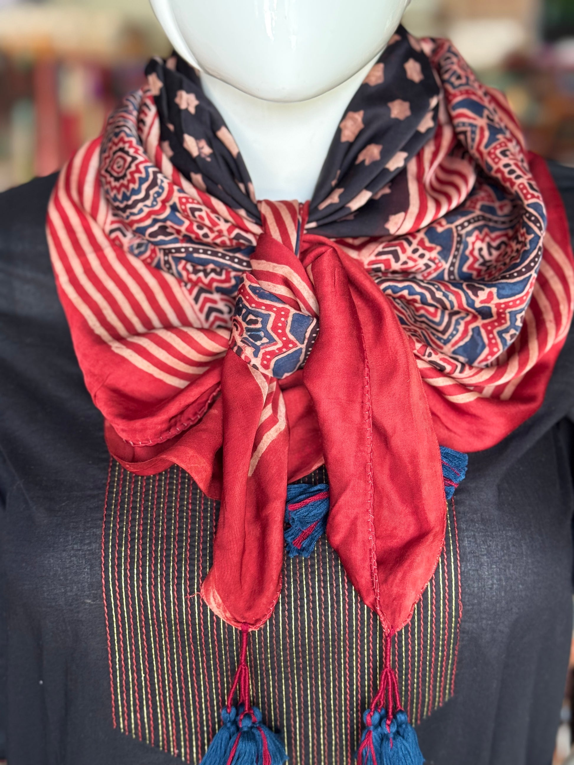 Scarf - hand block printed Ajrakh on soft modal