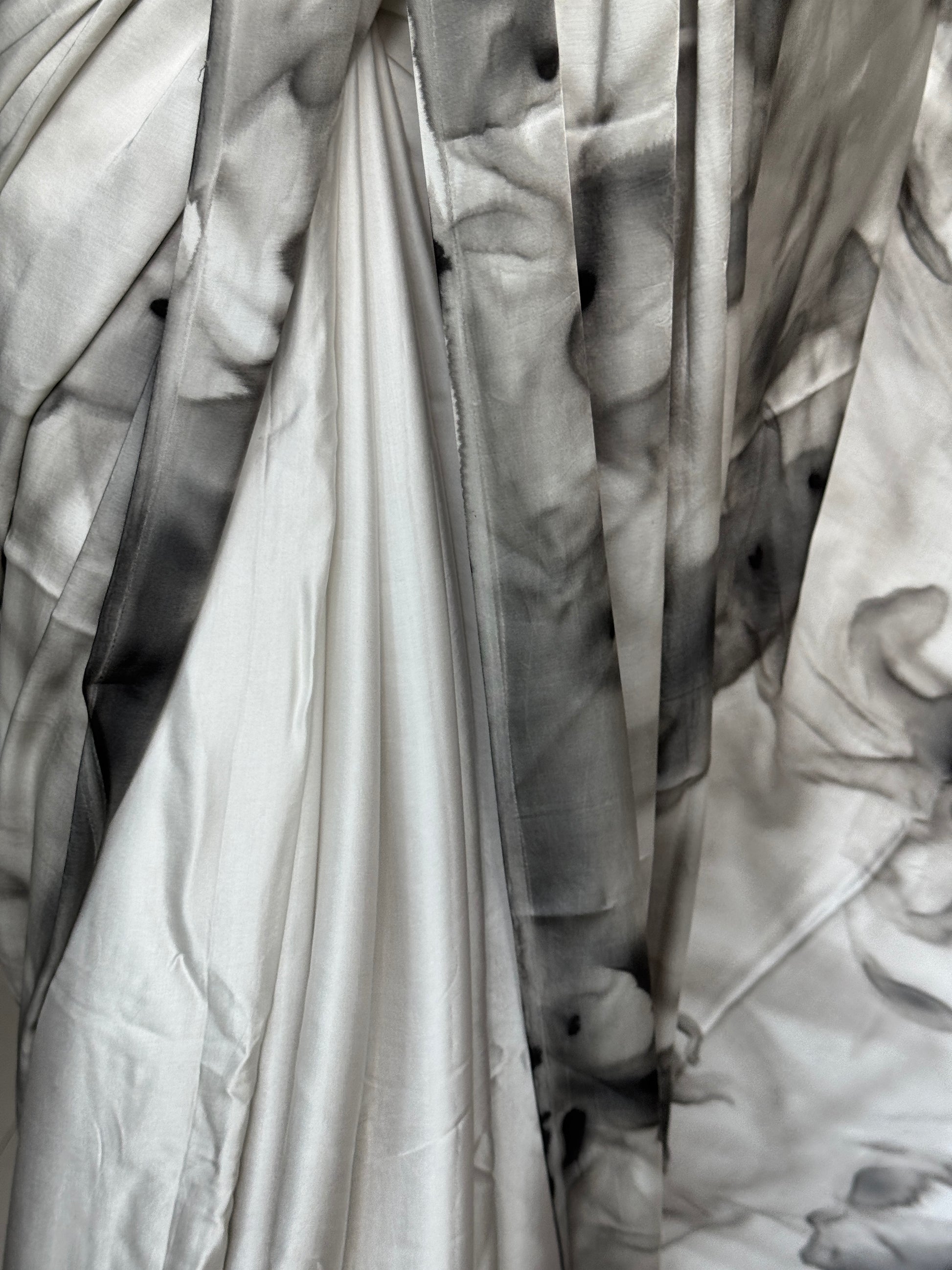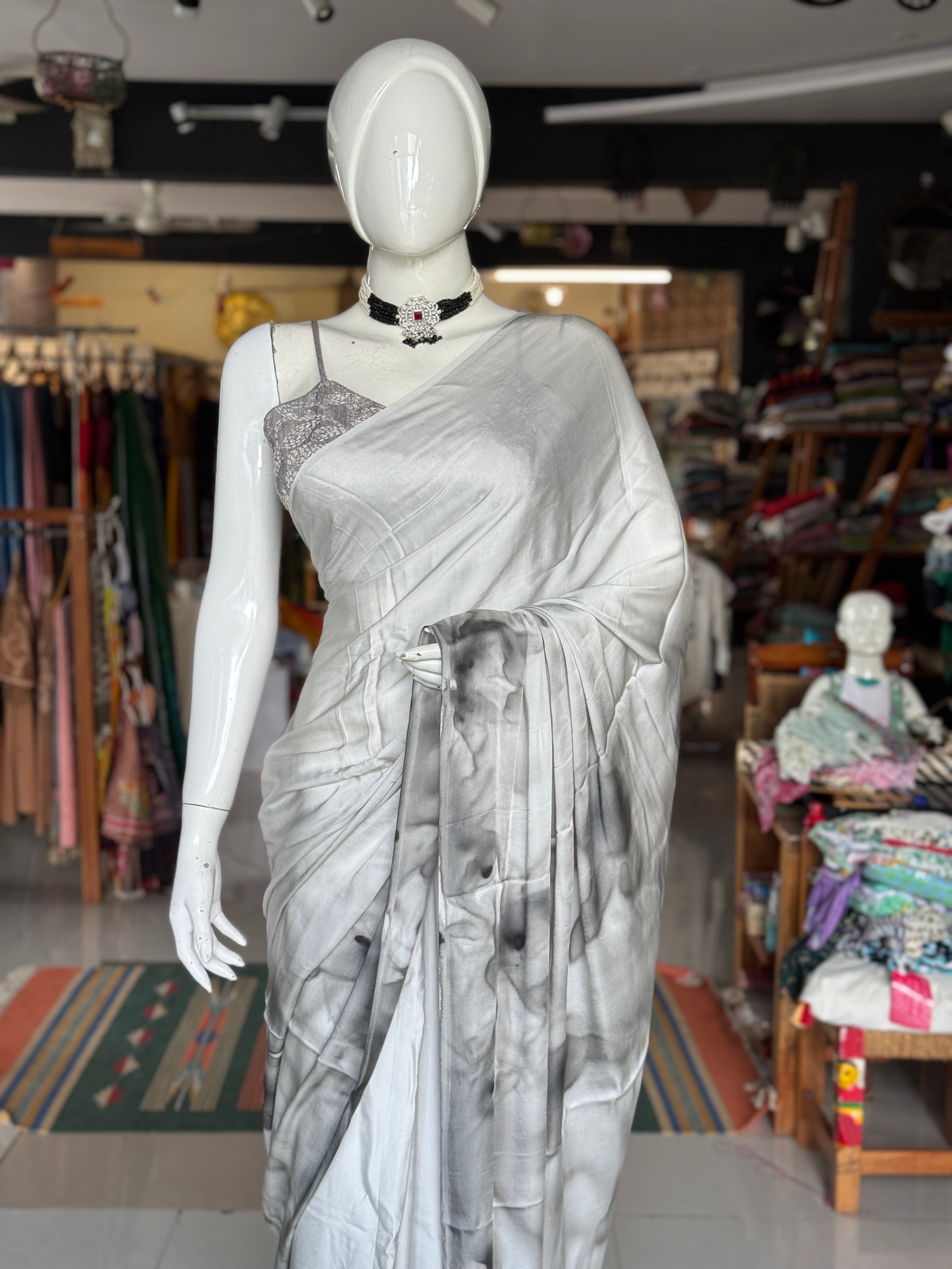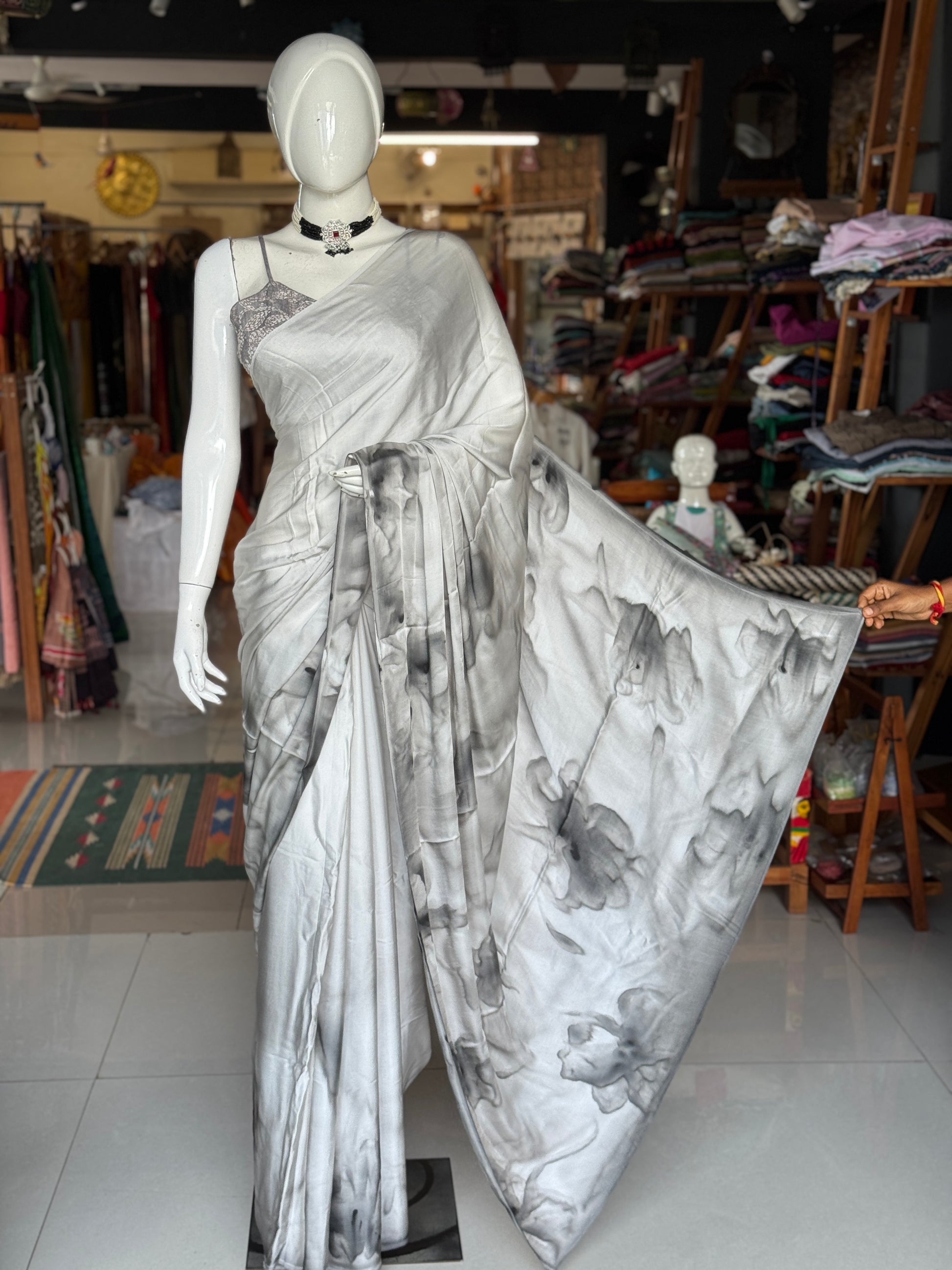 Shades of grey - floral design water colors hand painted soft n flowy modal saree
