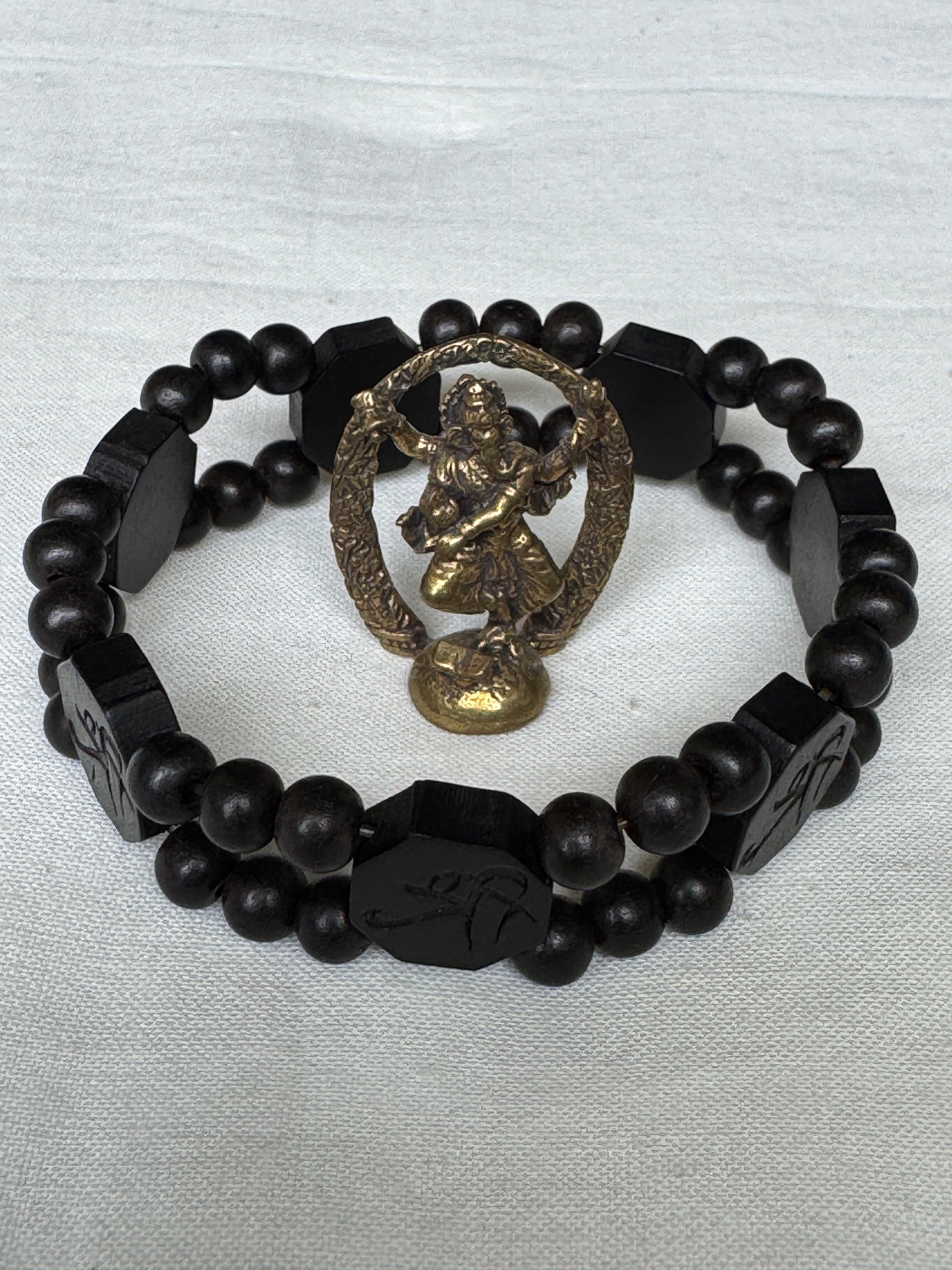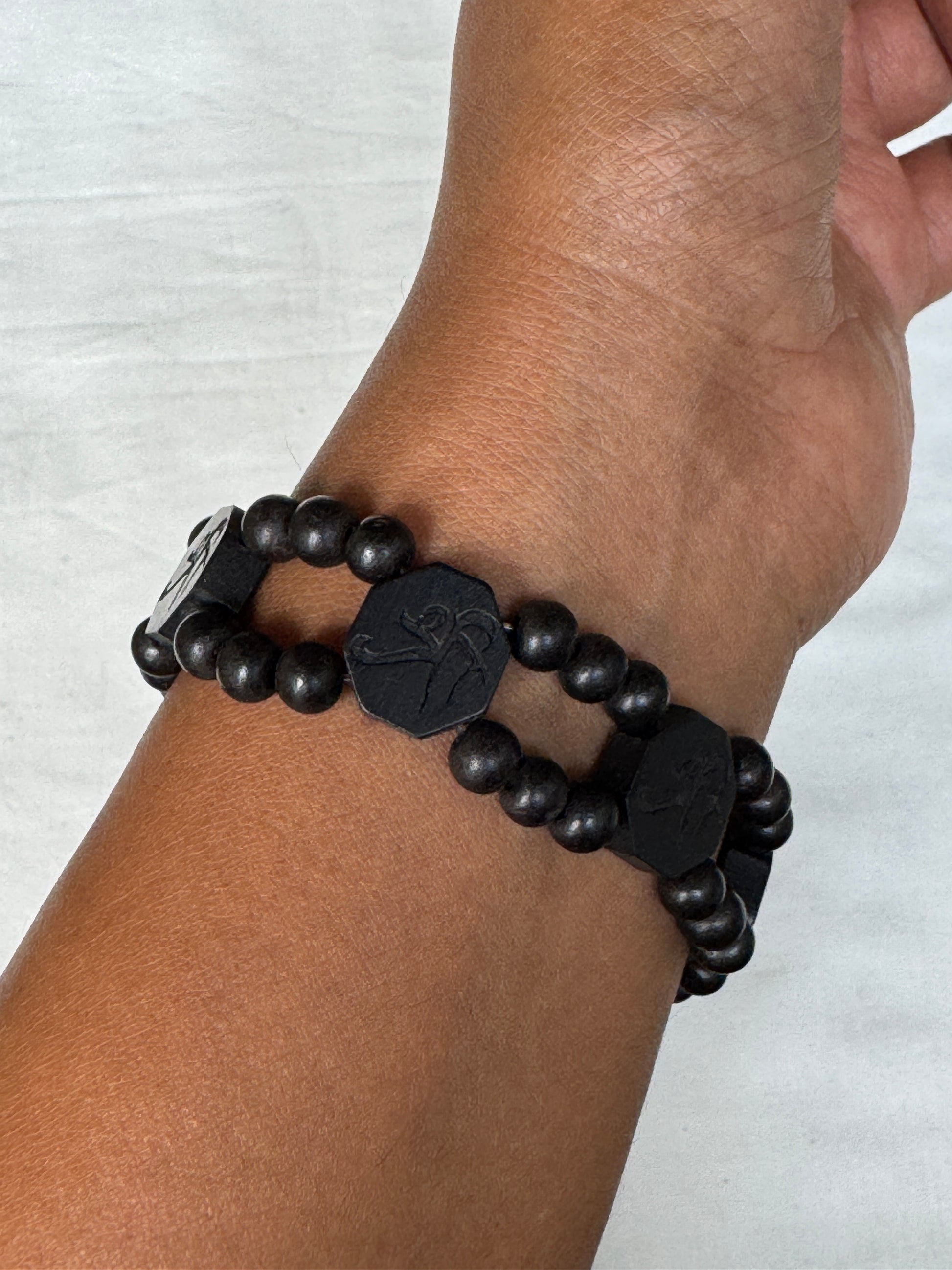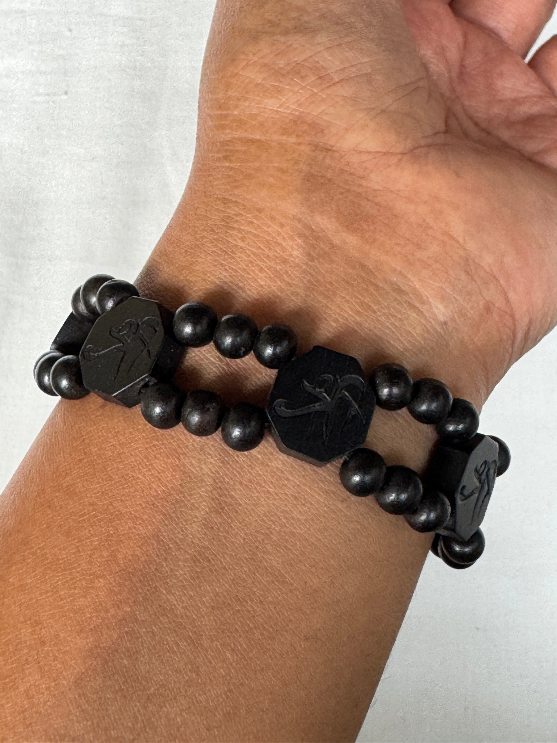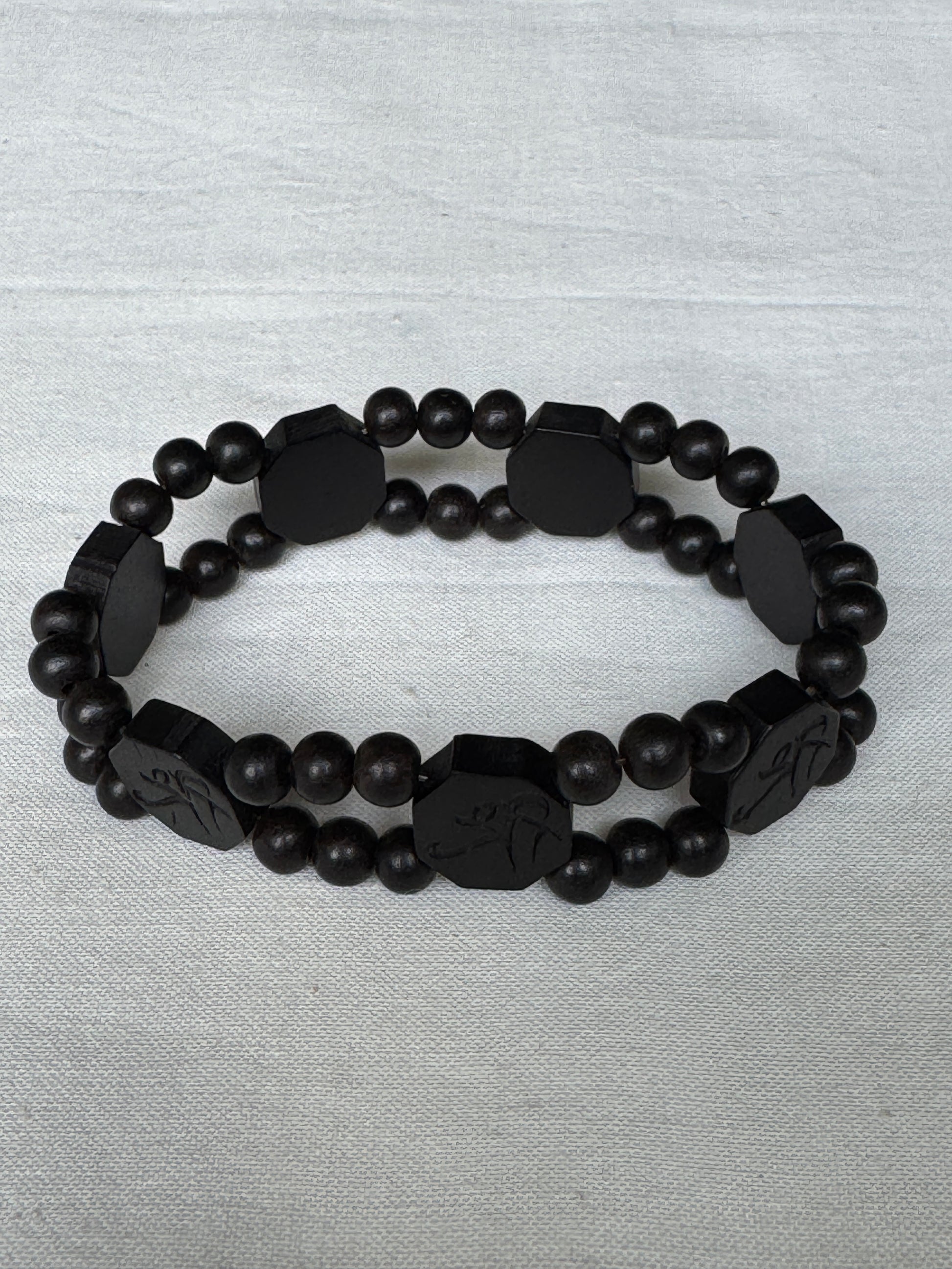 Shri - Black Wooden beads handcrafted bracelet - free size, with elastic