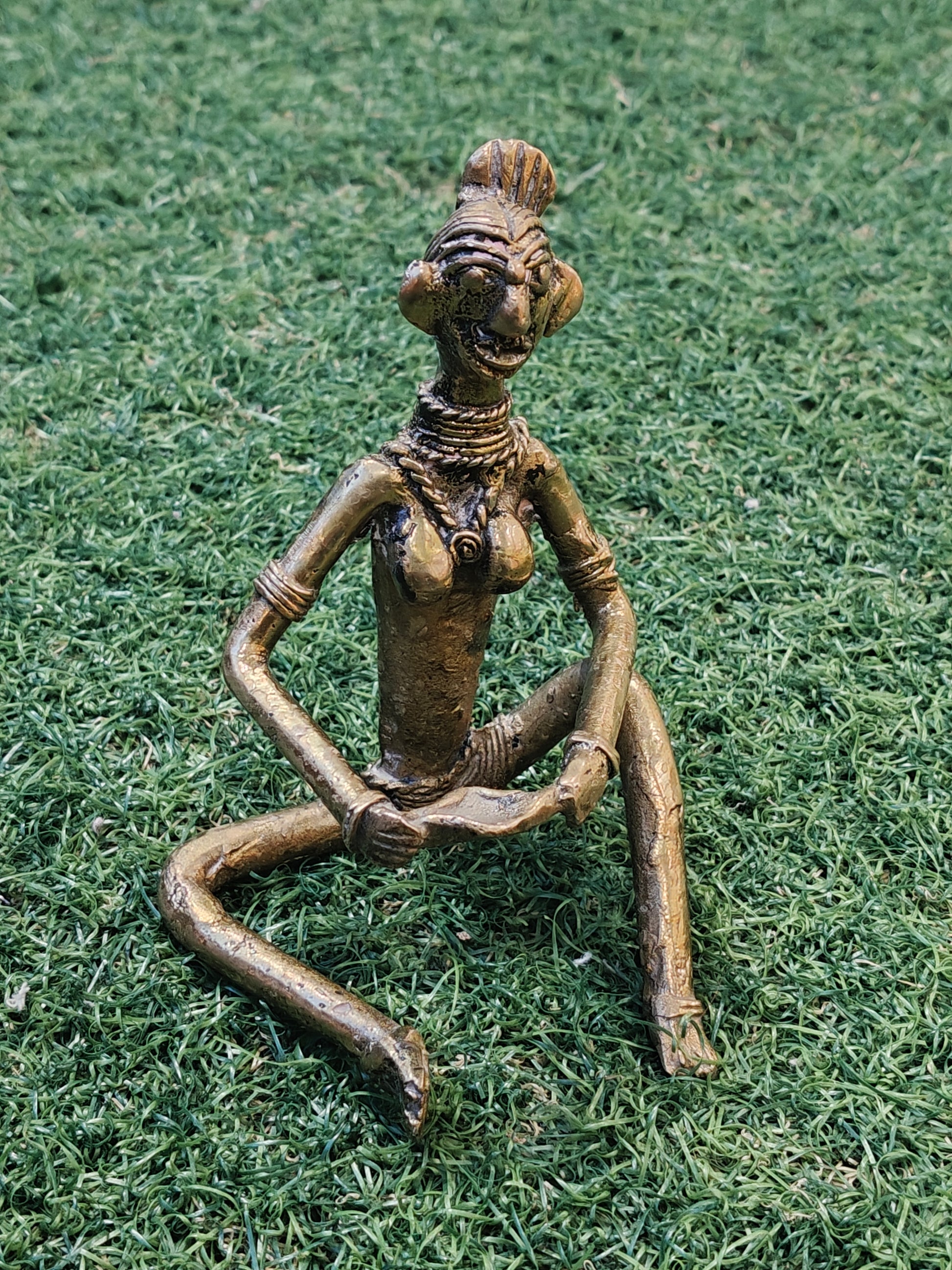 Sitting woman in Handcrafted brass decor - Dokra handicraft