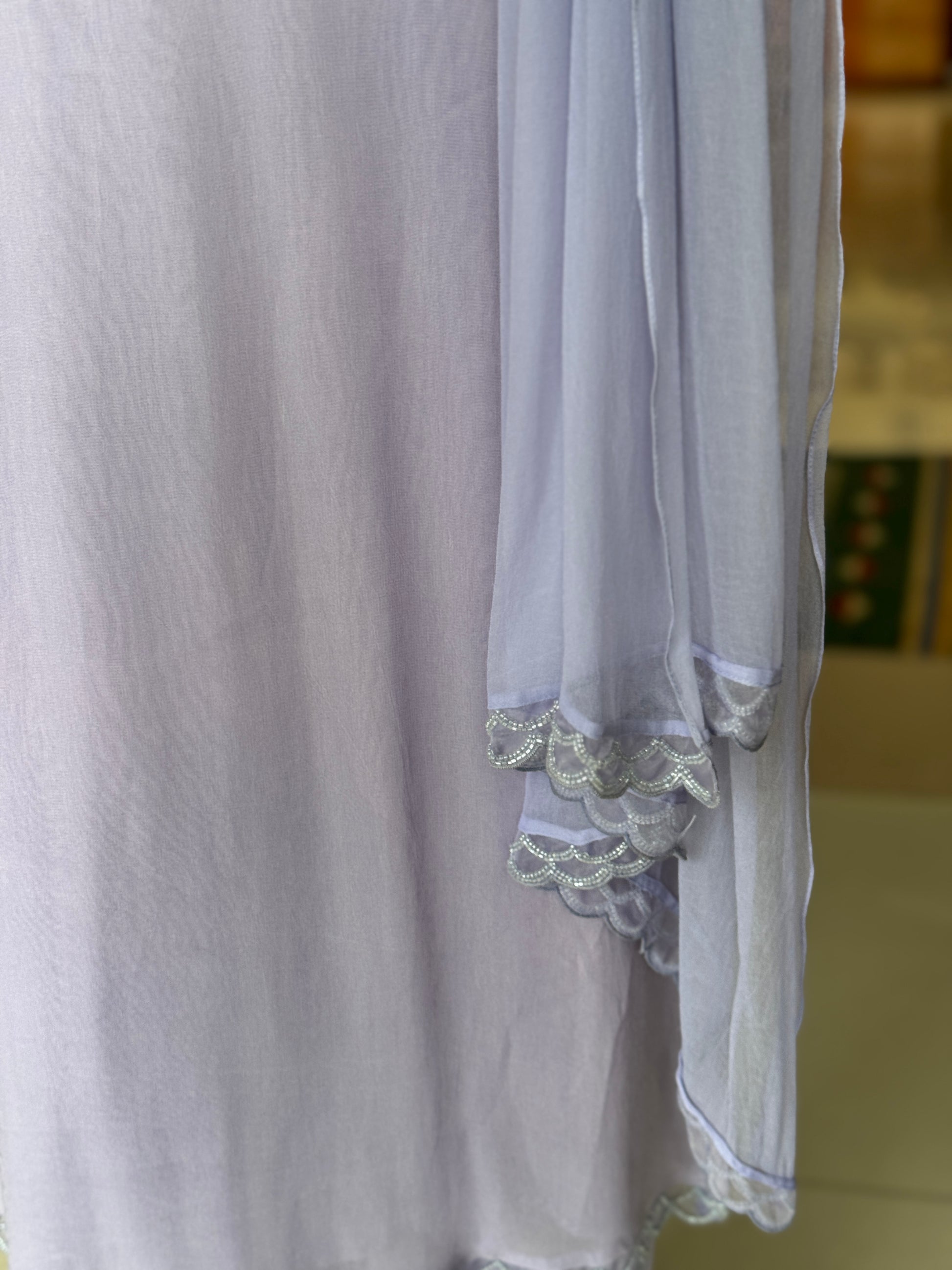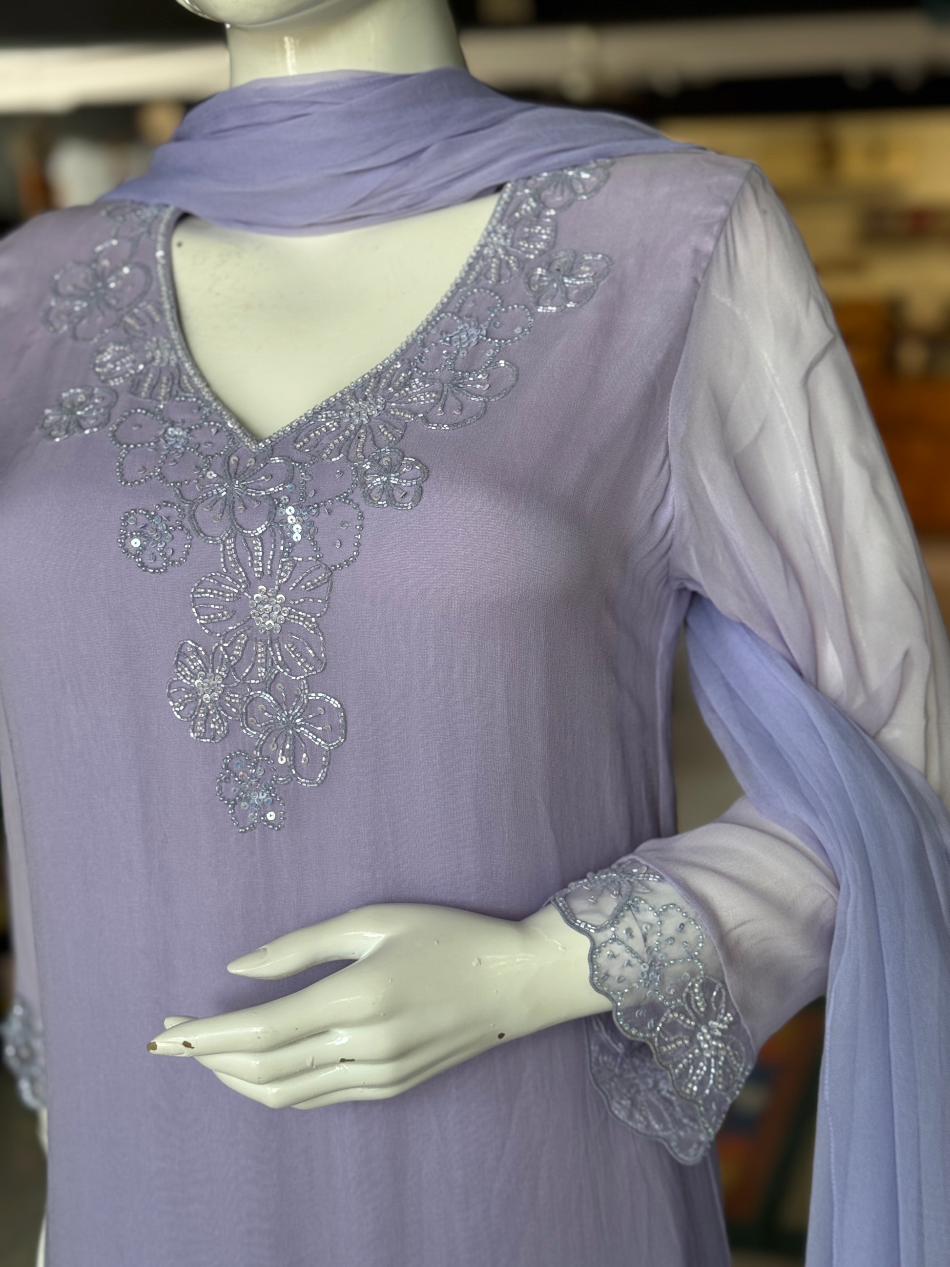 Soft georgette hand embroidered long sleeves kurti, georgette plazo and dupatta - 3 piece set - color options available