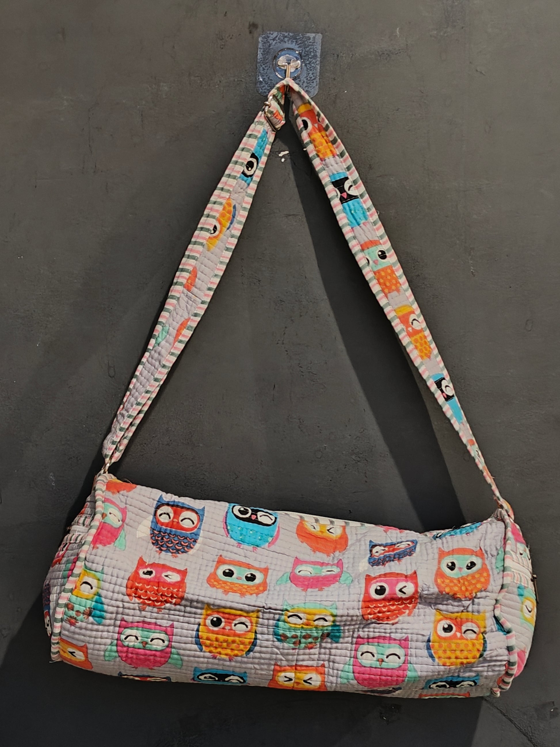 Water proof lined travel and swimming duffle bag in hand block printed, quilted cotton