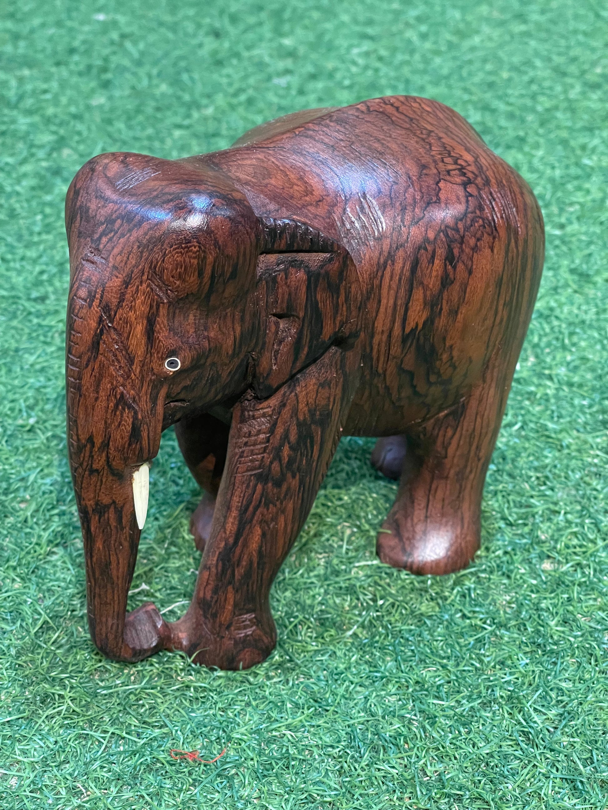 Solid rose wood hand carved wooden elephant decor with beautiful wooden grains patterns