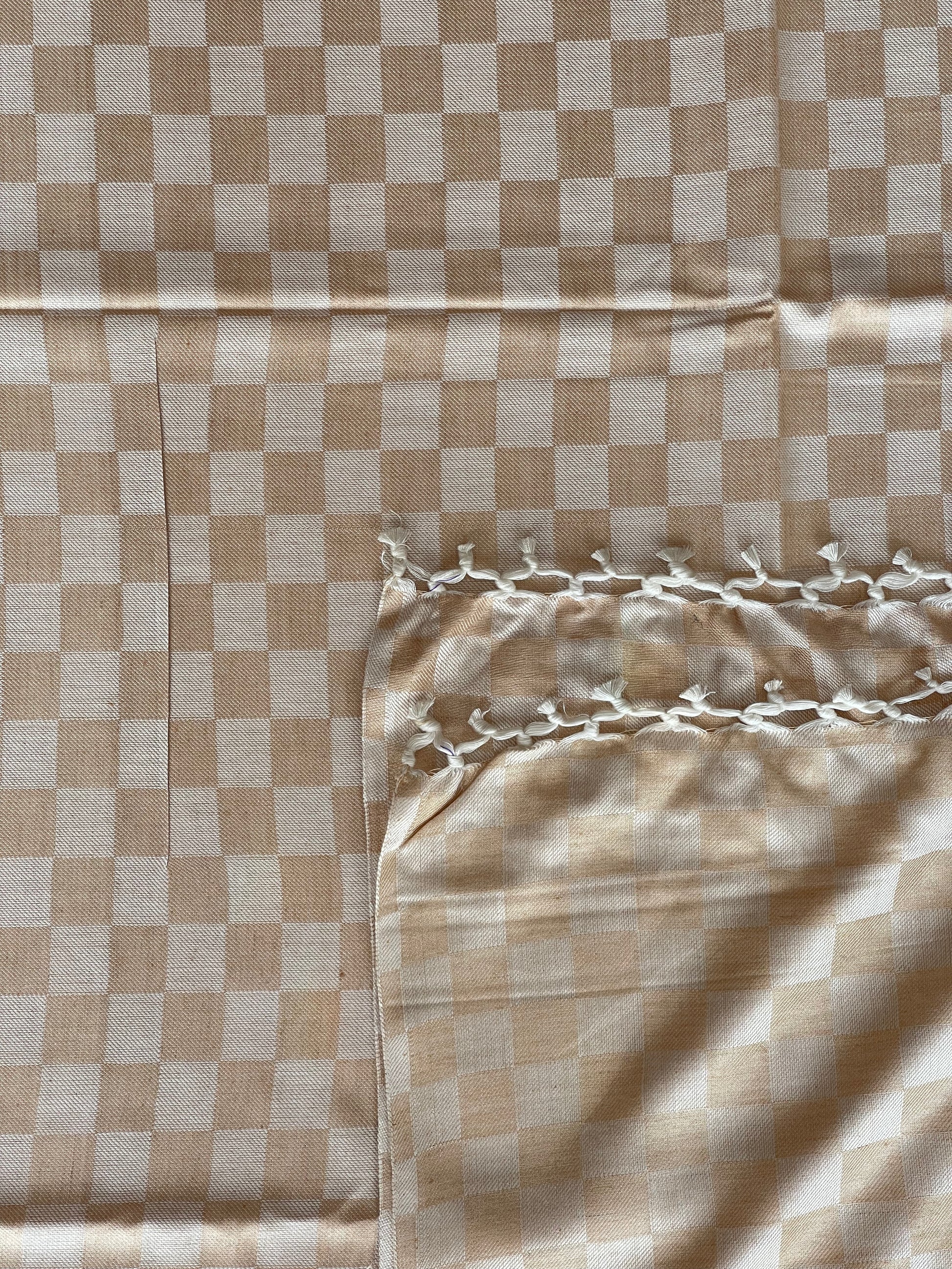 Staple cotton hand woven single blanket (beige)