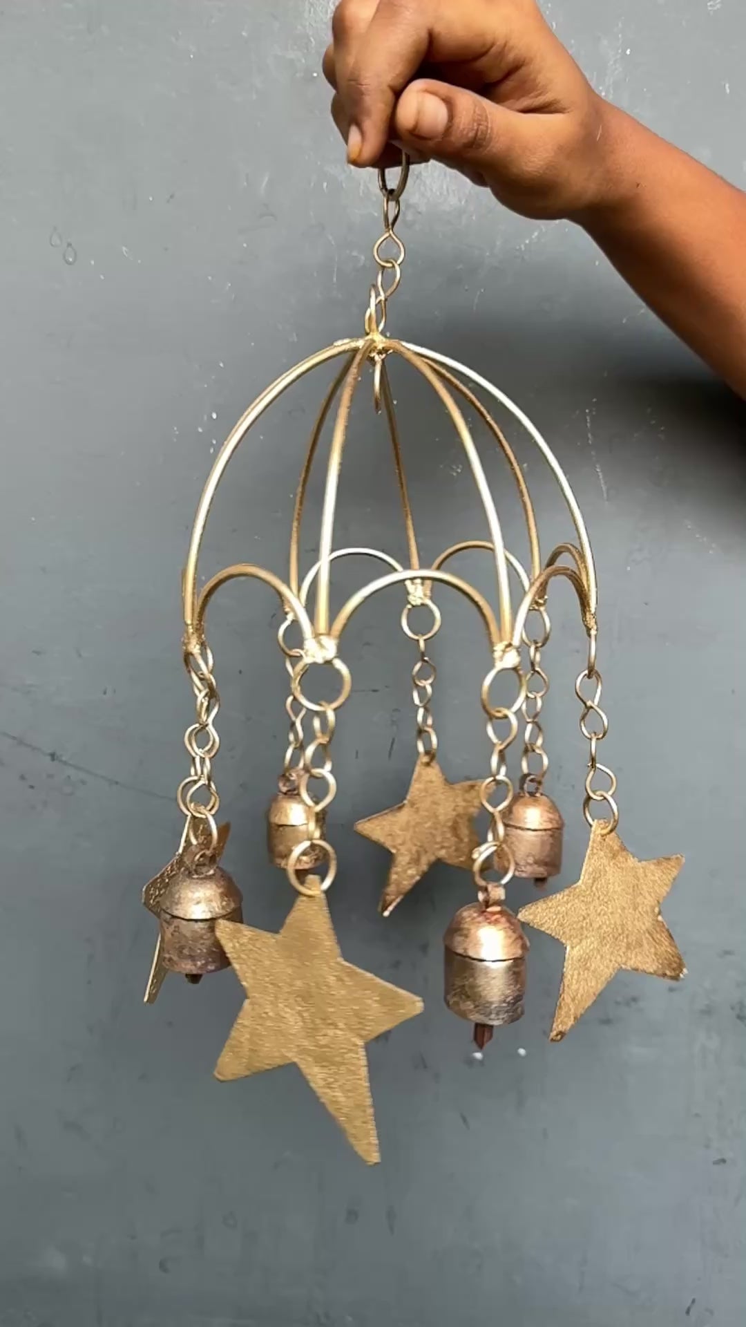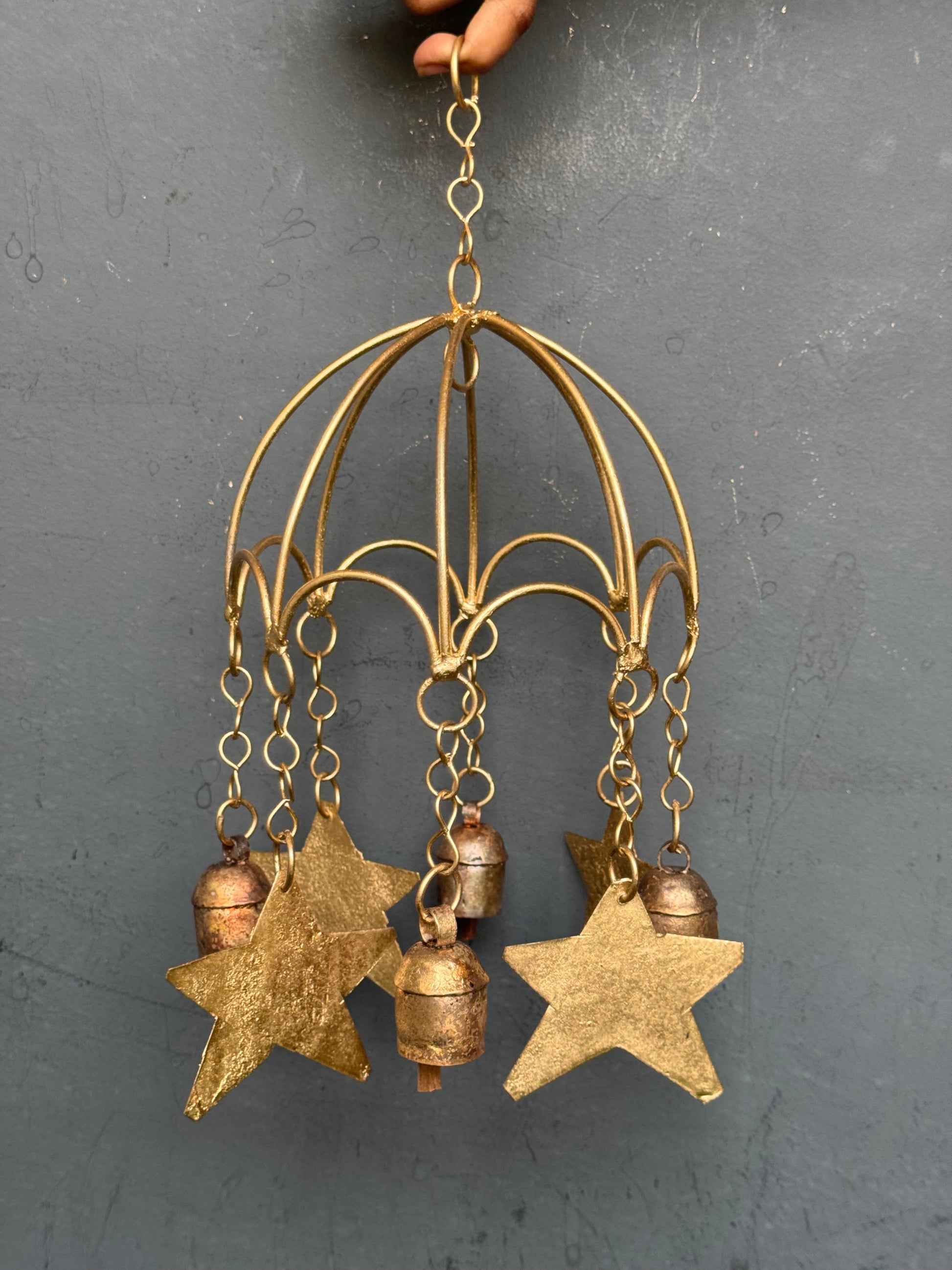 Stars and bells under 3D dome umbrella - copper handcrafted bells hanging