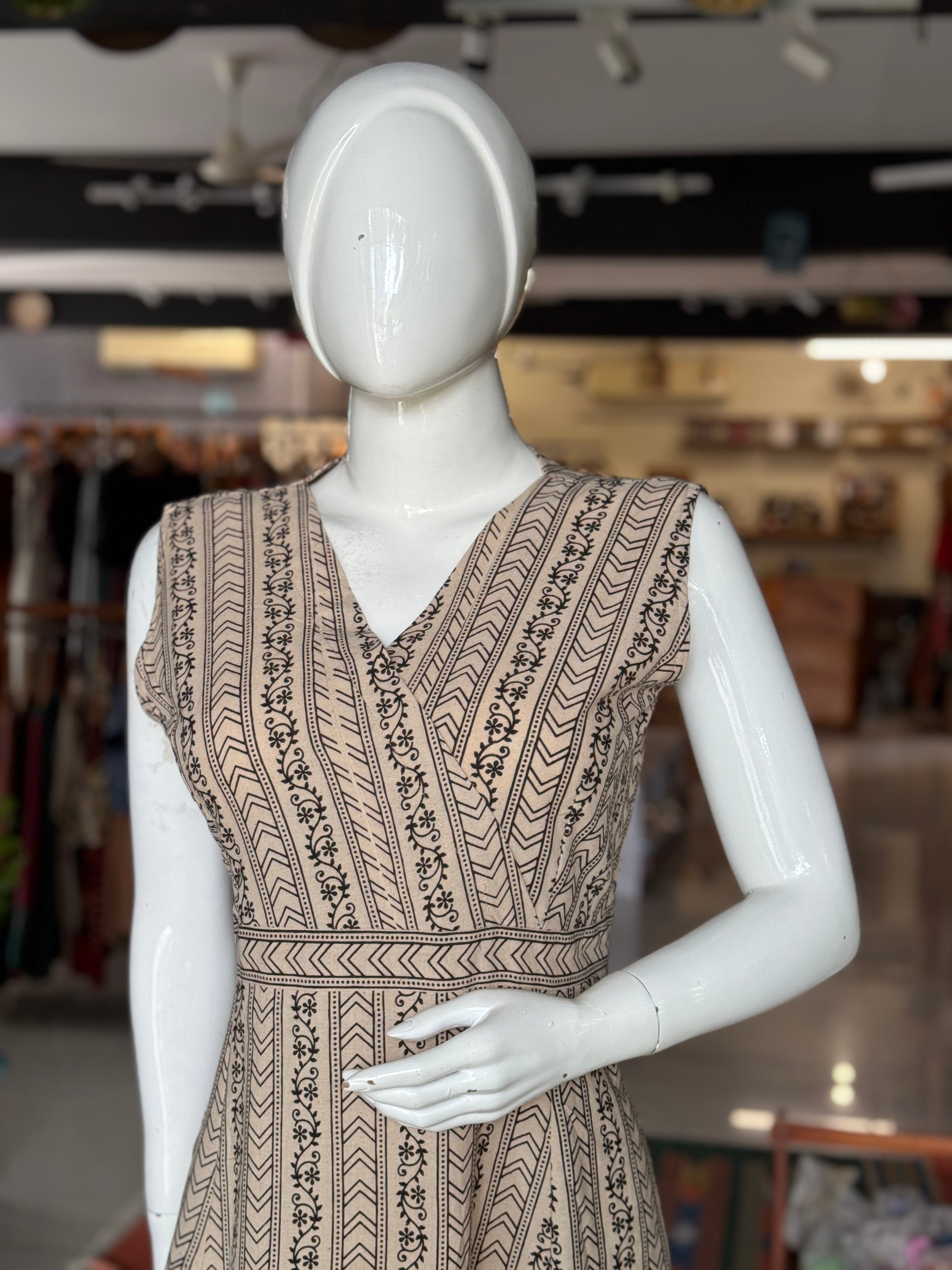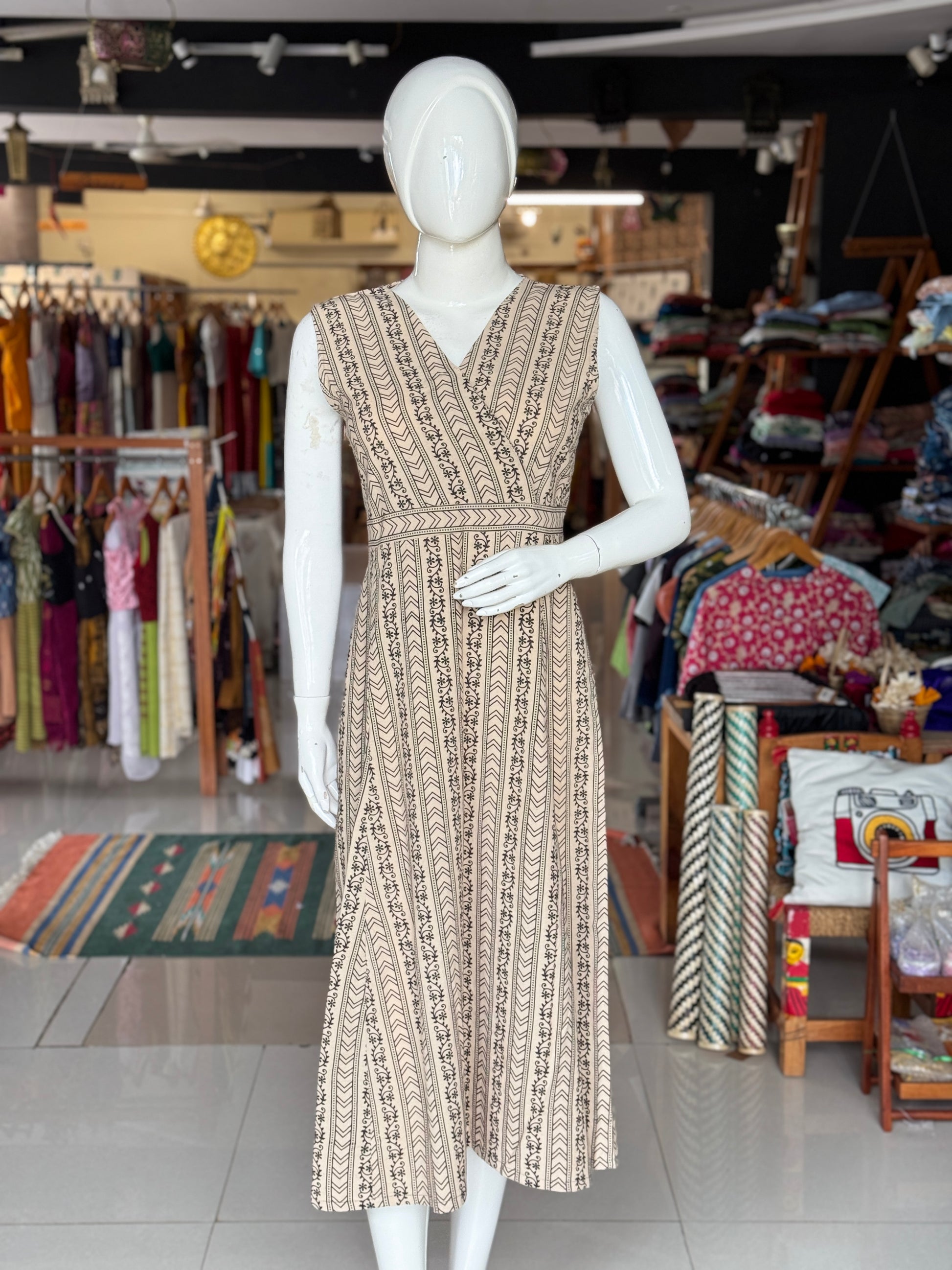 Stripes with chevrons and flowers dress - cotton, hand block printed
