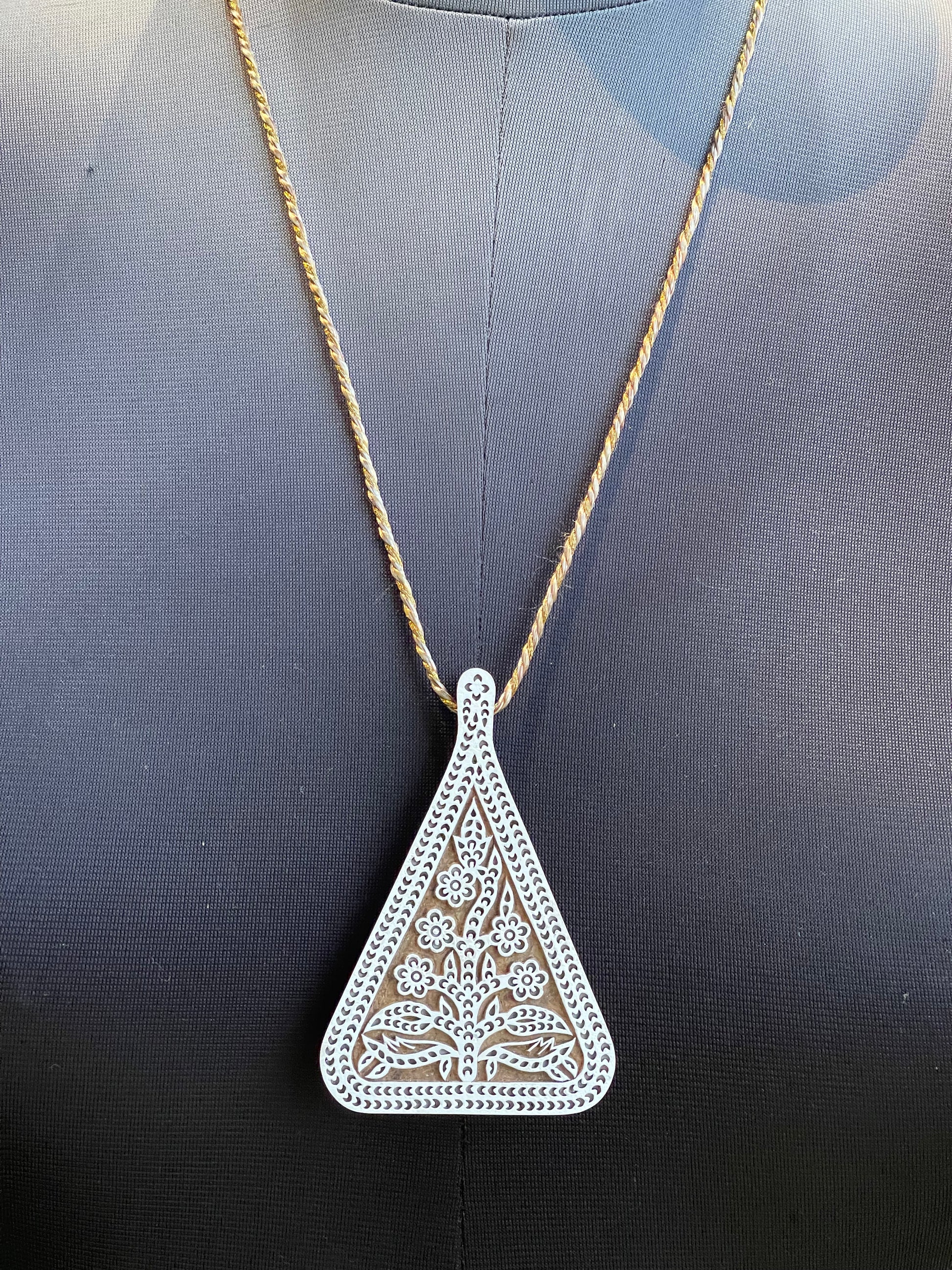 Triangle wooden block carved handmade pendant