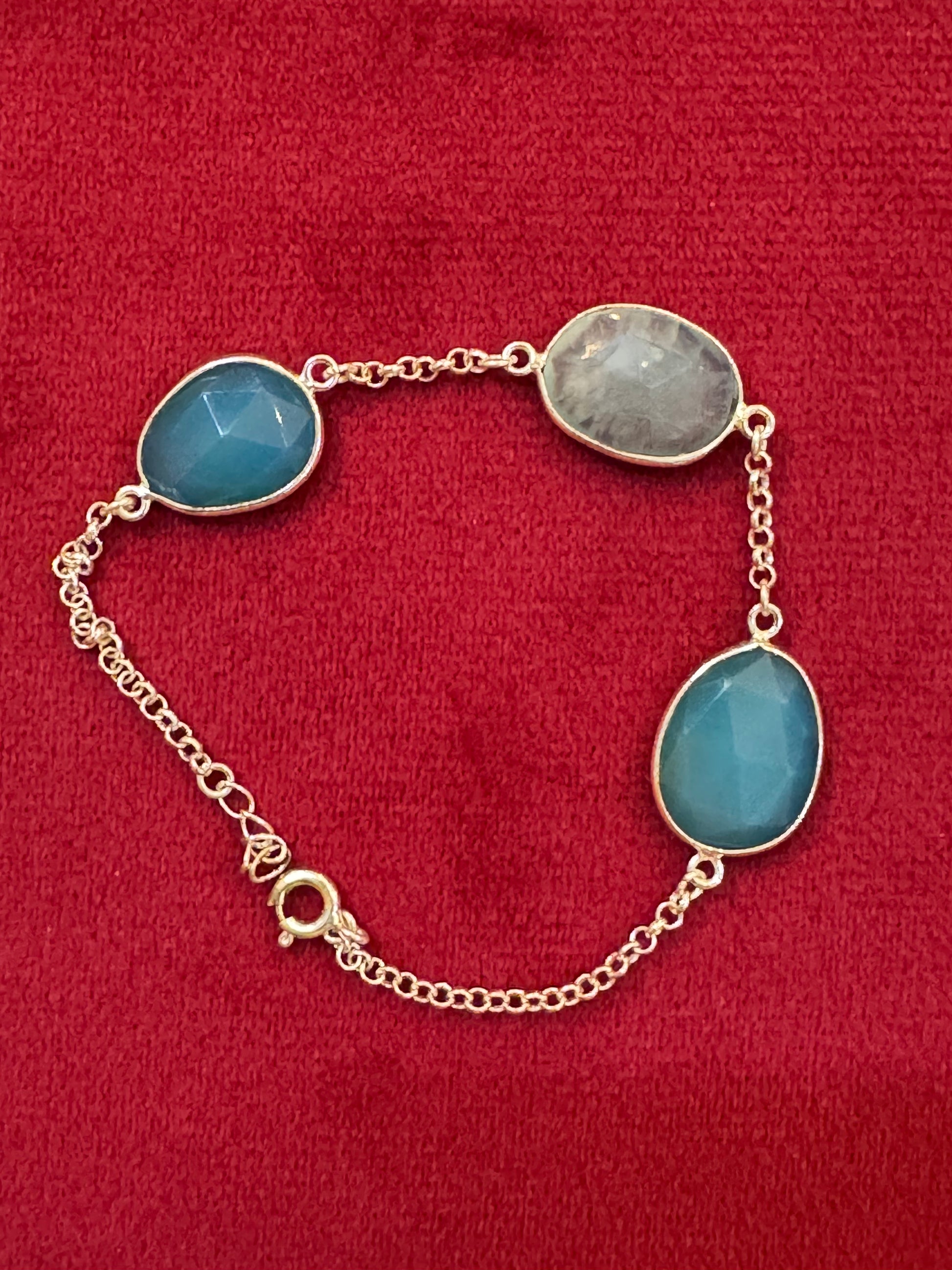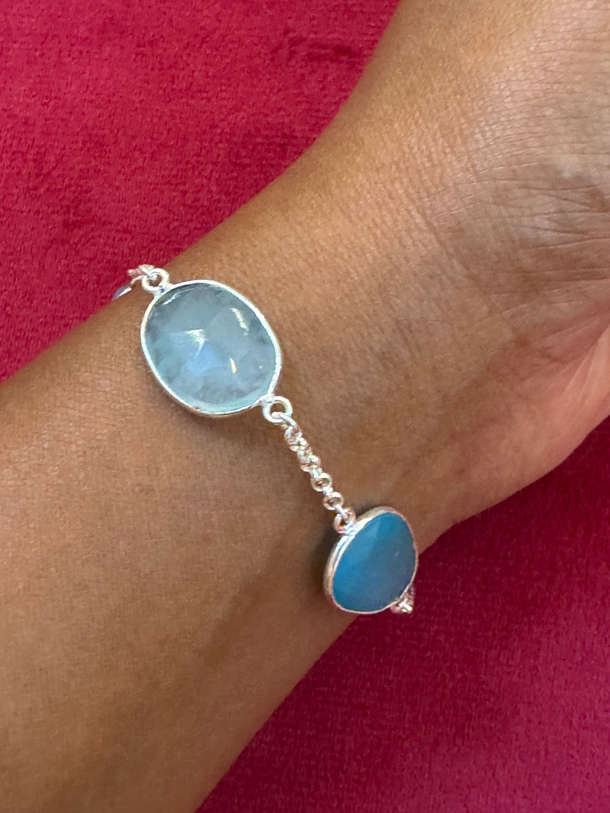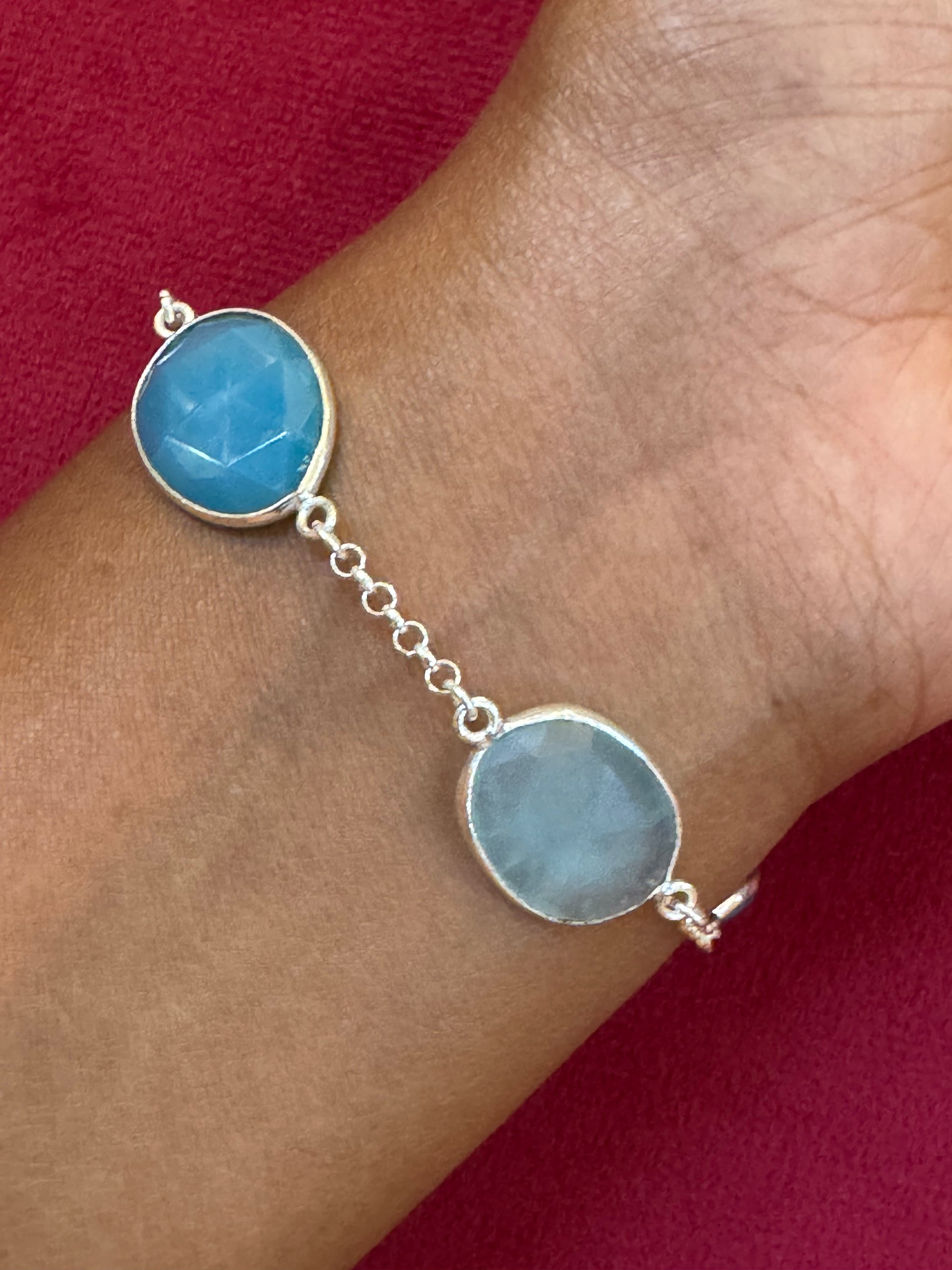 Turquoise tone semi precious stones studded pure silver bracelet