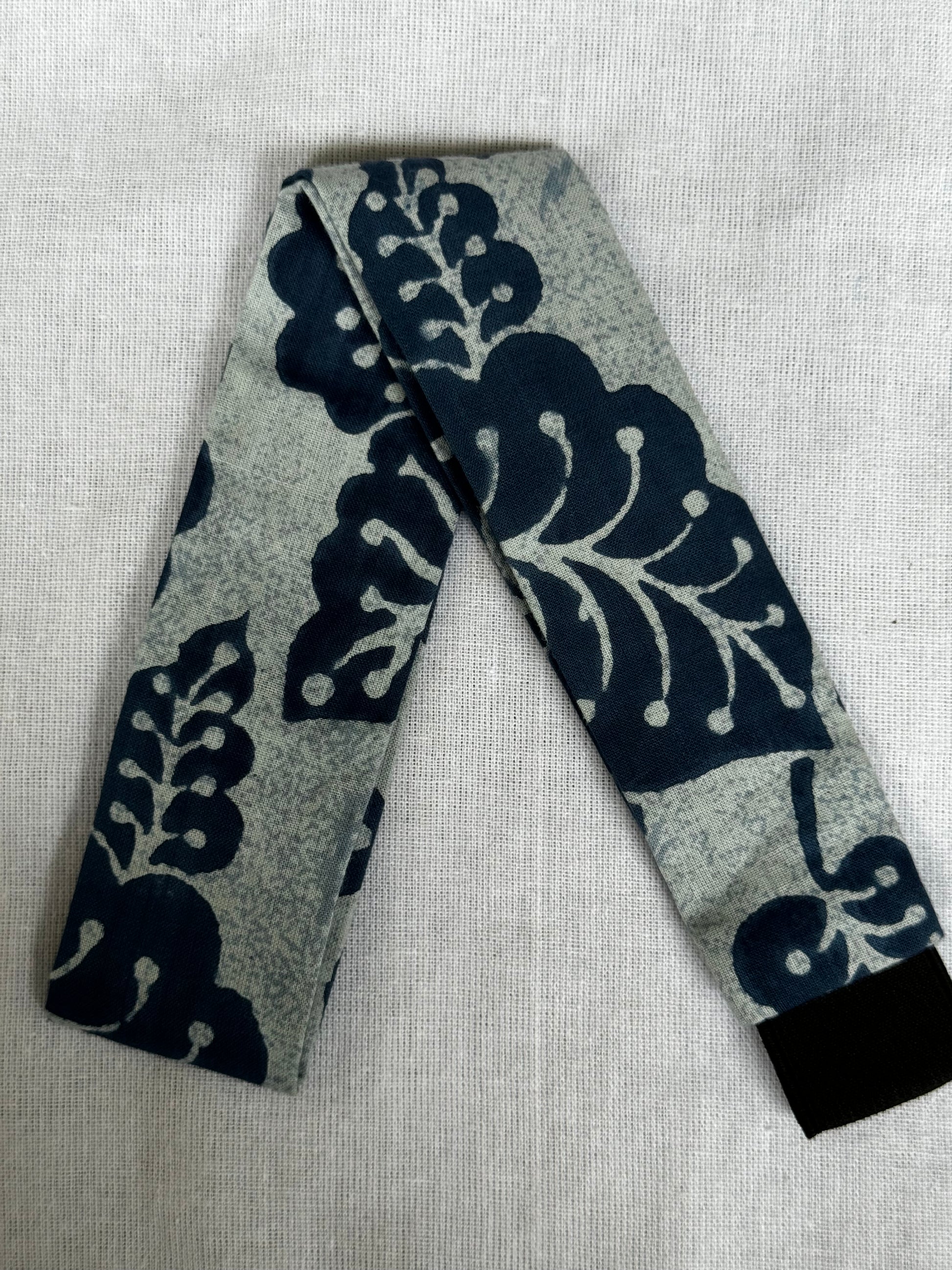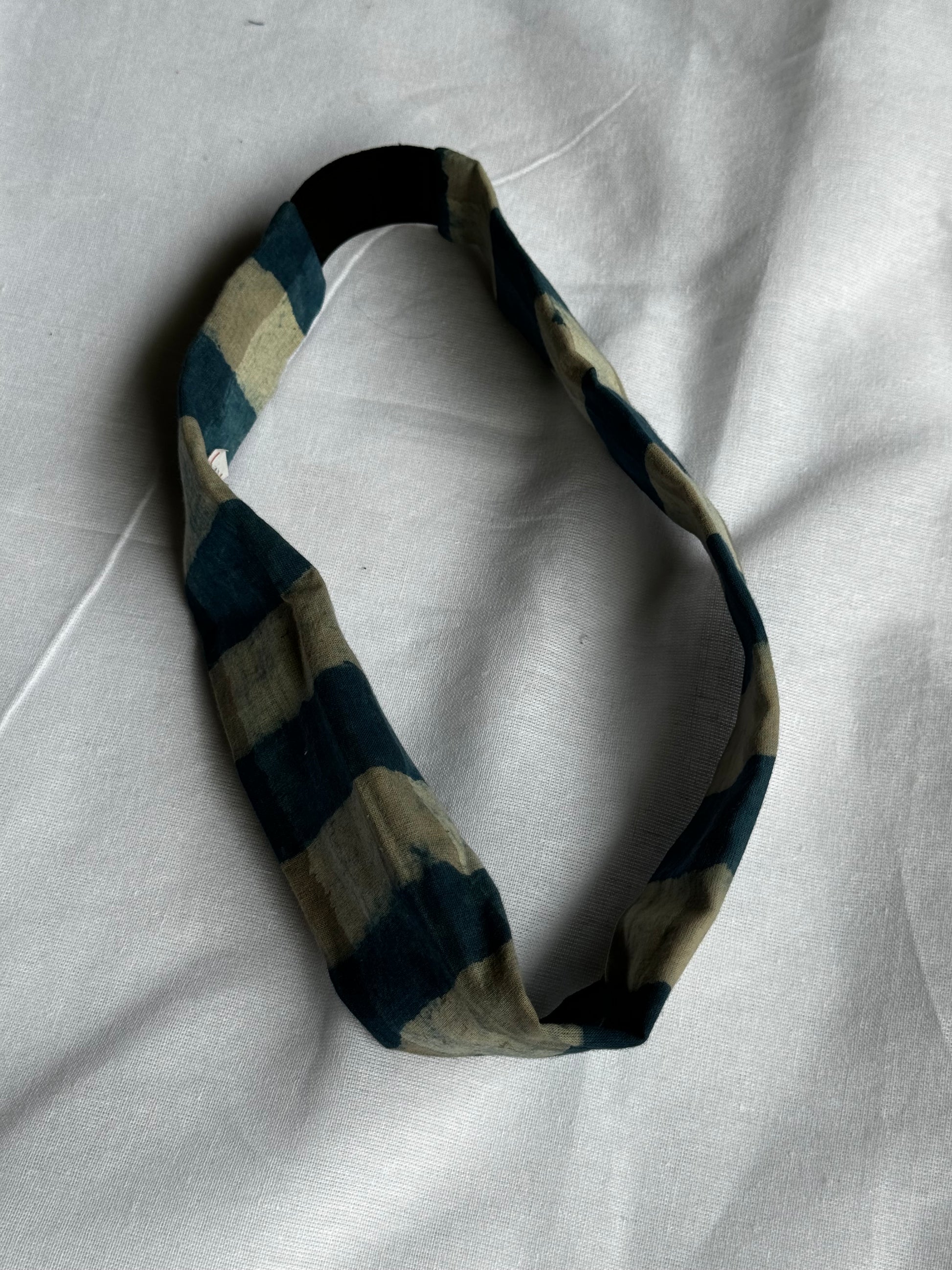 Unisex Head band with elastic in natural dyed, hand block printed cotton