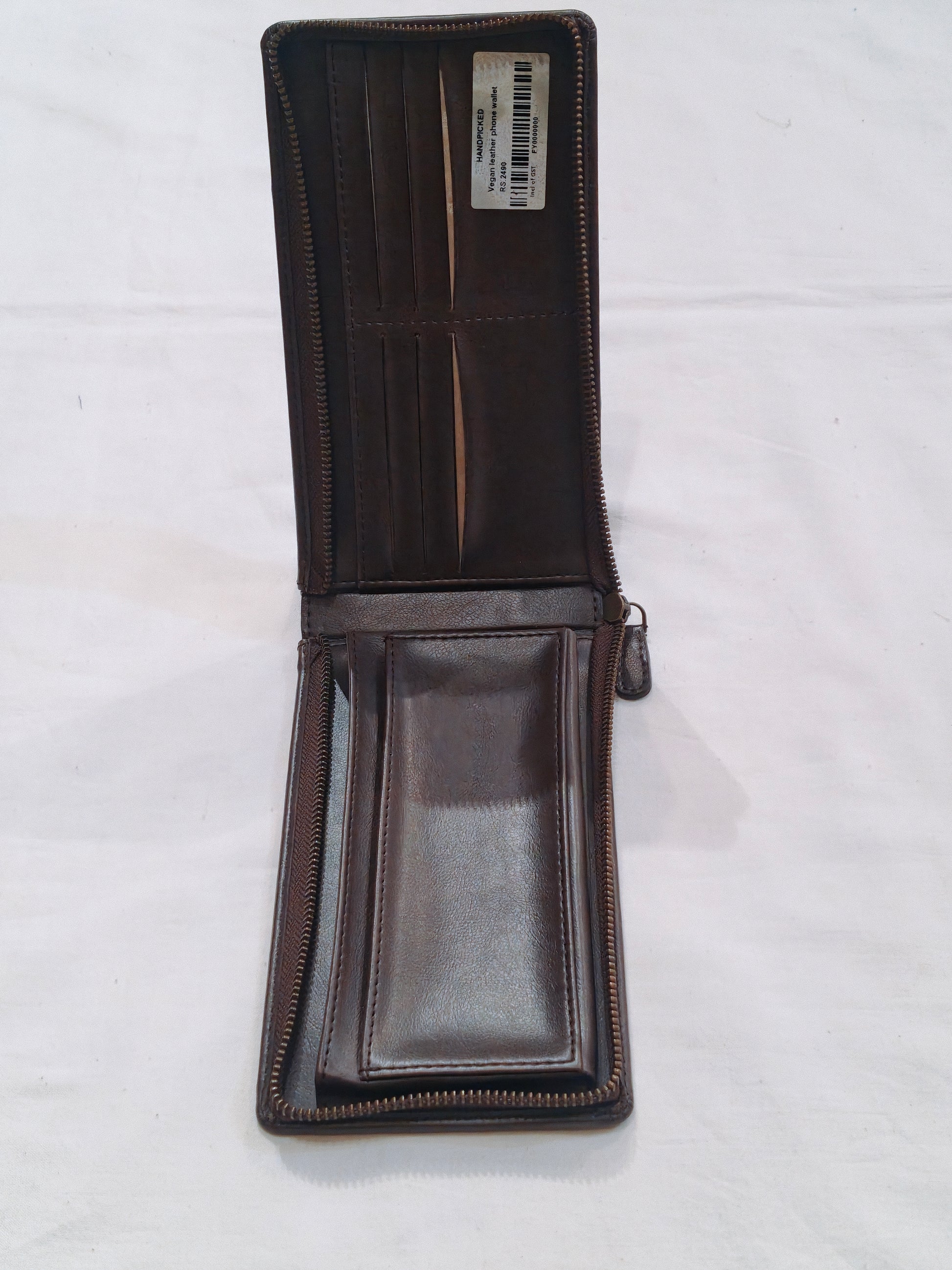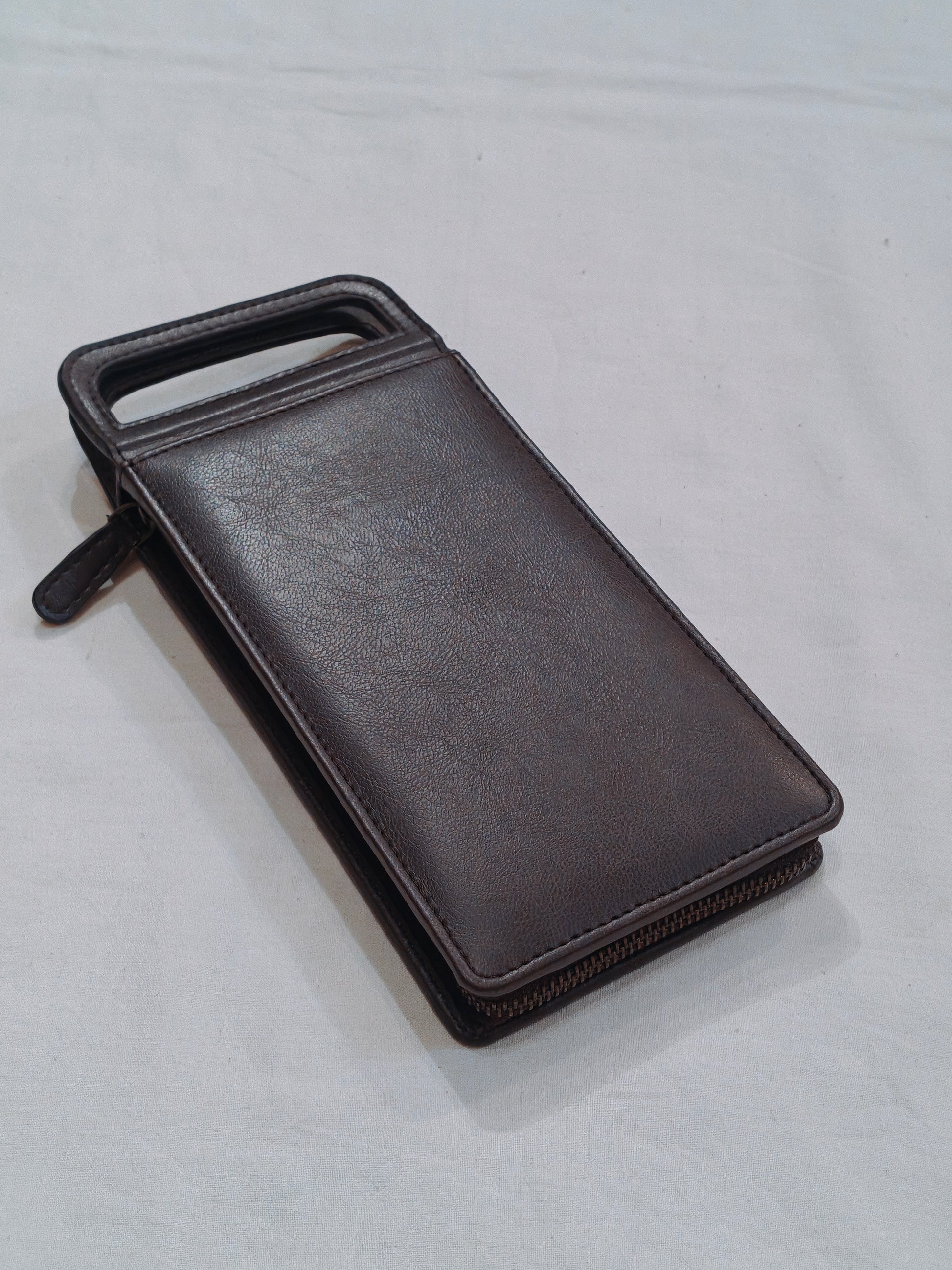 Vegan leather phone wallet in handcrafted leather