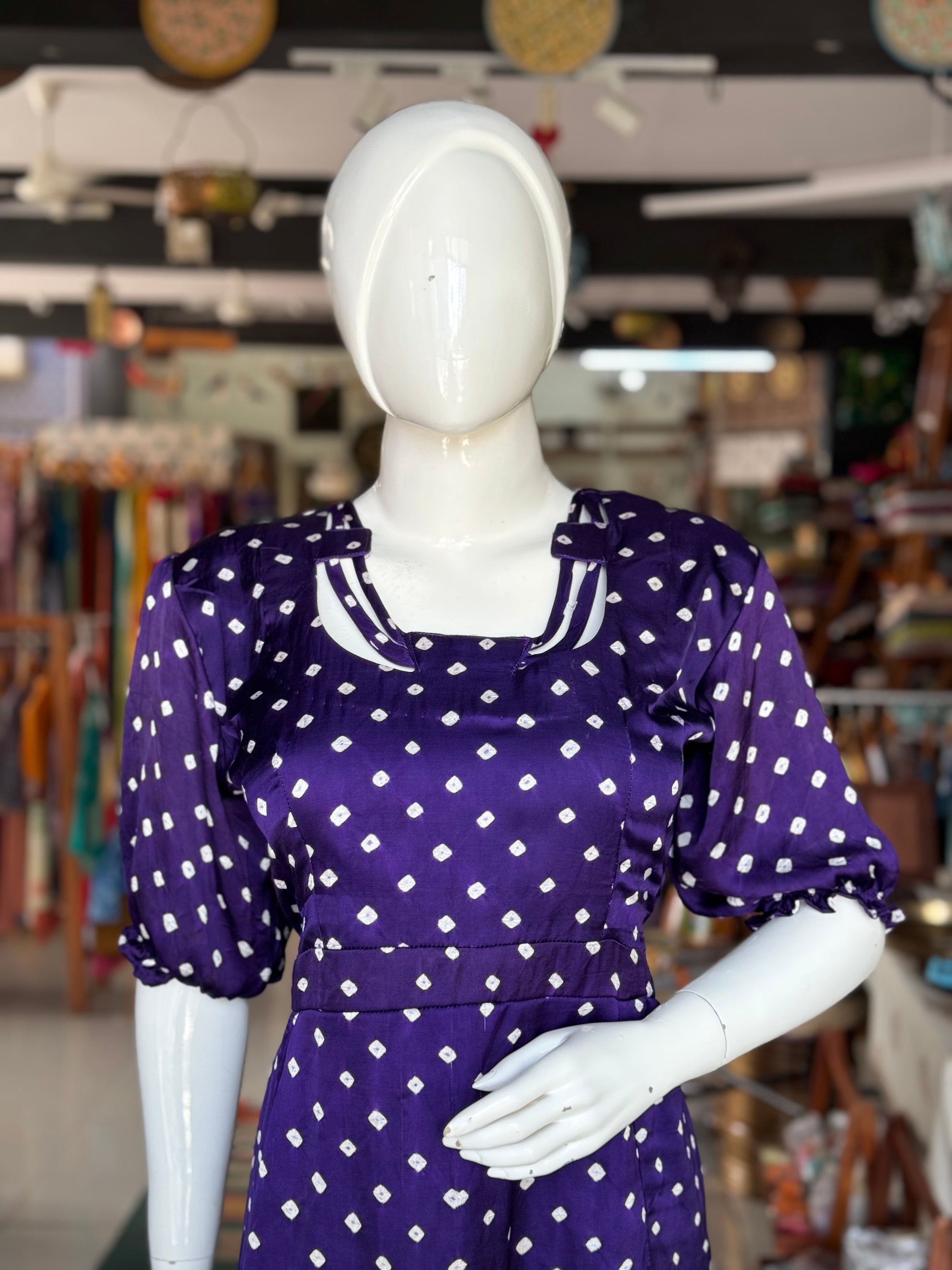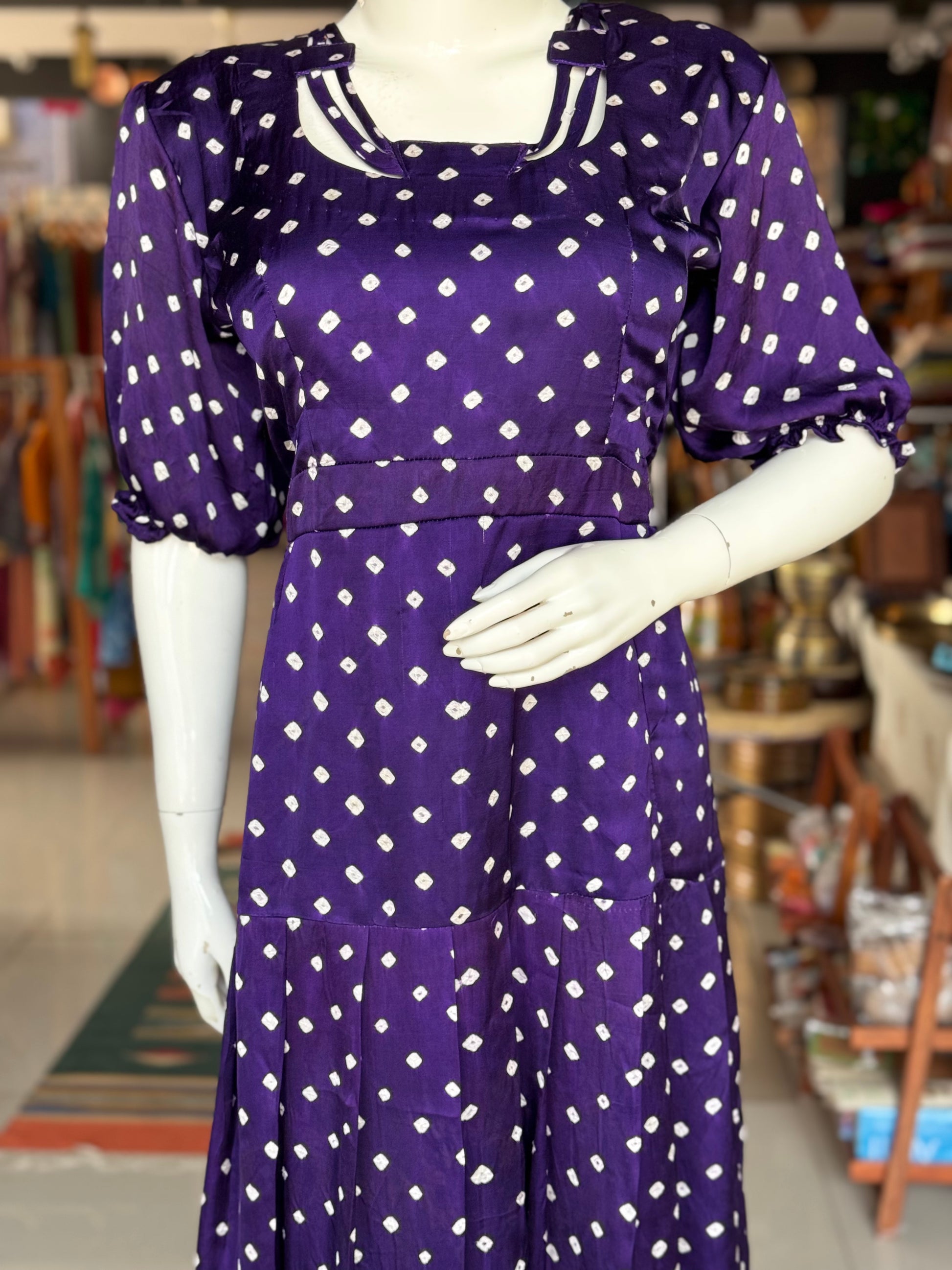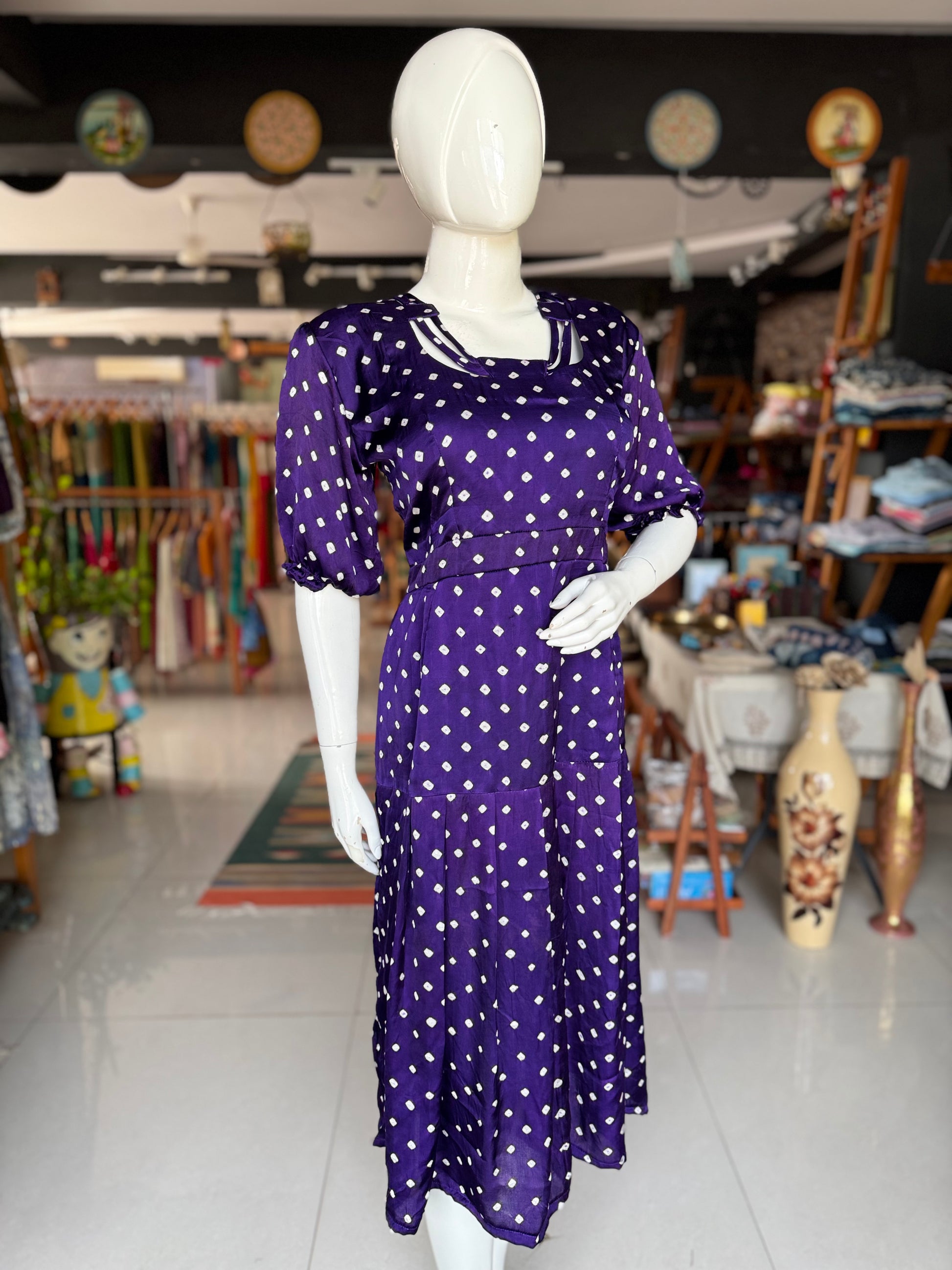 Violet bandini hand tie n dye soft modal dress with neck detailing