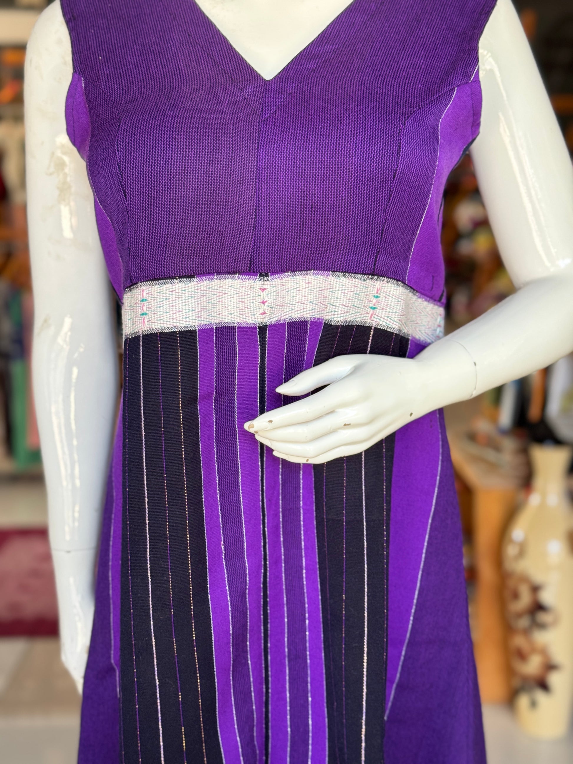 Violet Cotton stripes Arunachal handloom cotton sleeveless dress