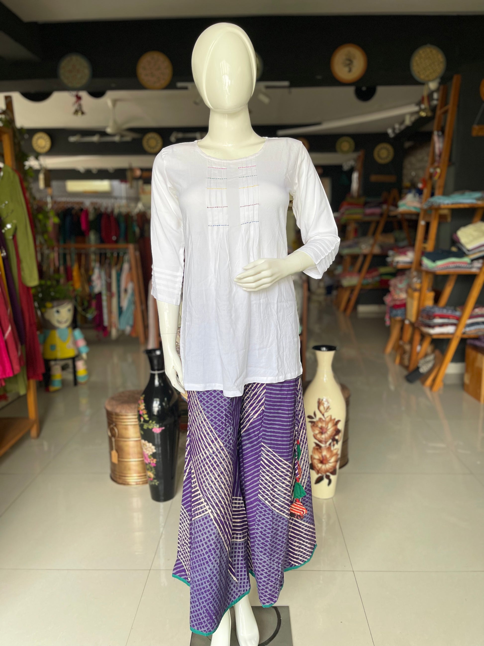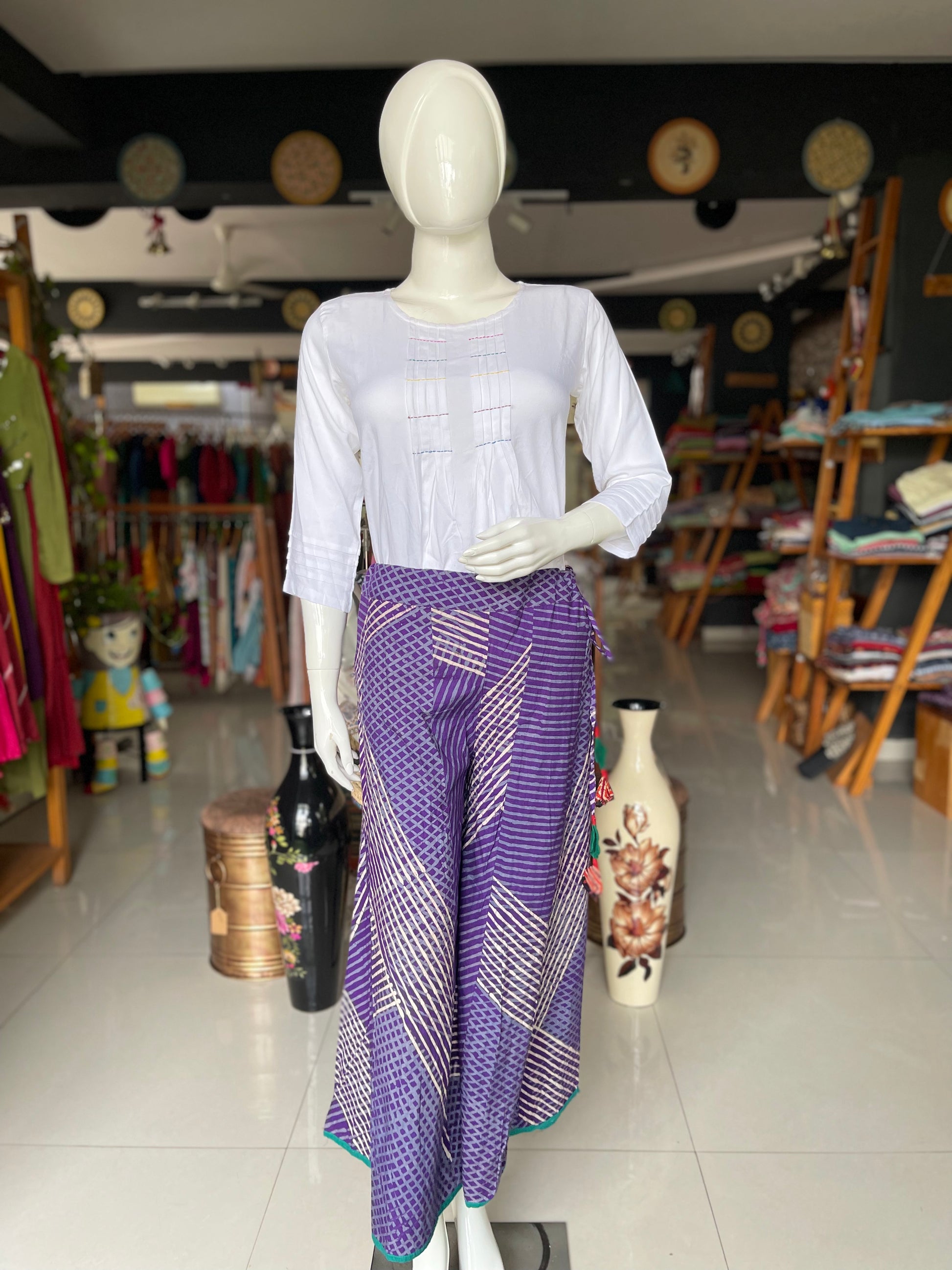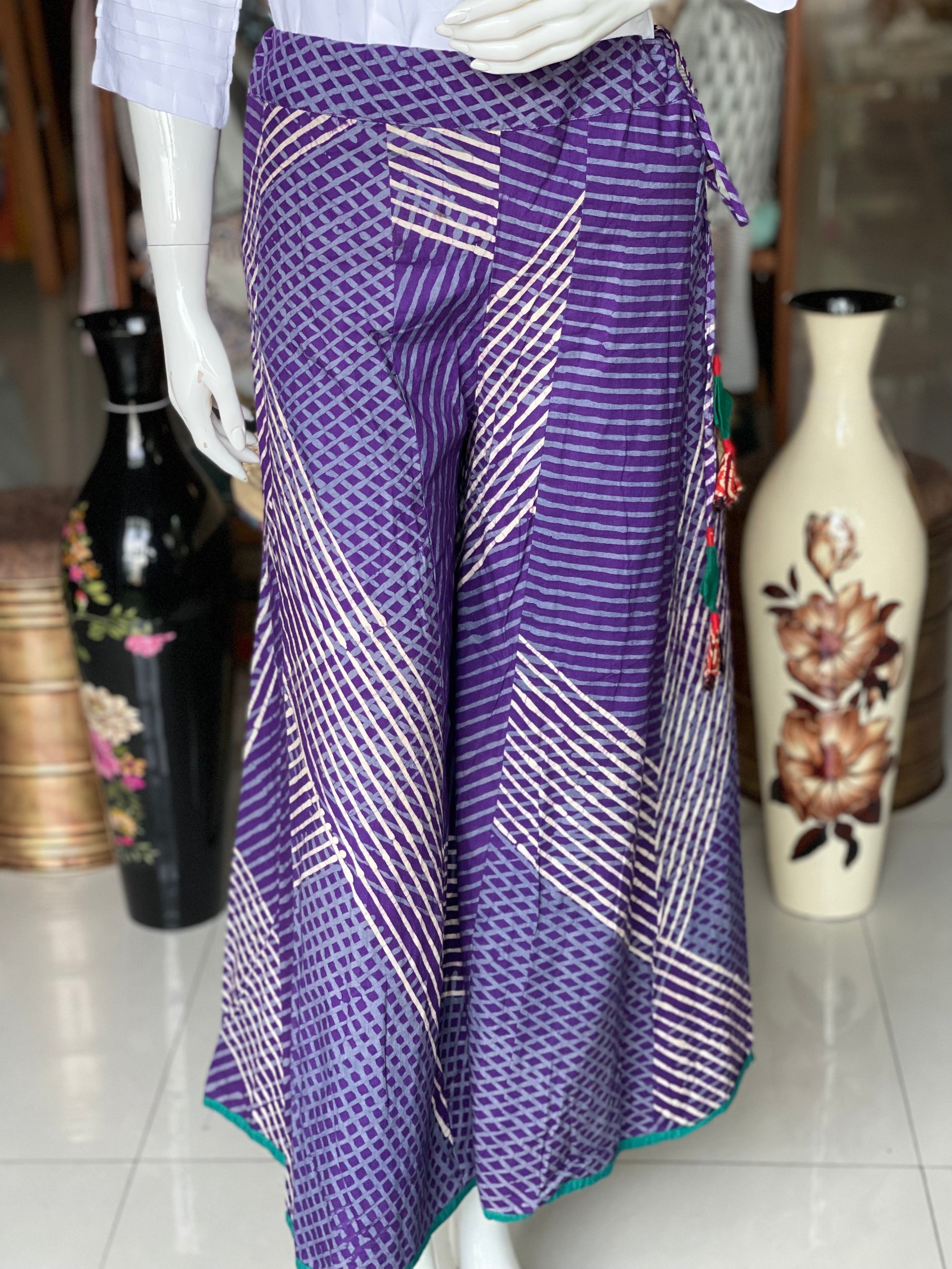 Violet criss cross design hand block Batik cotton free size plazo with waist draw string