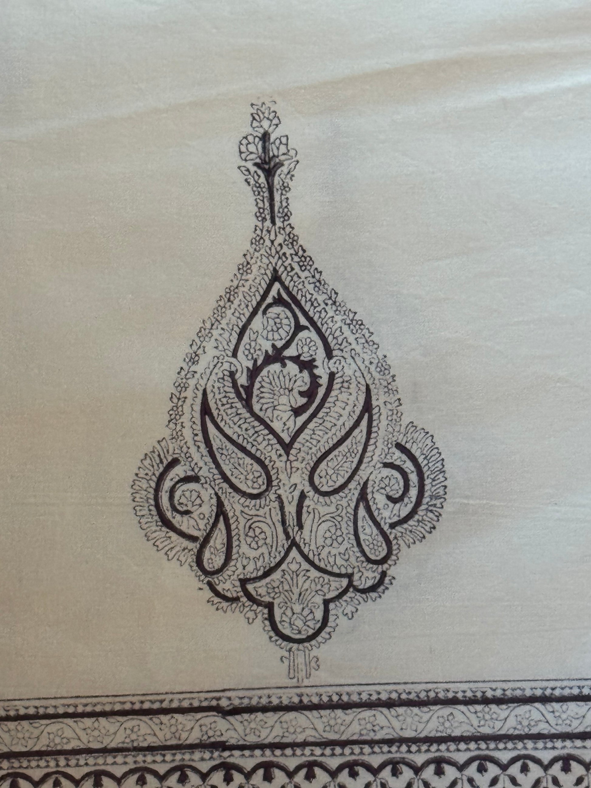 Violet floral print (brass hand block prints) on white base pure cotton super king size bedsheet