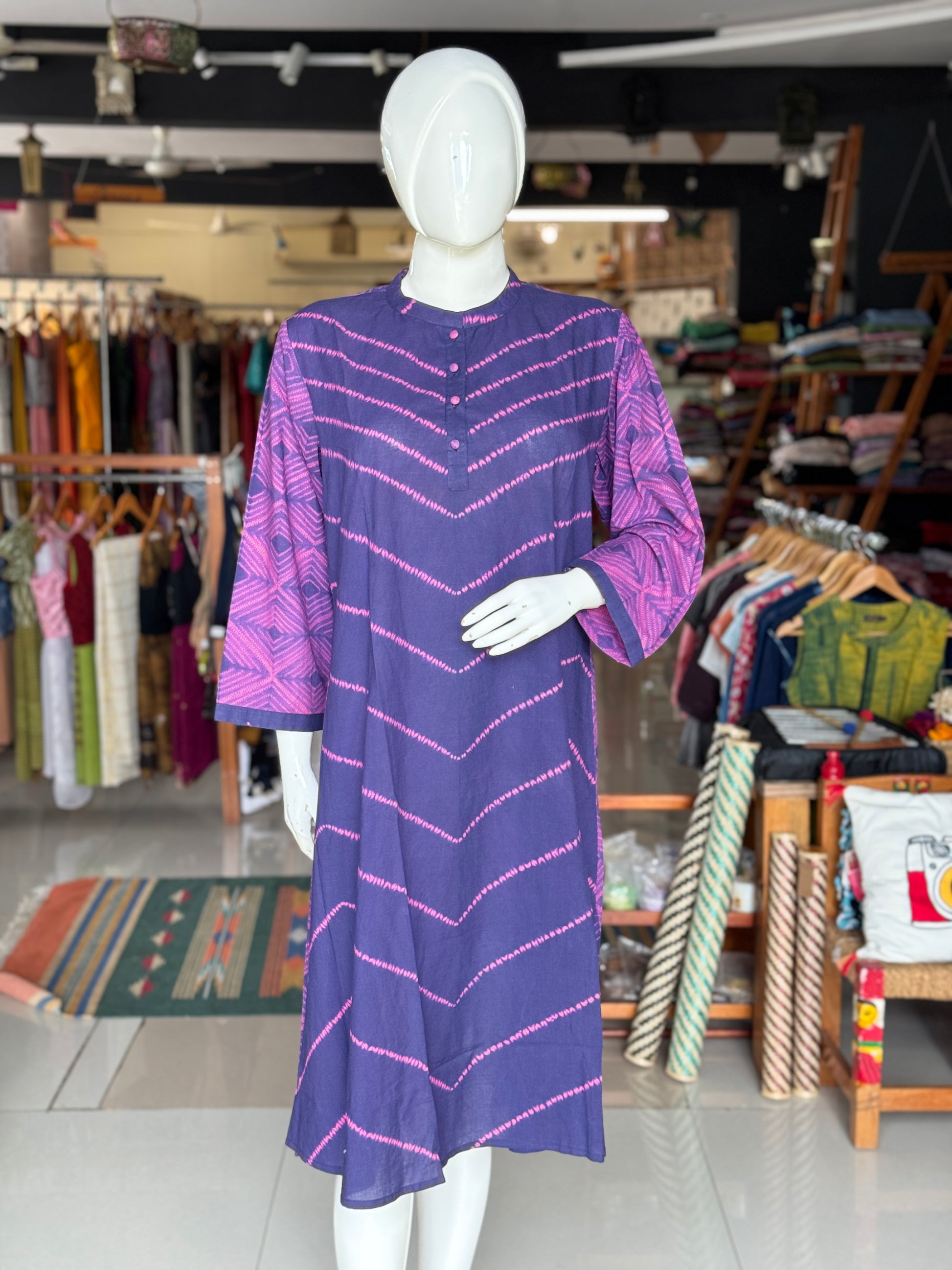 Violet n purple Shibori needle tie n dye band collared cotton dress