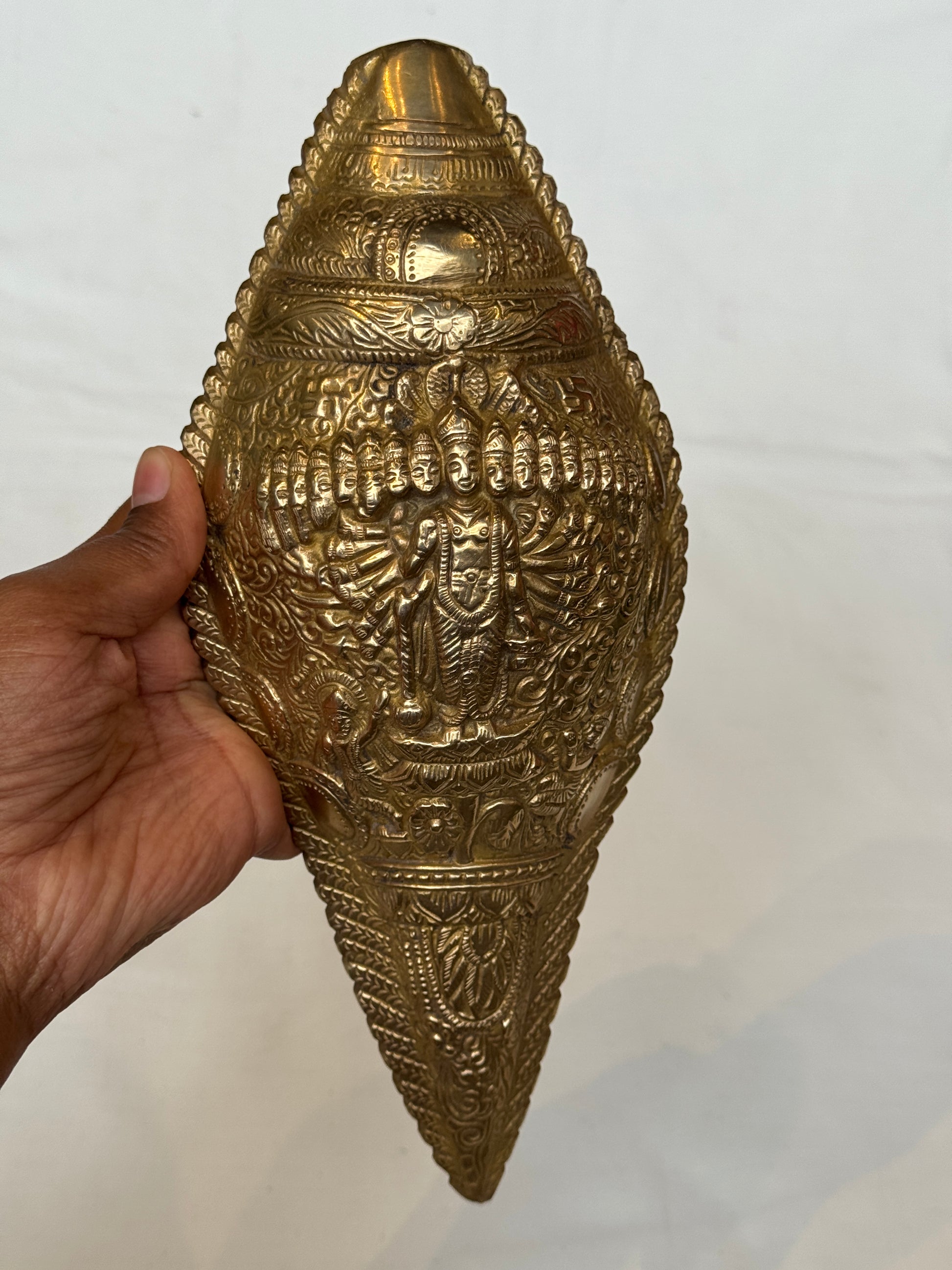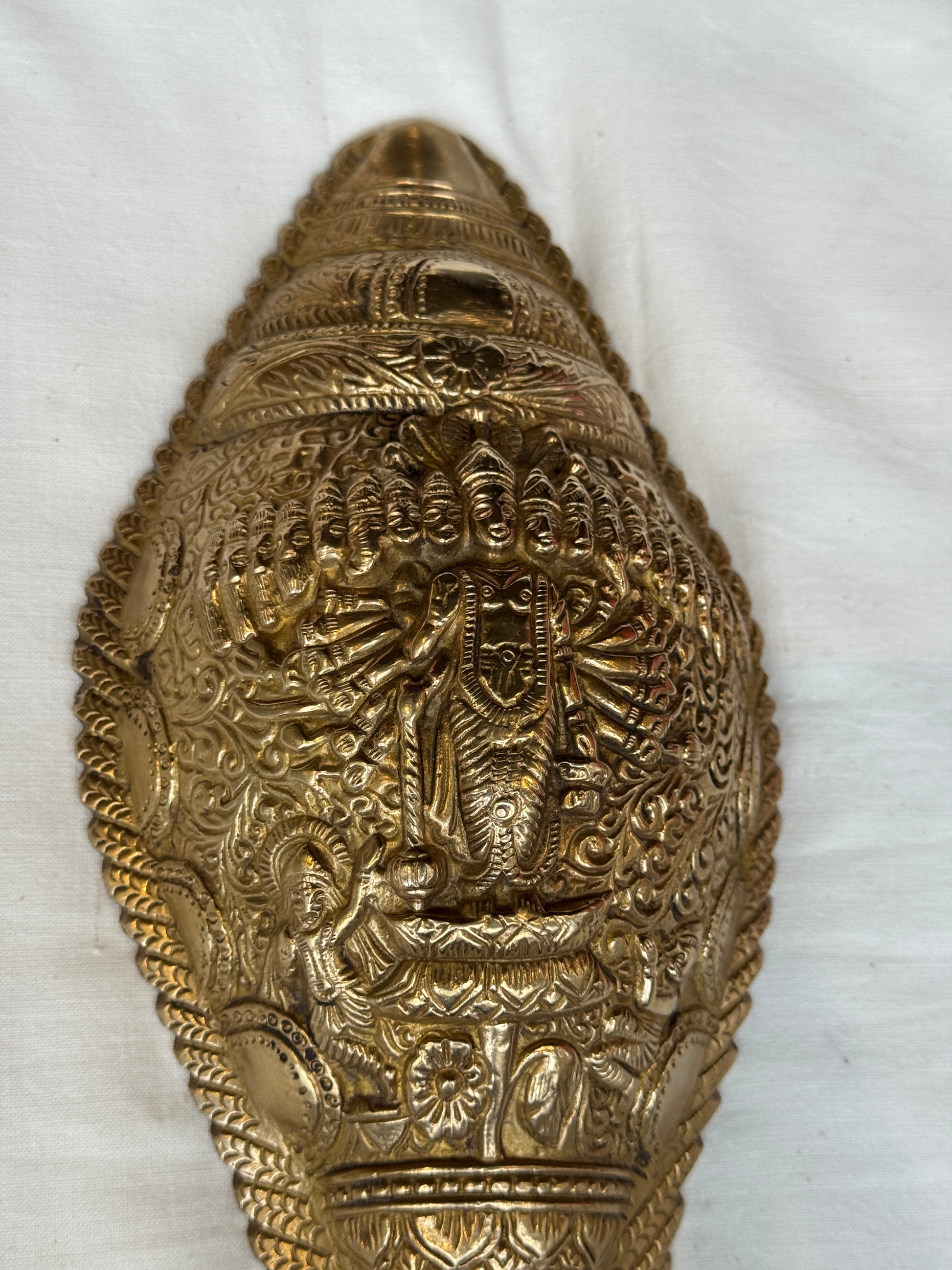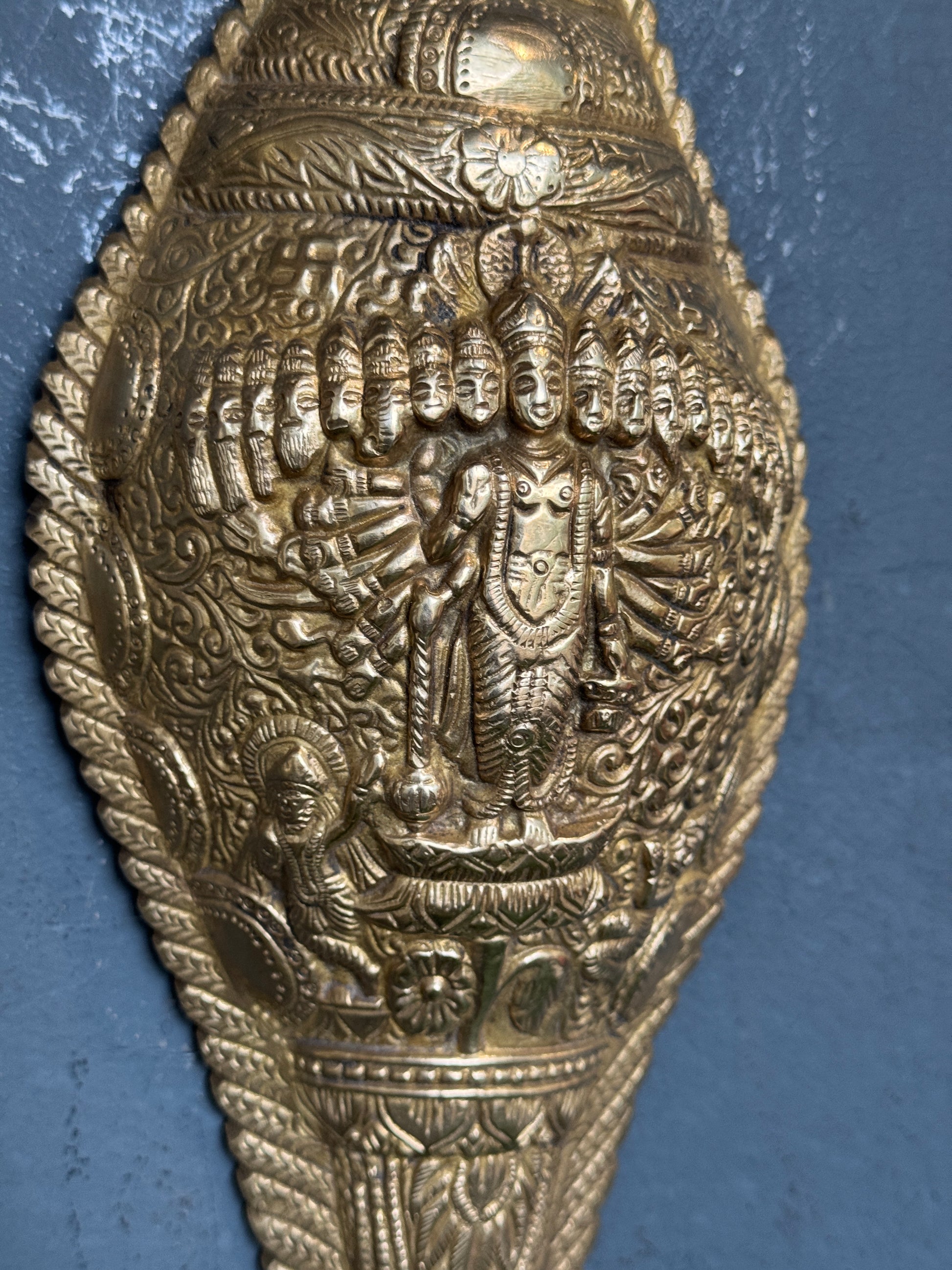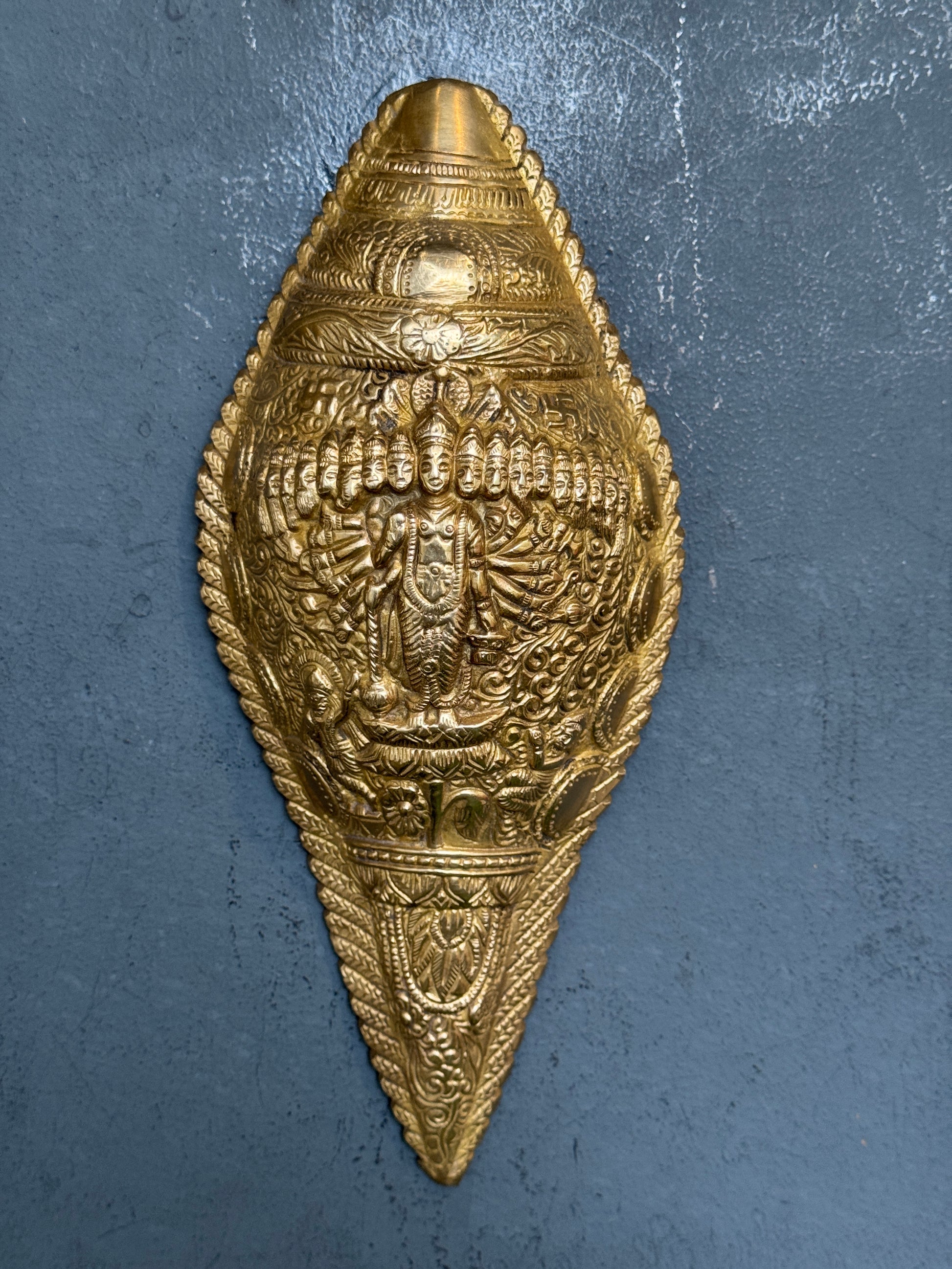 Vishwaroopam - Vishnu ji on brass shell shaped vintage wall plate