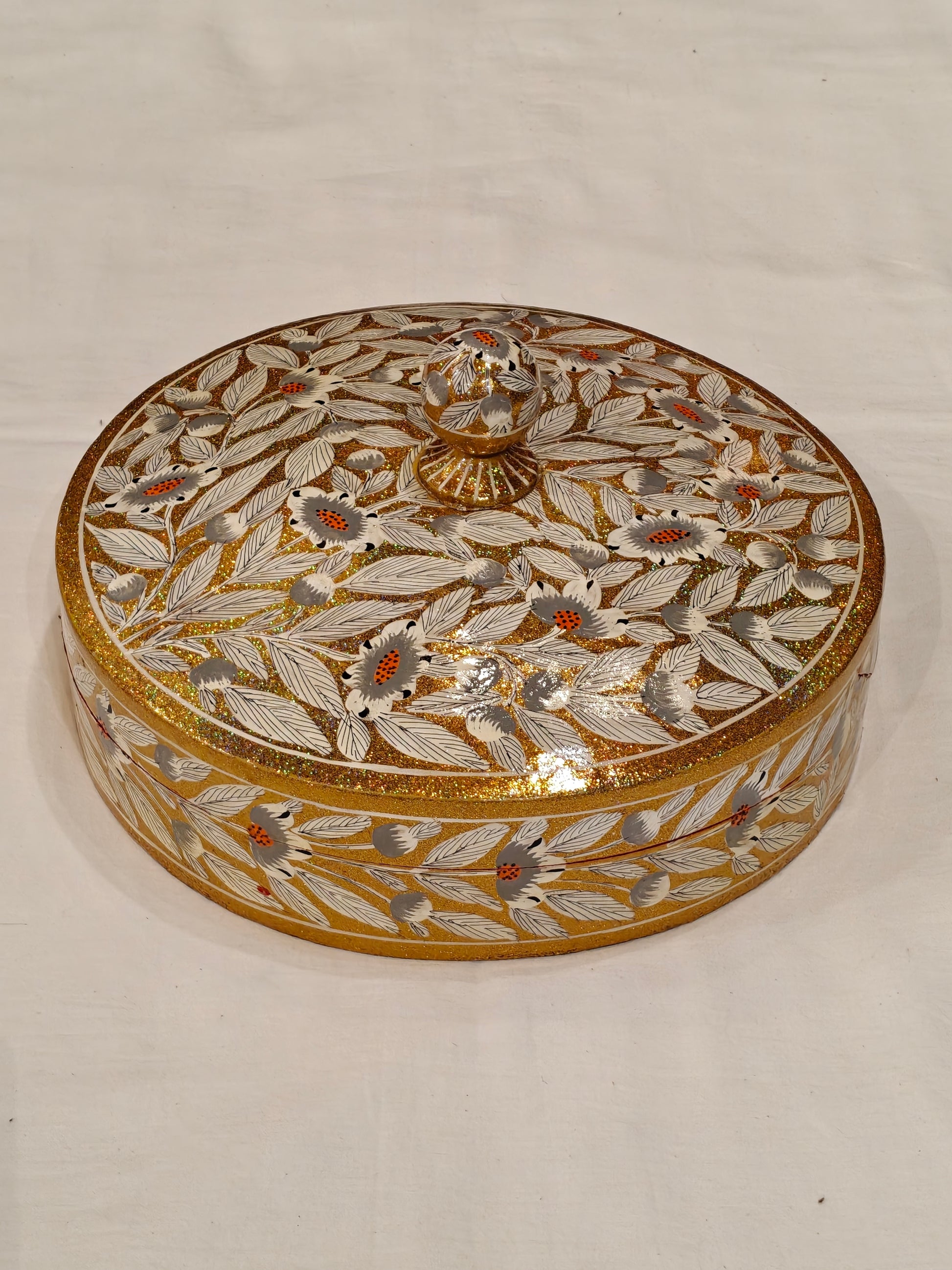 White and gold Flowers hand painted papier mache dry fruits box / jewellery organizer