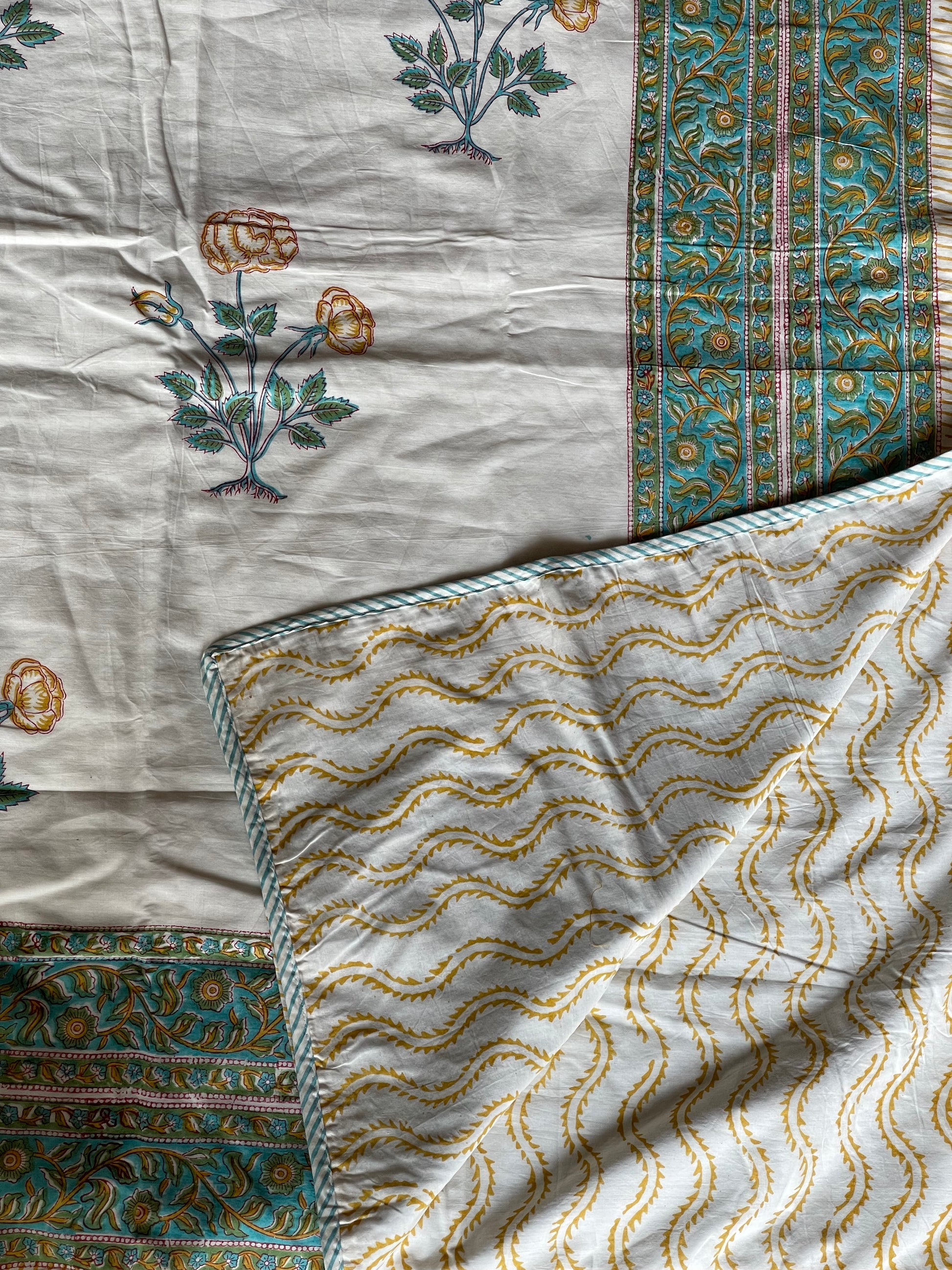 Reversible, hand block printed