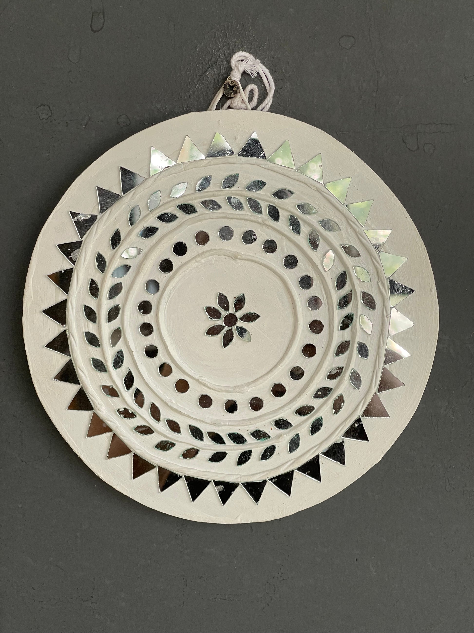 White round lippan mud art mirror work handmade wall plate