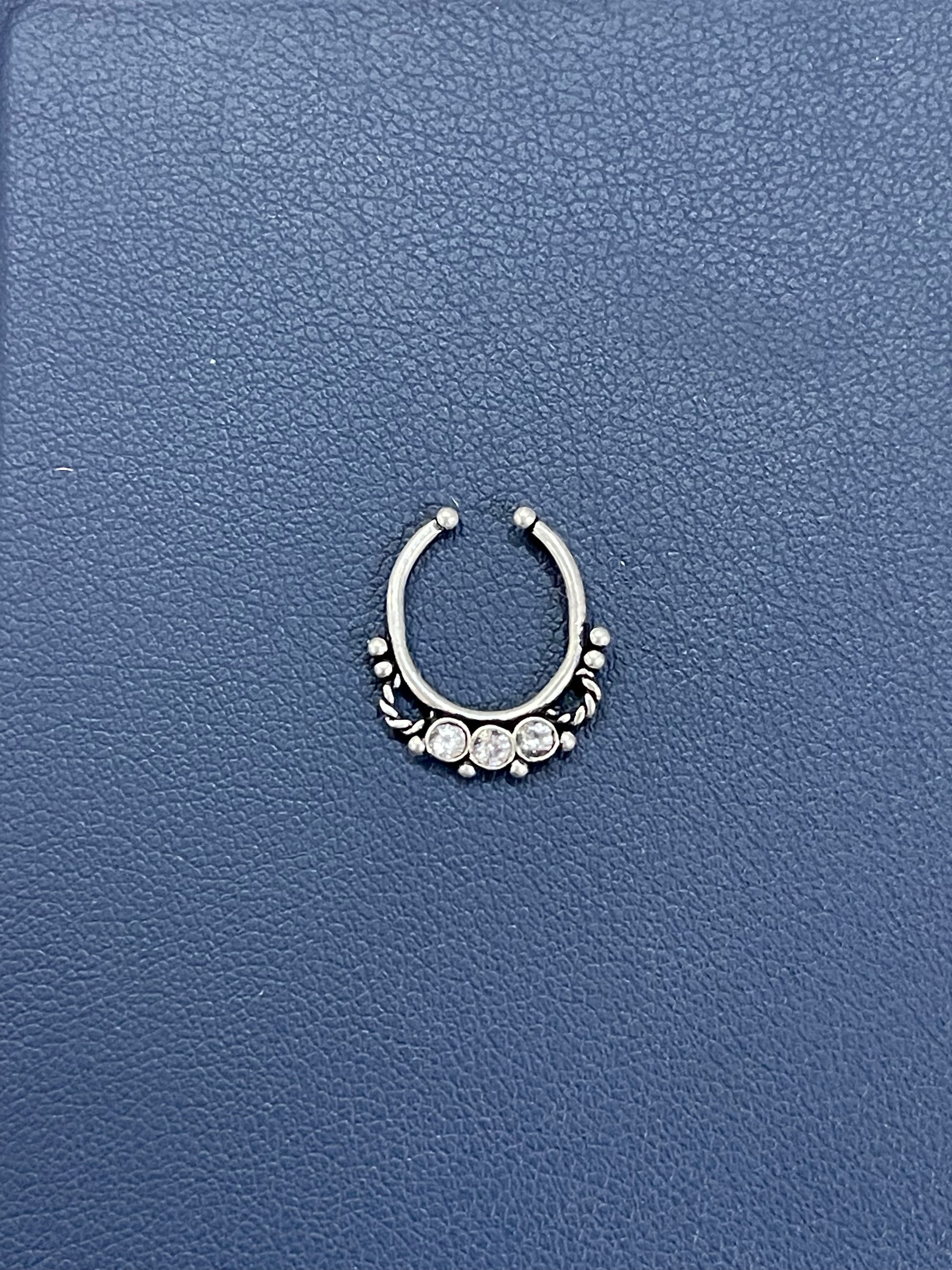 White stones 92.5 sterling silver septum nose ring