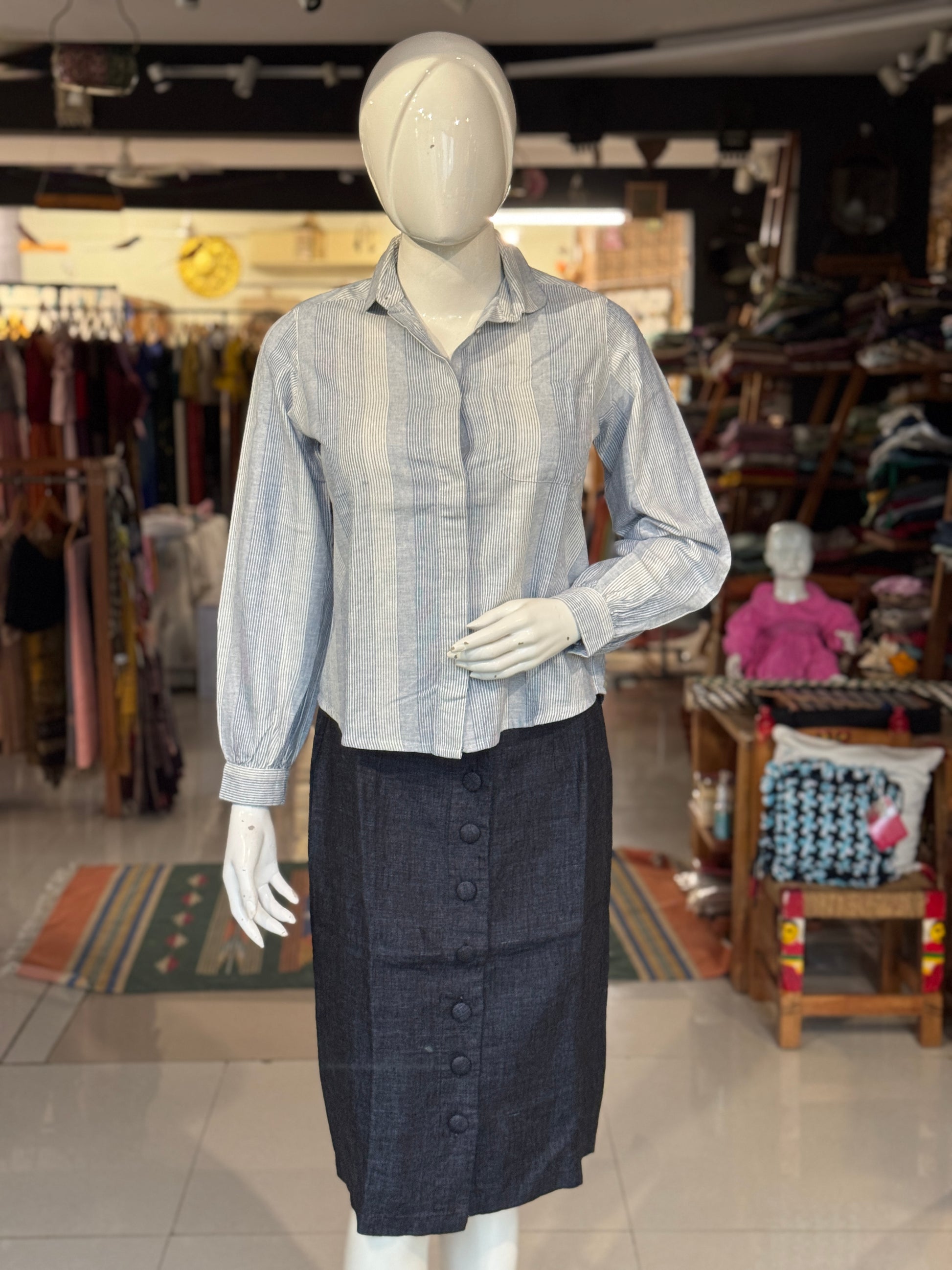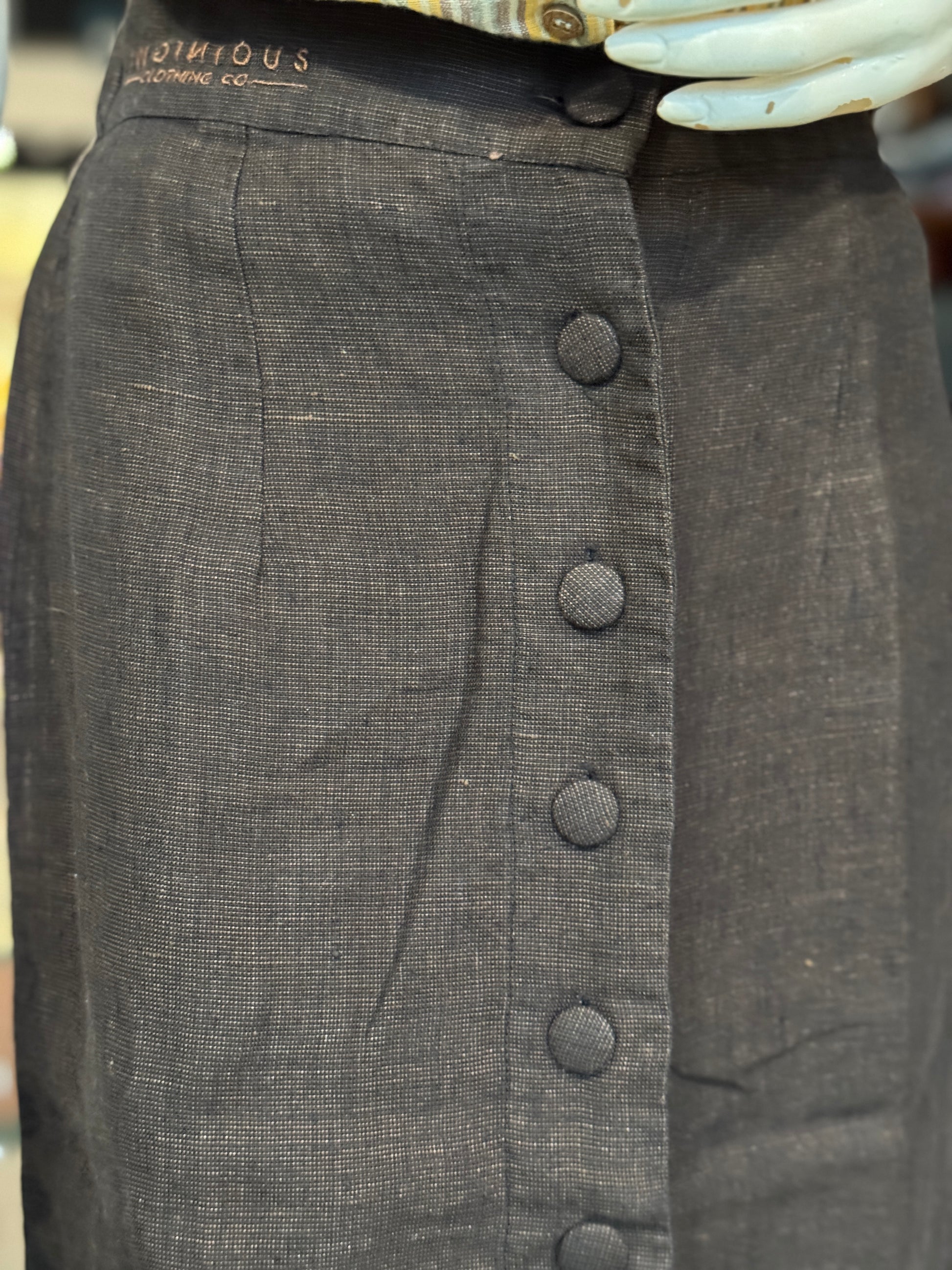 Women’s formal calf length skirt with elastic waist and front buttons - colors available