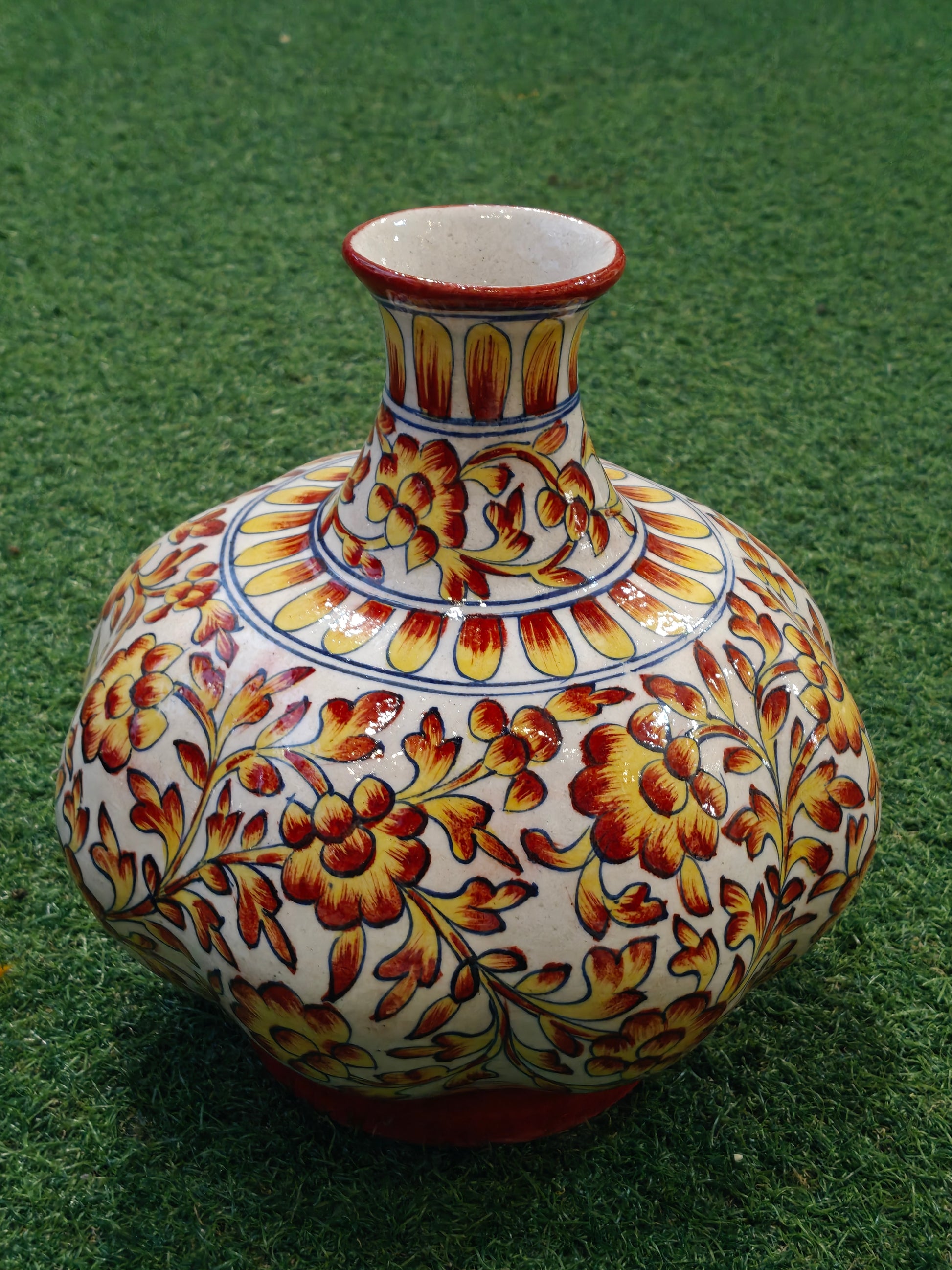 Yellow and white floral blue pottery Handcrafted flower vase