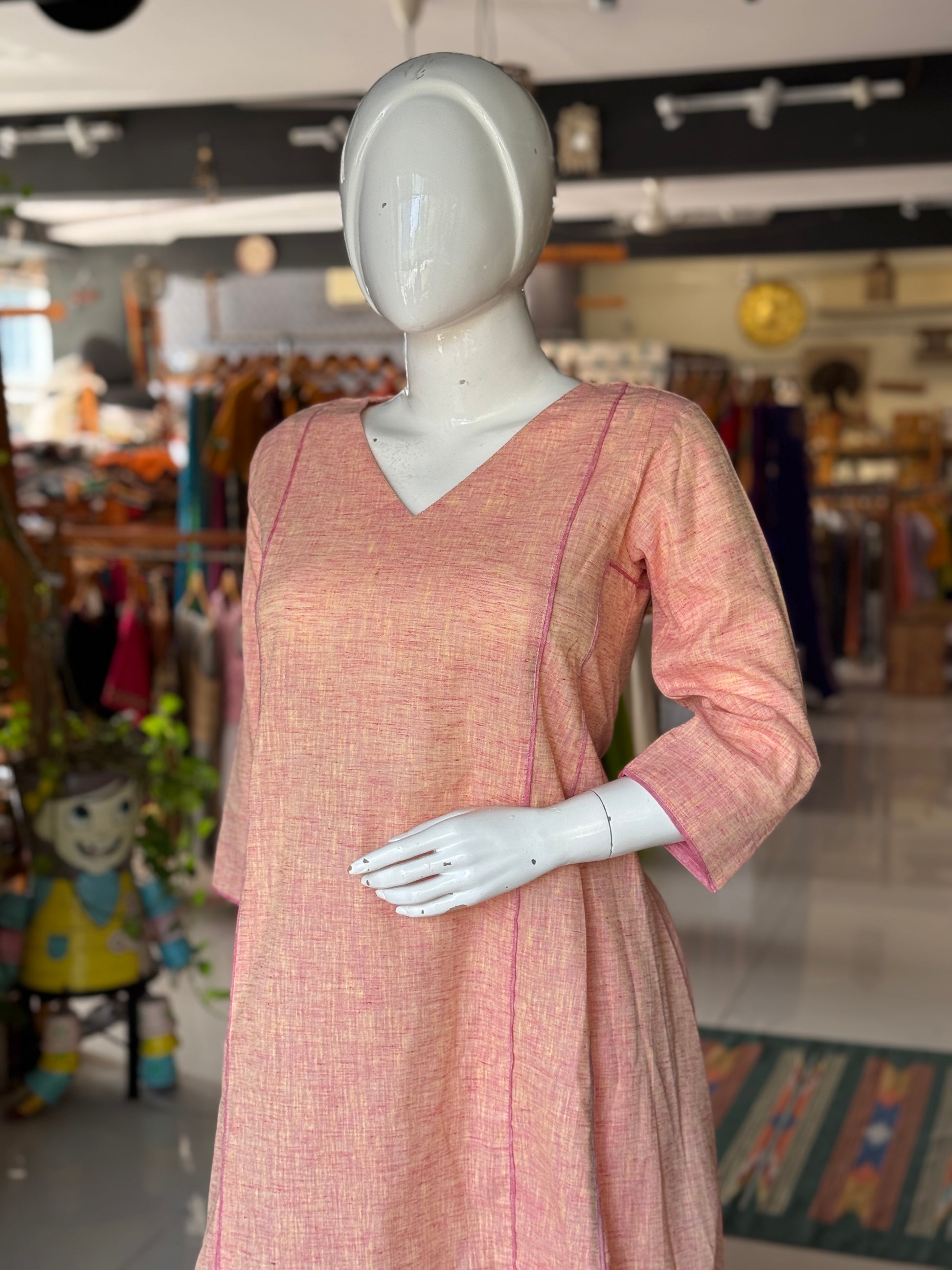 Yellow Pink v-neck panels cotton kurta n pants - 2 piece coord set