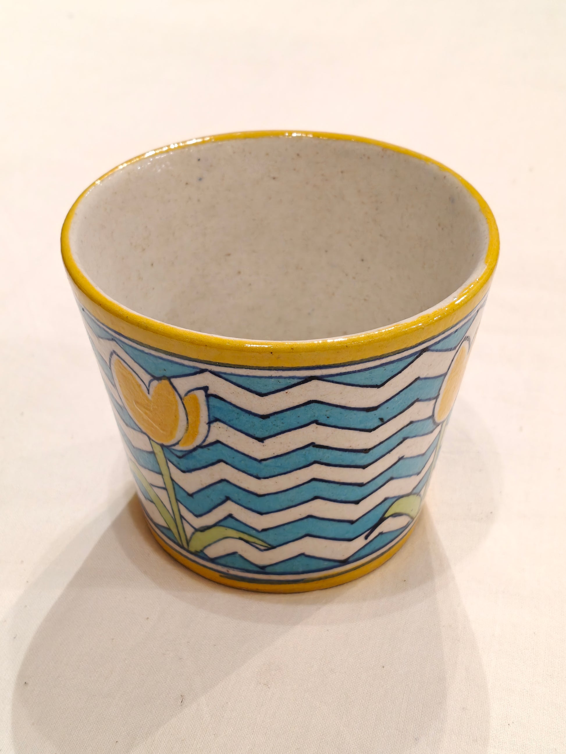 Yellow, Sky blue and white color blue pottery Handcrafted planter